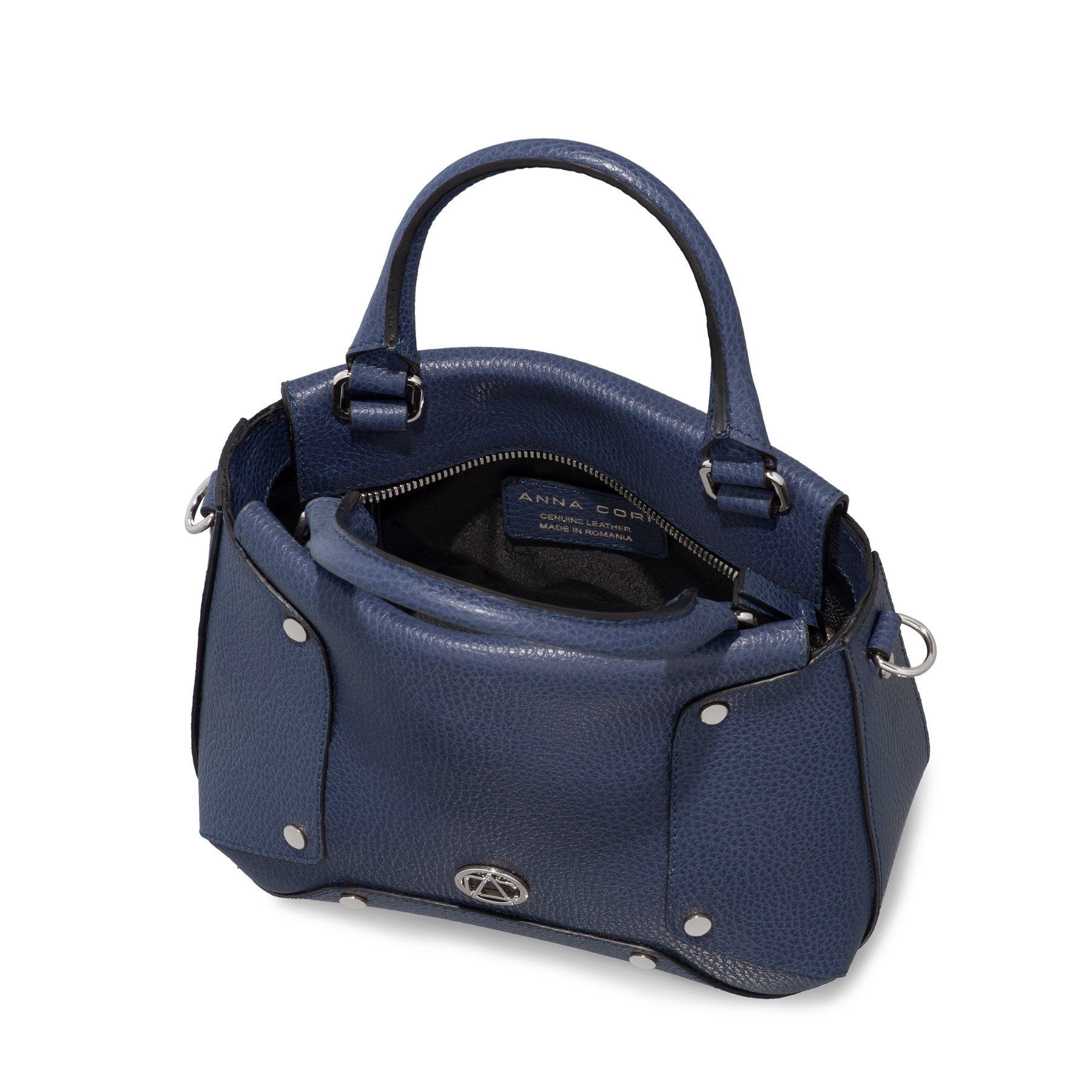 Fedra 02 este o geantă de mână de dimensiuni mici, într-o formă ușor rotunjită și cu un model nou realizat din capse metalice. Poate fi purtată atât pe mână, cât și crossbody deoarece conține o baretă detașabilă și ajustabilă din piele naturală.