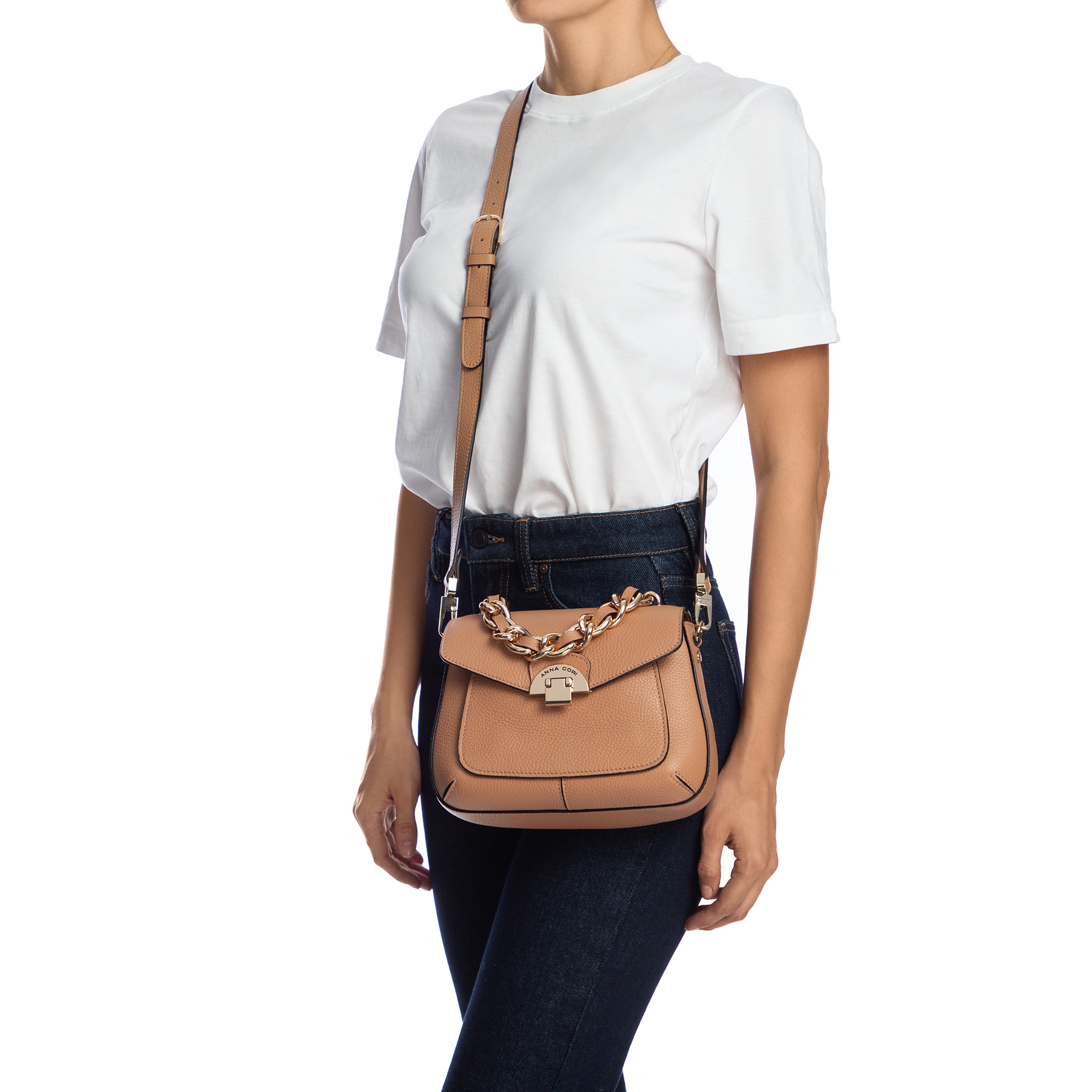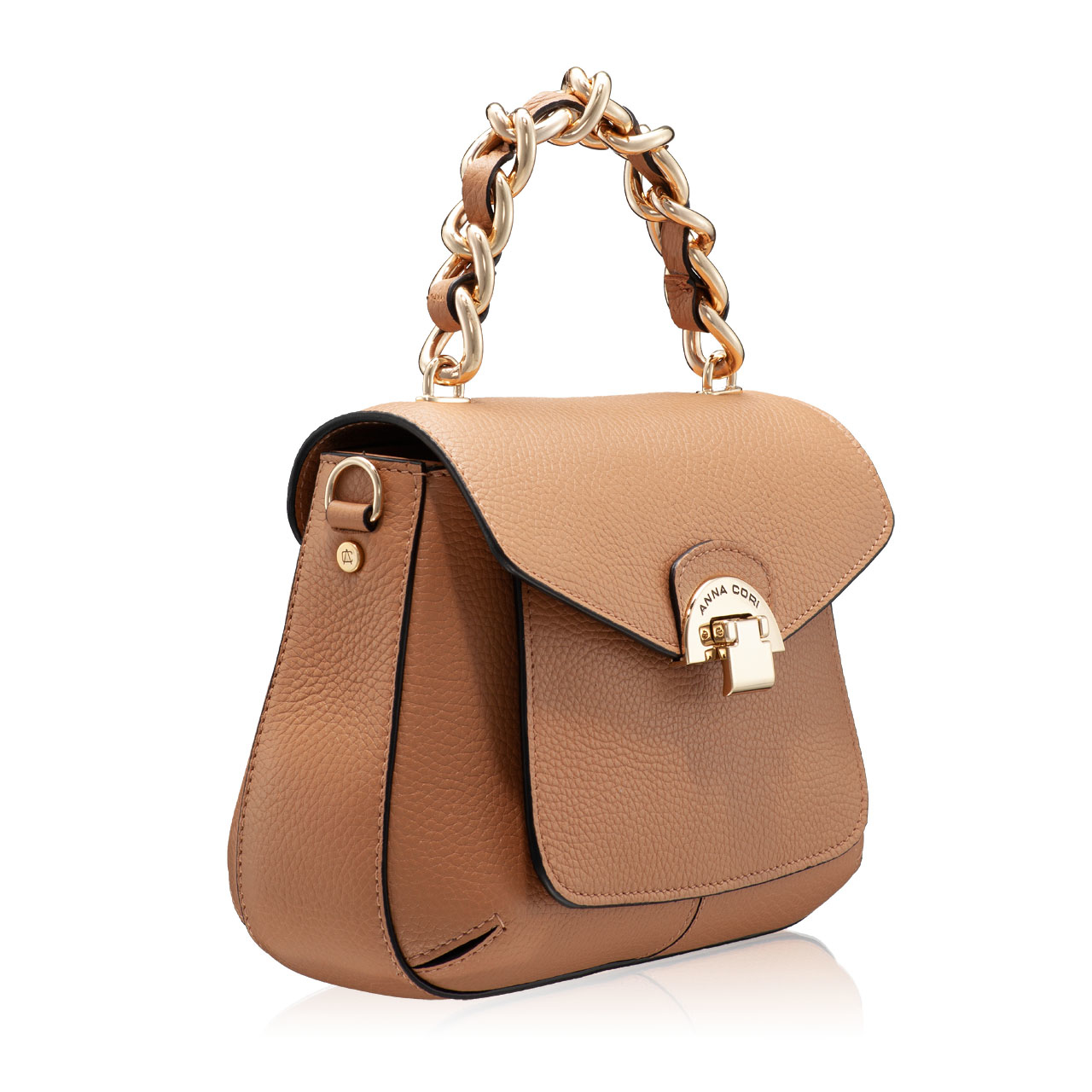 Geanta #ALIDA este de dimensiuni relativ mici, într-o formă rotundă dar destul de încăpătoare și cu un farmec aparte. Este confecționată din piele naturală de vițel, cu accesorii aurii și multe buzunare. Mânerul prevăzut din lanț și piele, adaugă un plus de eleganță acestei genți.