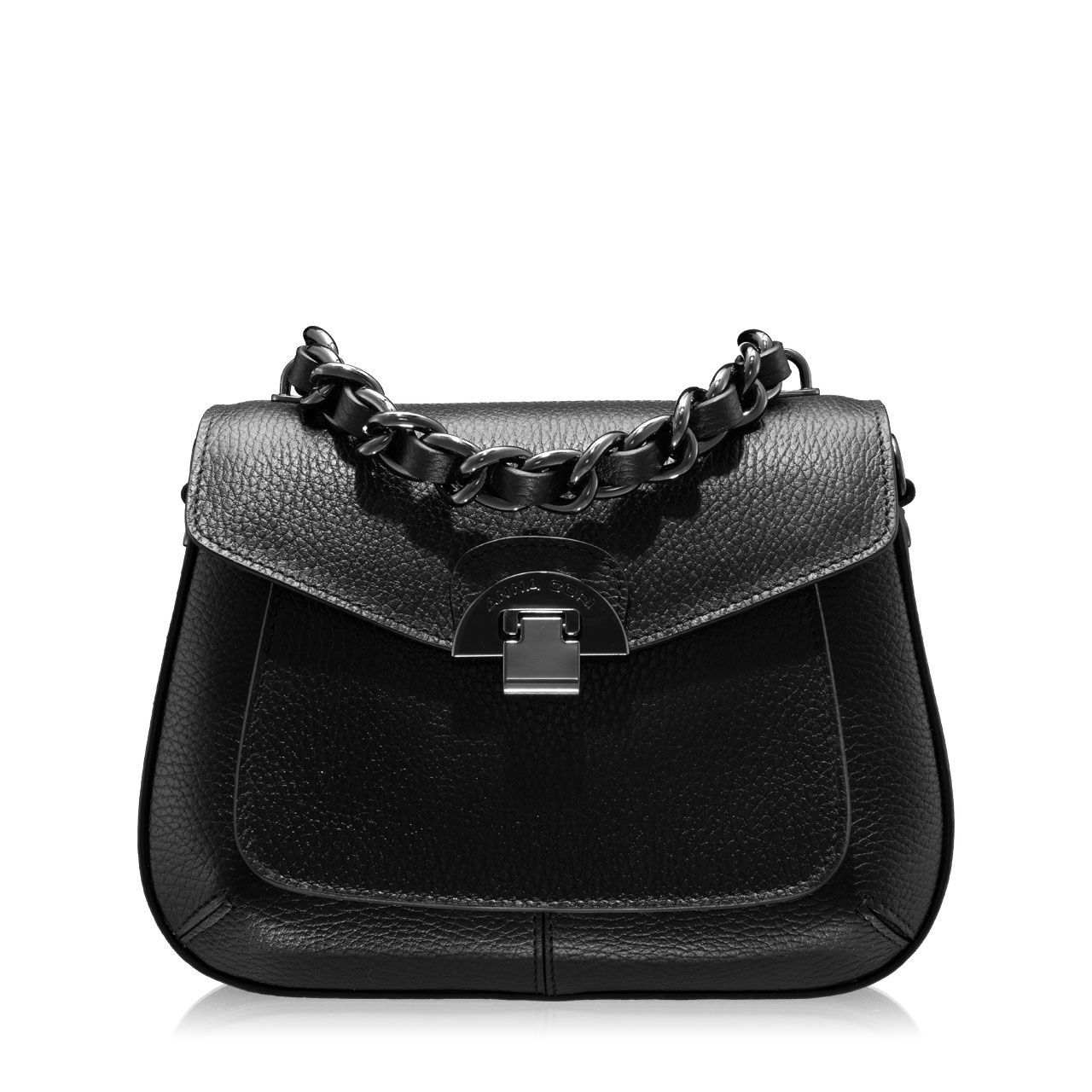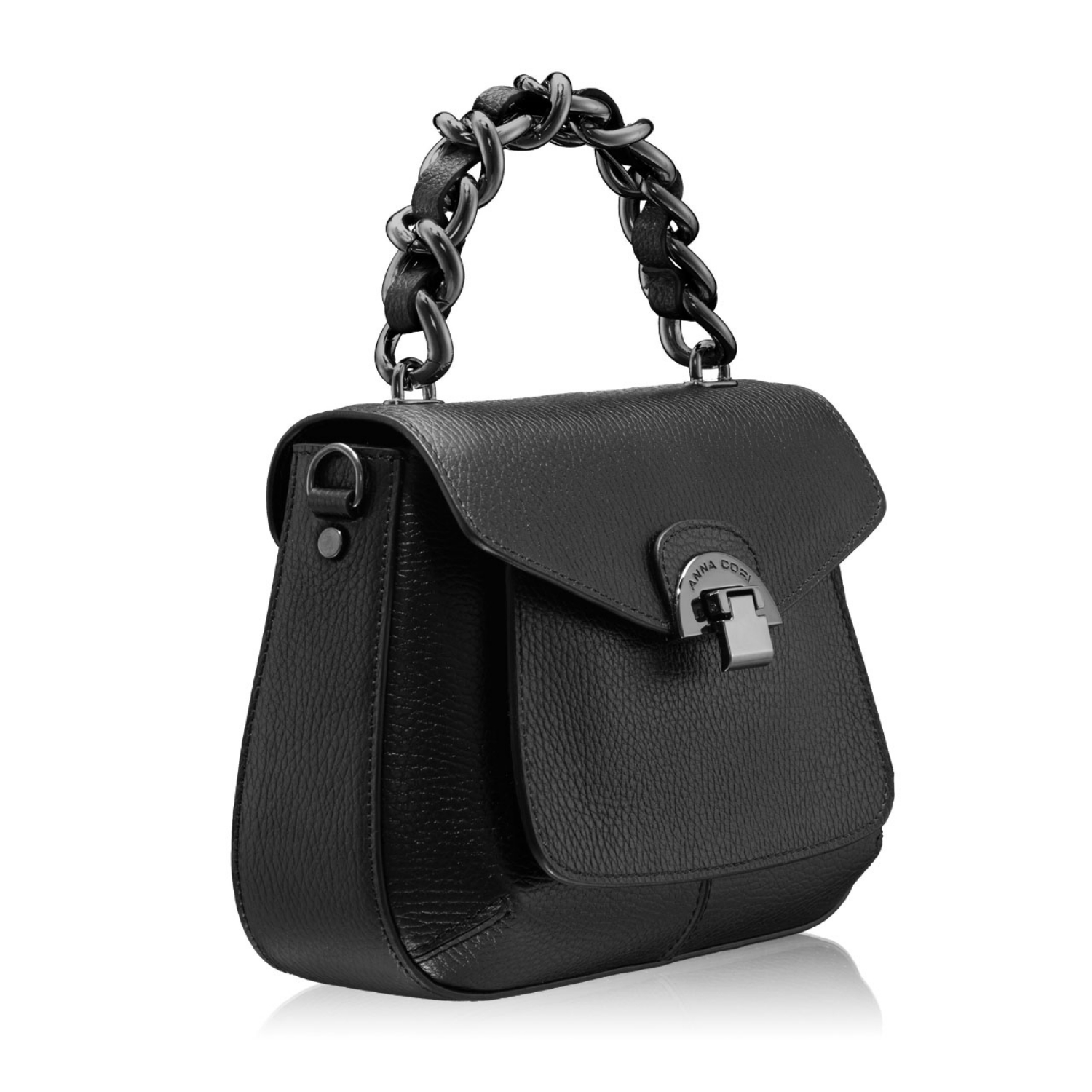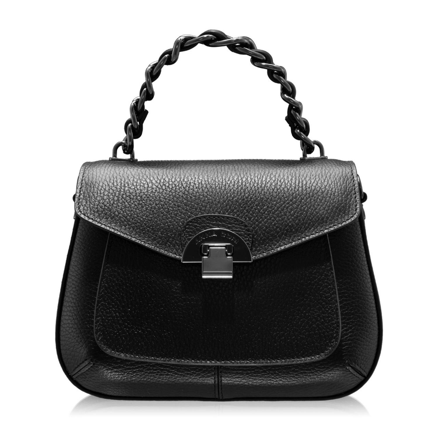 Geanta #ALIDA este de dimensiuni relativ mici, într-o formă rotundă dar destul de încăpătoare și cu un farmec aparte. Este confecționată din piele naturală de vițel, cu accesorii aurii și multe buzunare. Mânerul prevăzut din lanț și piele, adaugă un plus de eleganță acestei genți.