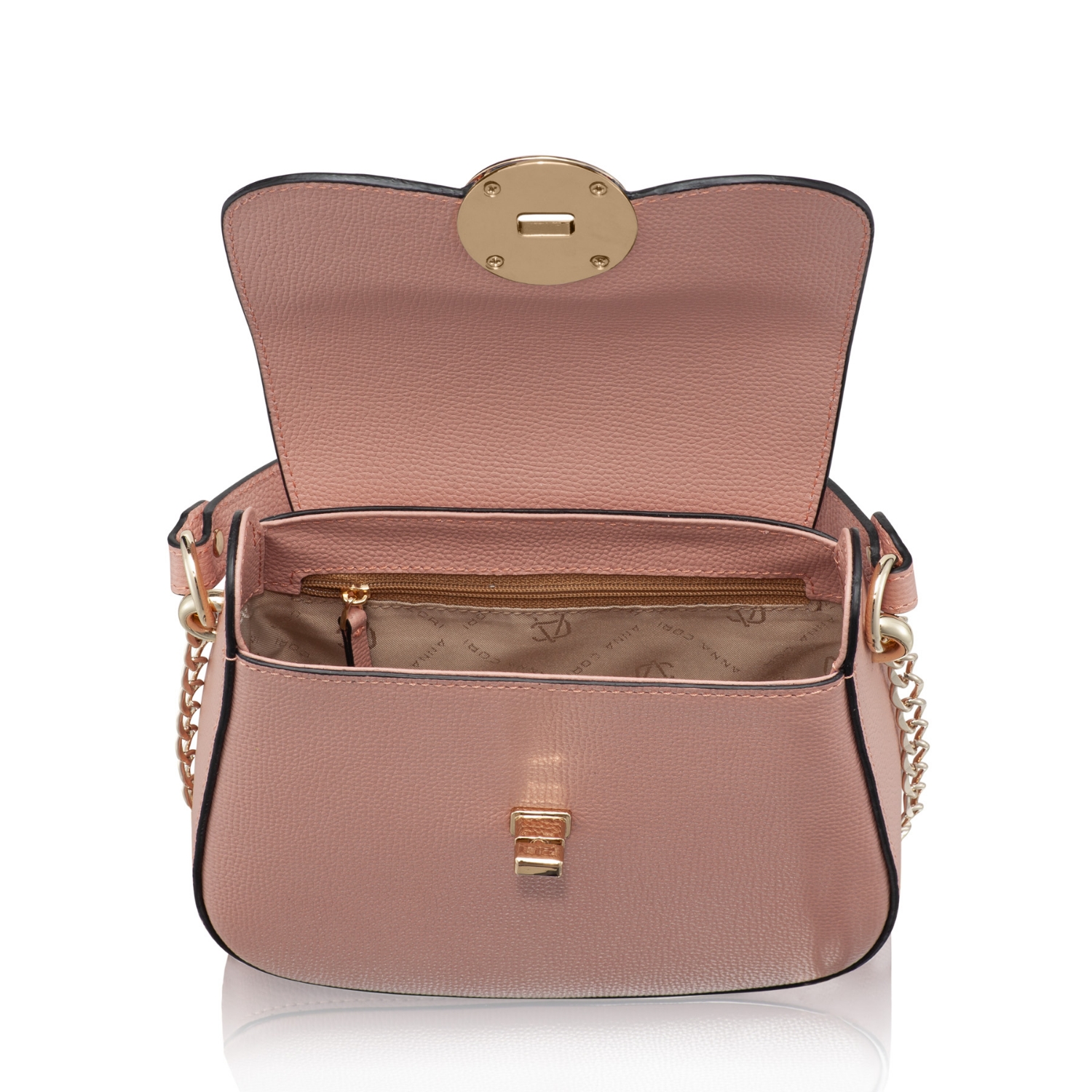 Designul sau minimalist este pus in valoare de finisajele premium inspirate de rafinamentul italian. Culoarea roz pudrat este usor de asortat cu piese vestimentare feminine. Interiorul este bine compartimentat, ideal pentru organizarea esentialelor de zi cu zi, fara a compromite stilul.