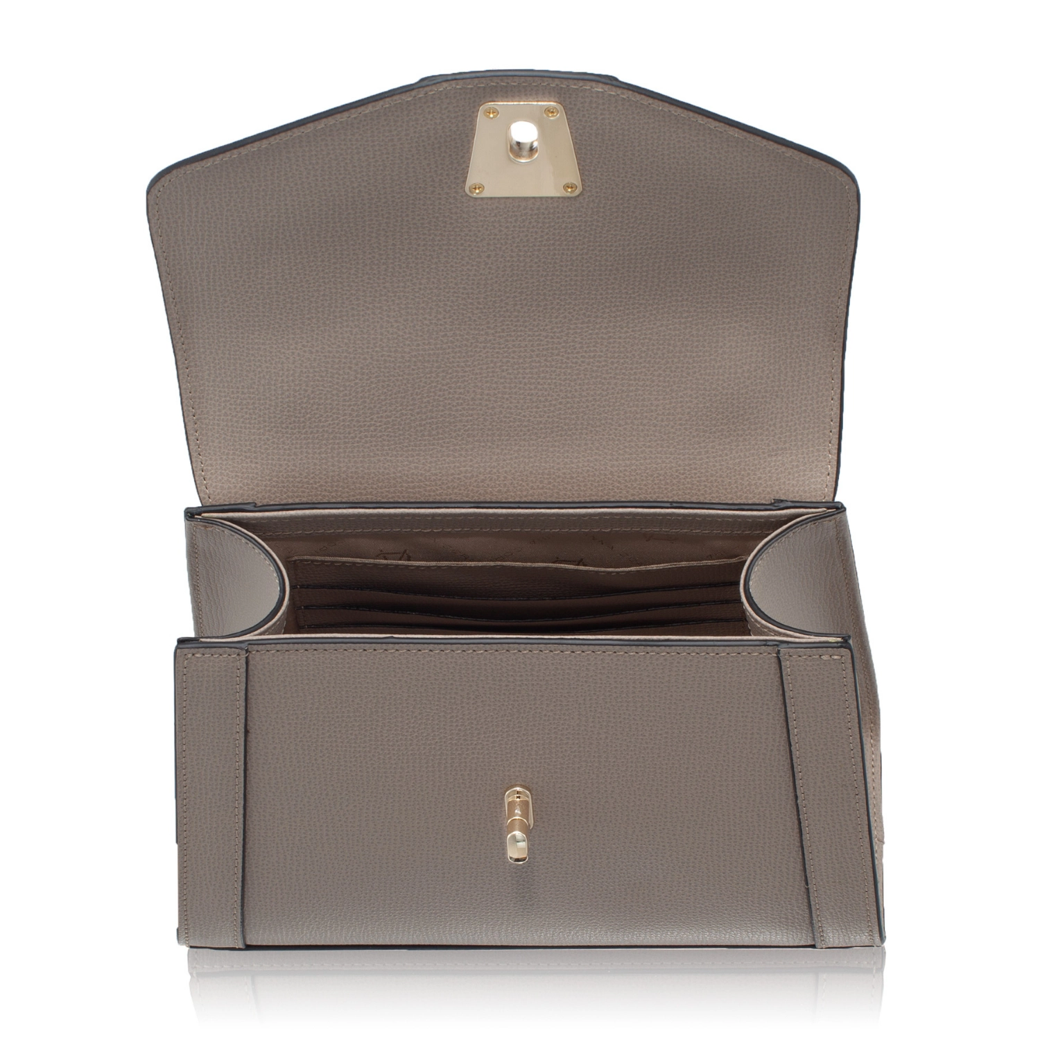 Spațiul încăpător, forma deosebită și accesoriile aurii fac din acest model o piesă statement.