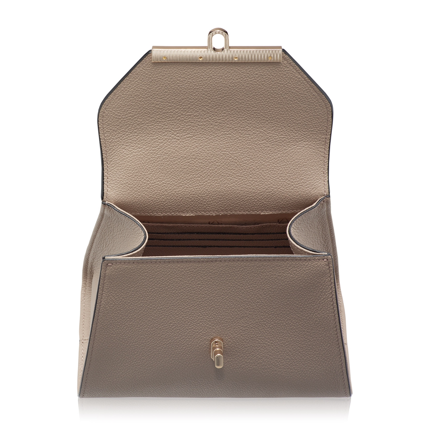 Spațiul încăpător, forma deosebită și accesoriile aurii fac din acest model o piesă statement.