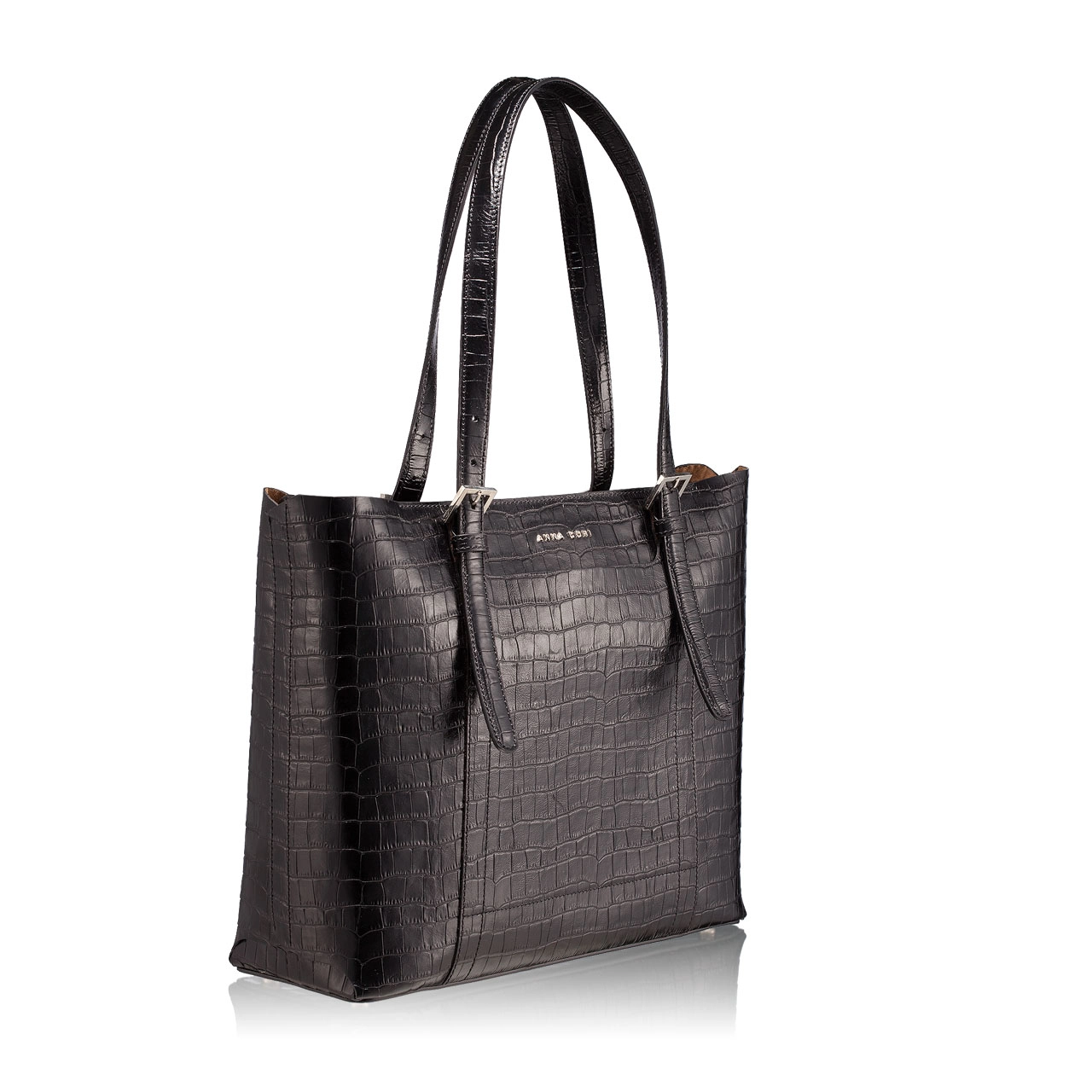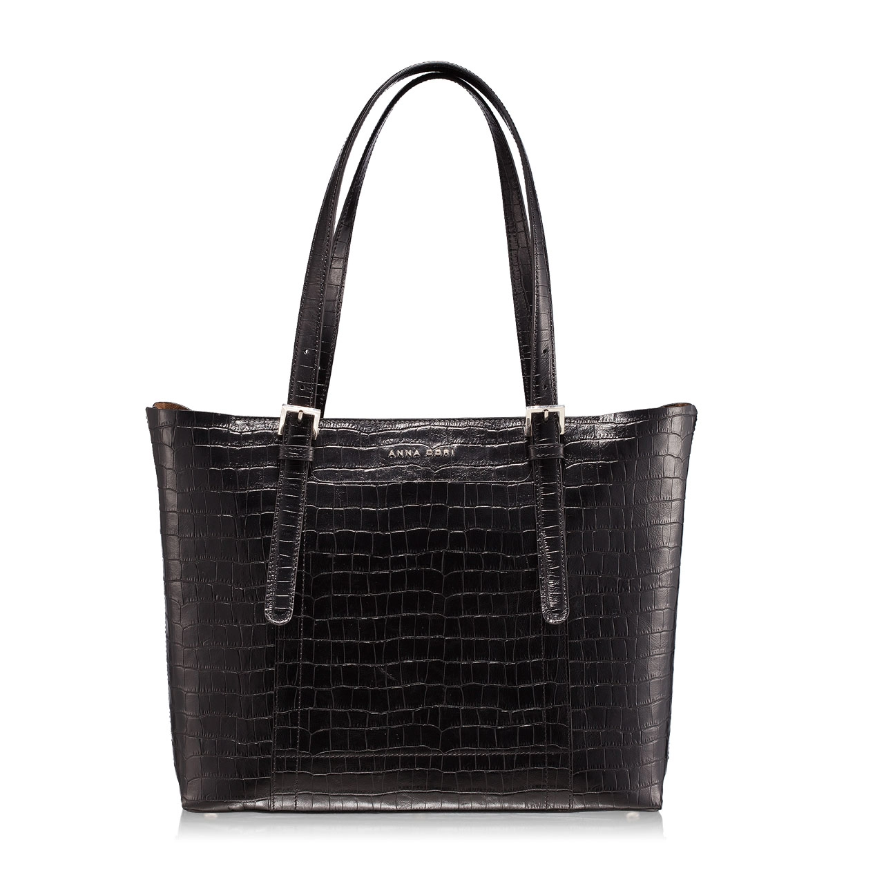 Geanta dama de umar din piele croco, cu logo ANNA CORI gravat.