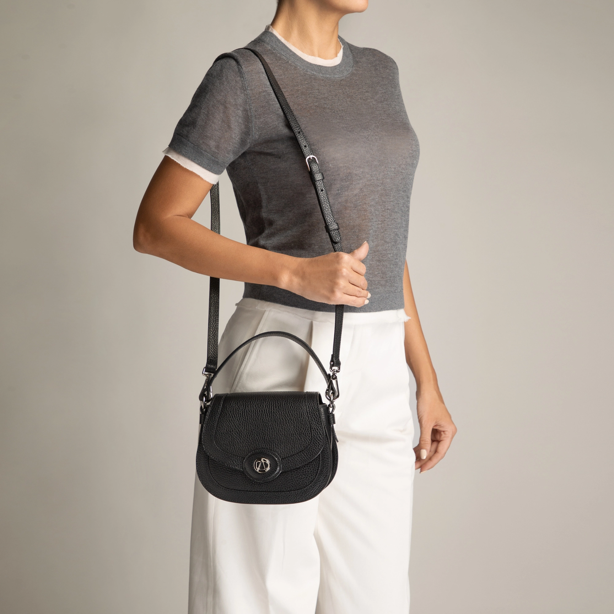 - Baretă de umăr ajustabilă și detașabilă, din piele naturală