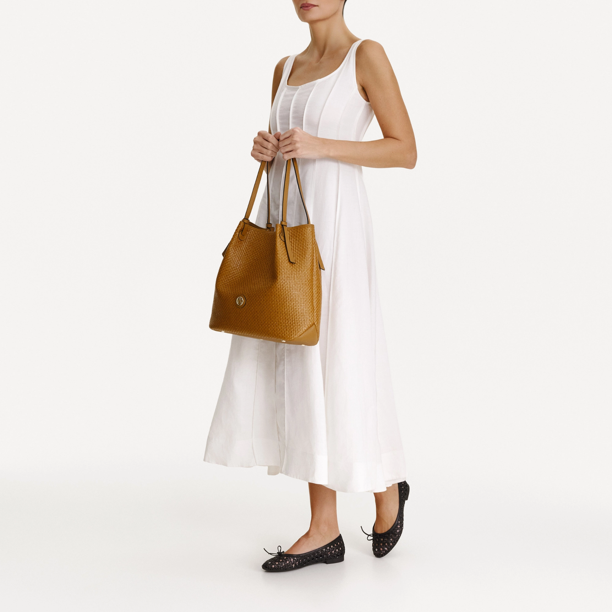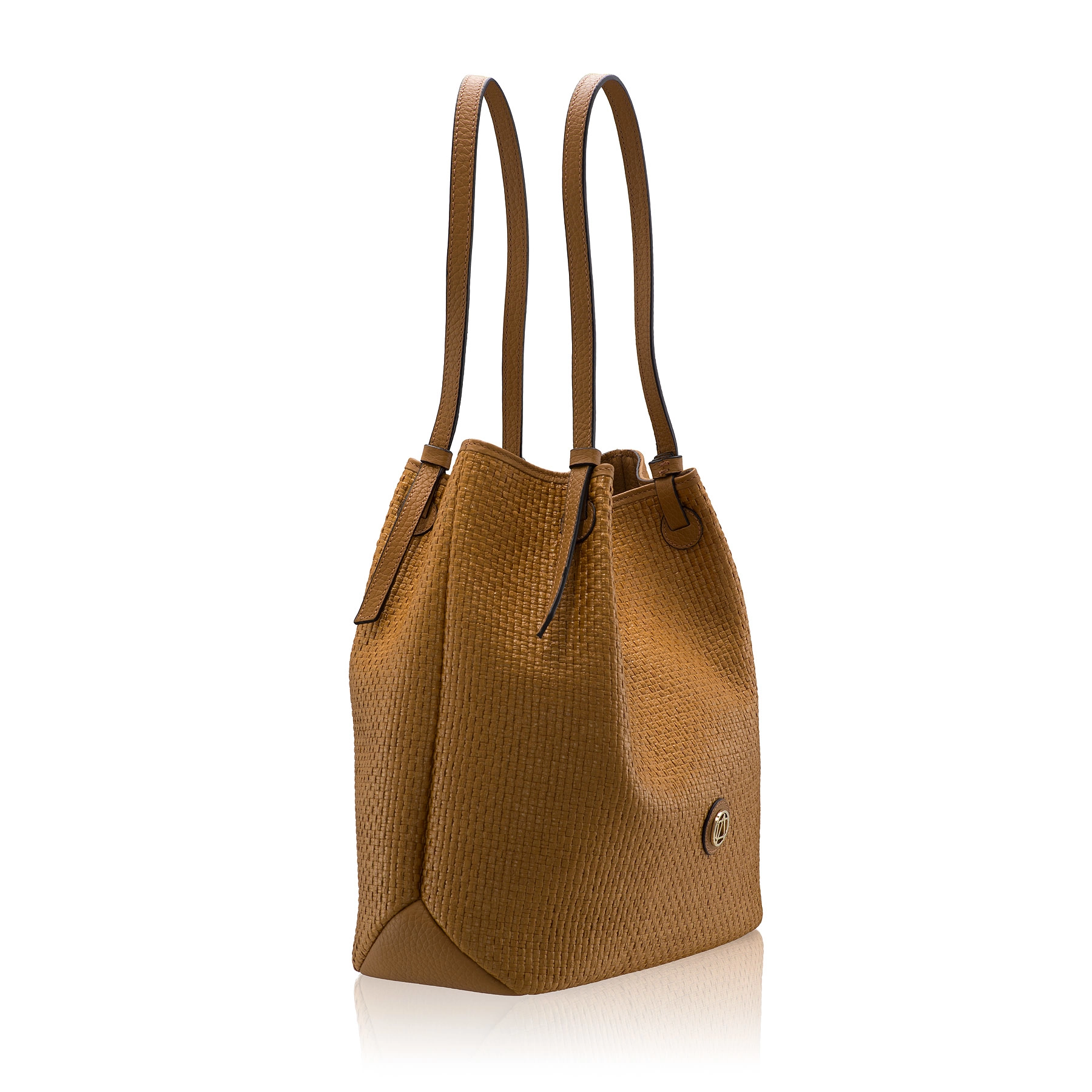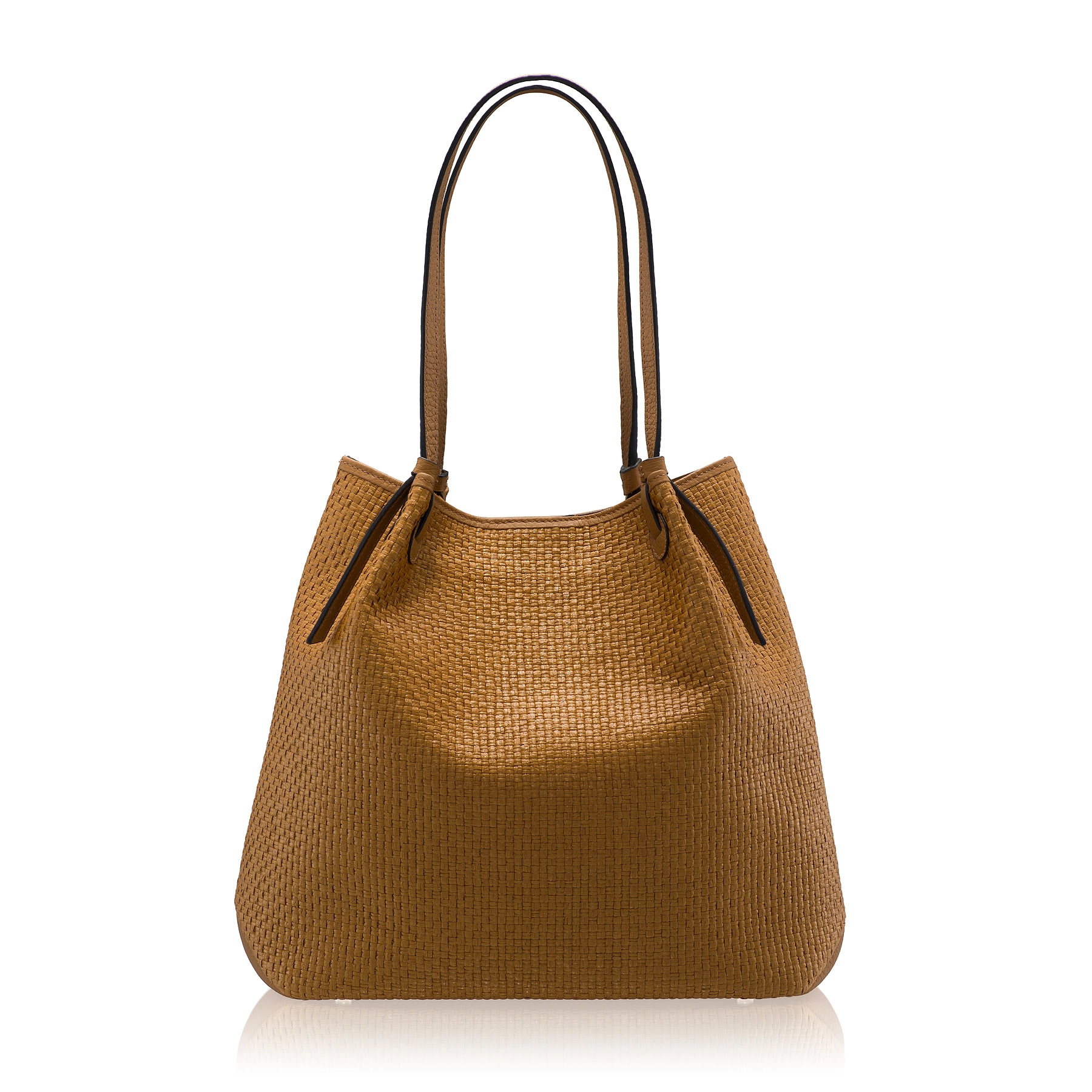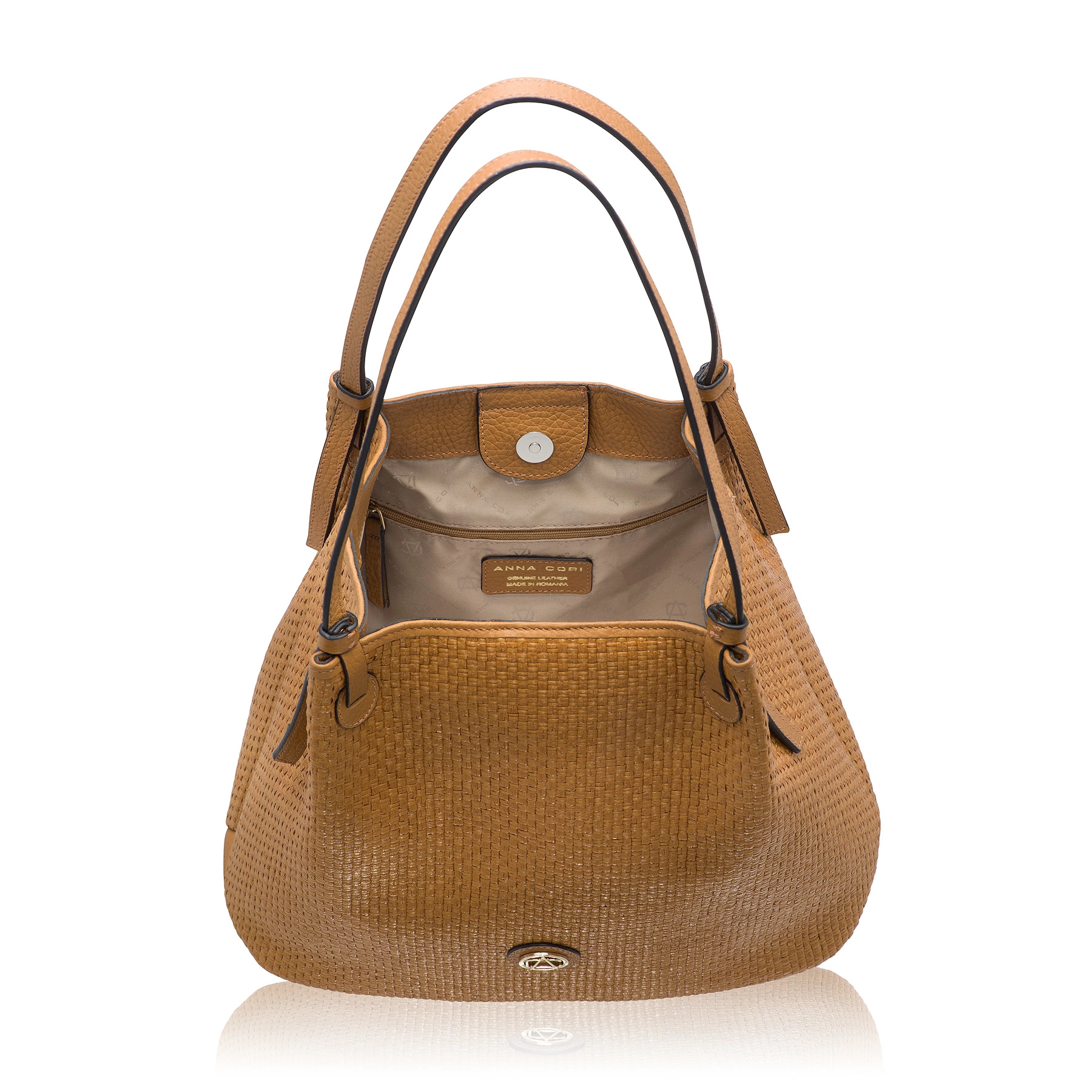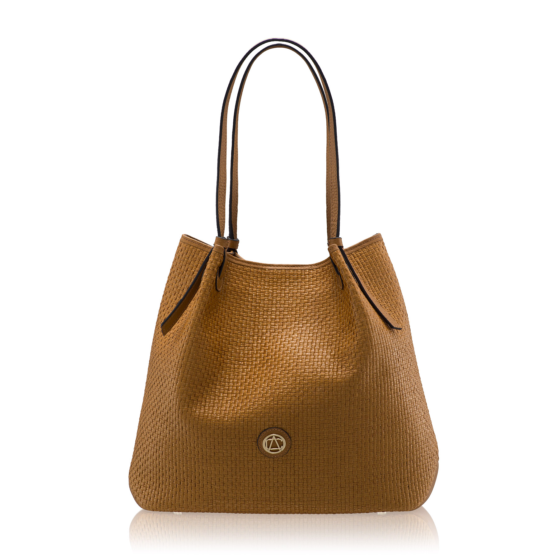 - mânere din piele naturală, confortabile pentru purtarea pe umăr sau în mână