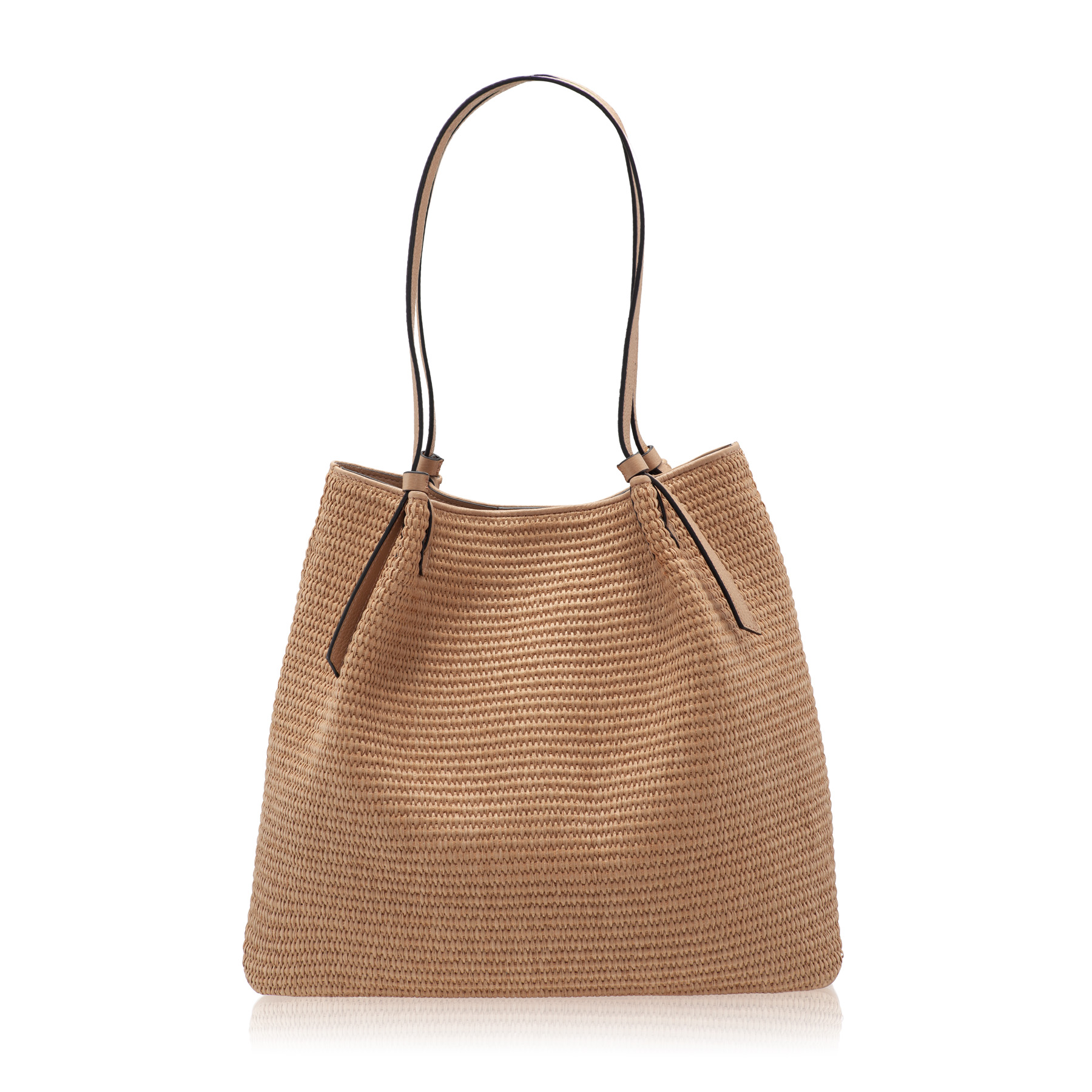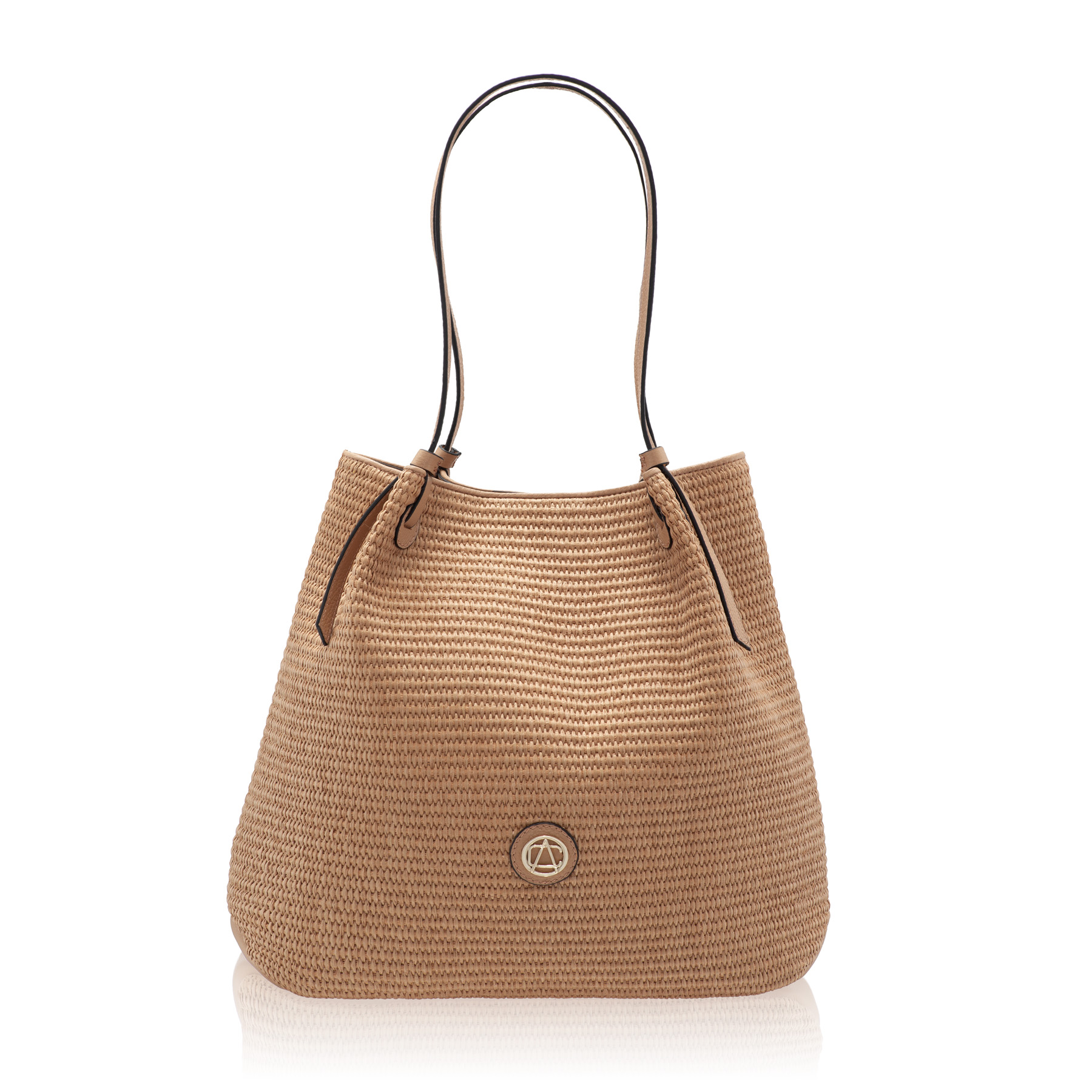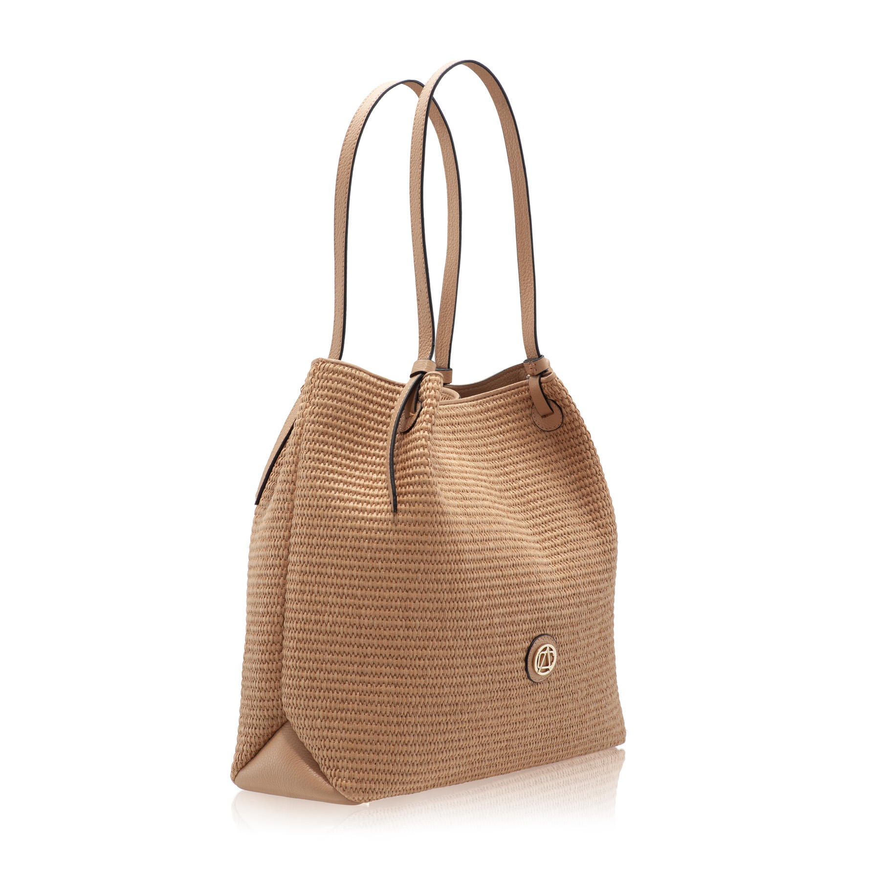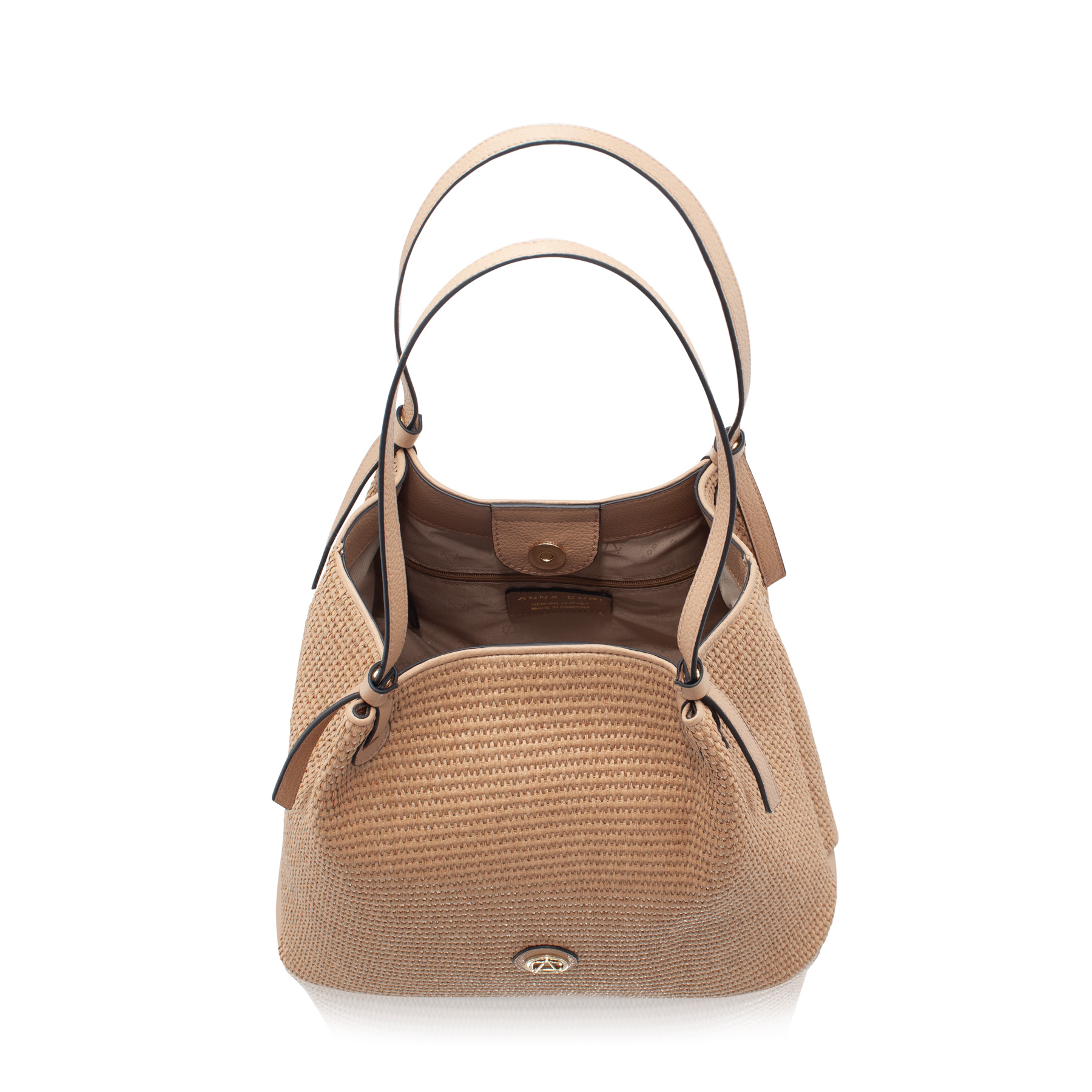 - mânere din piele naturală, confortabile pentru purtarea pe umăr sau în mână