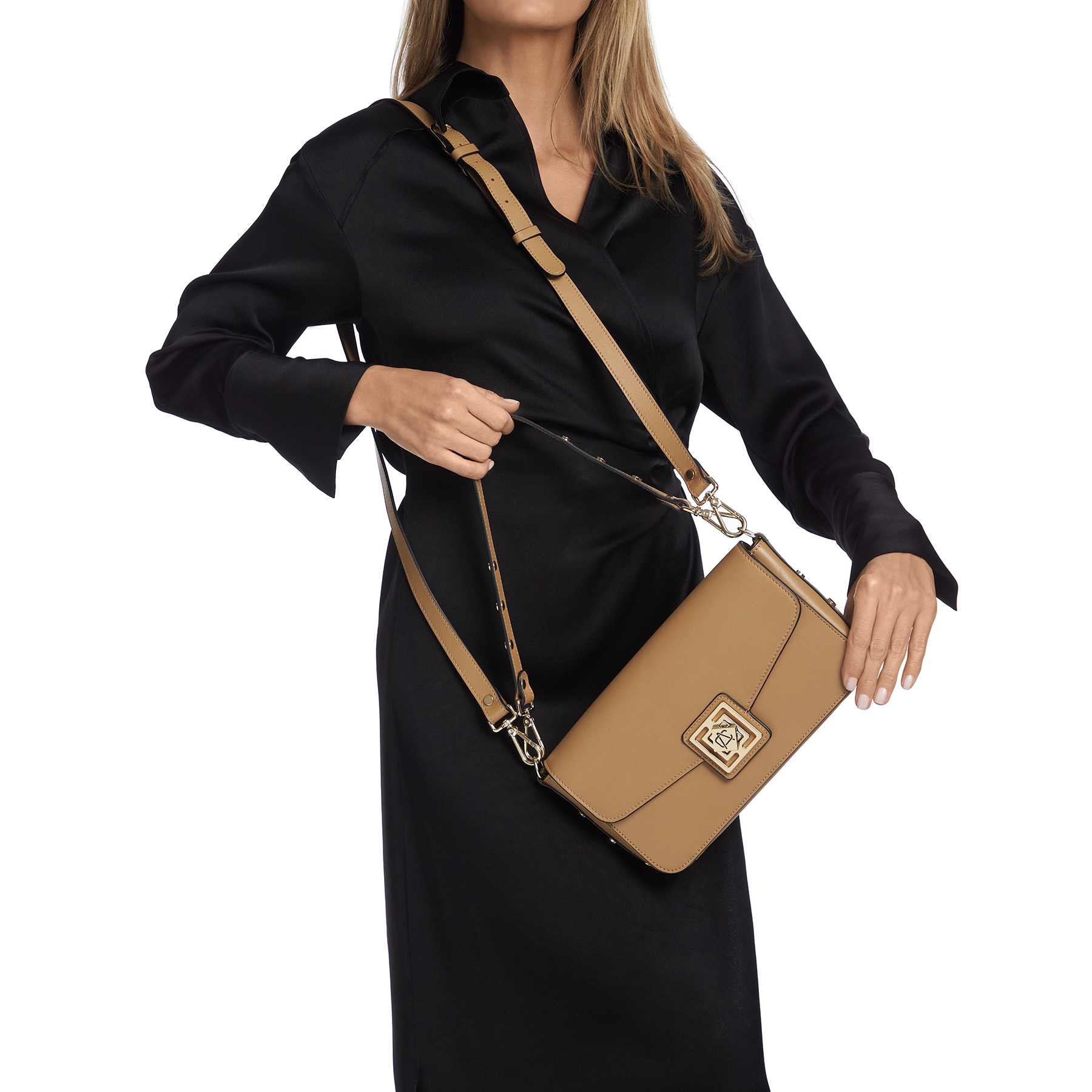 Geanta #KATE este potrivită oricărei ținute datorită formei și a modelului simplu. Este prevazuta cu noul nostru sistem de închidere personalizat cu monograma Anna Cori, conține o curea de umăr și un mâner detașabil.