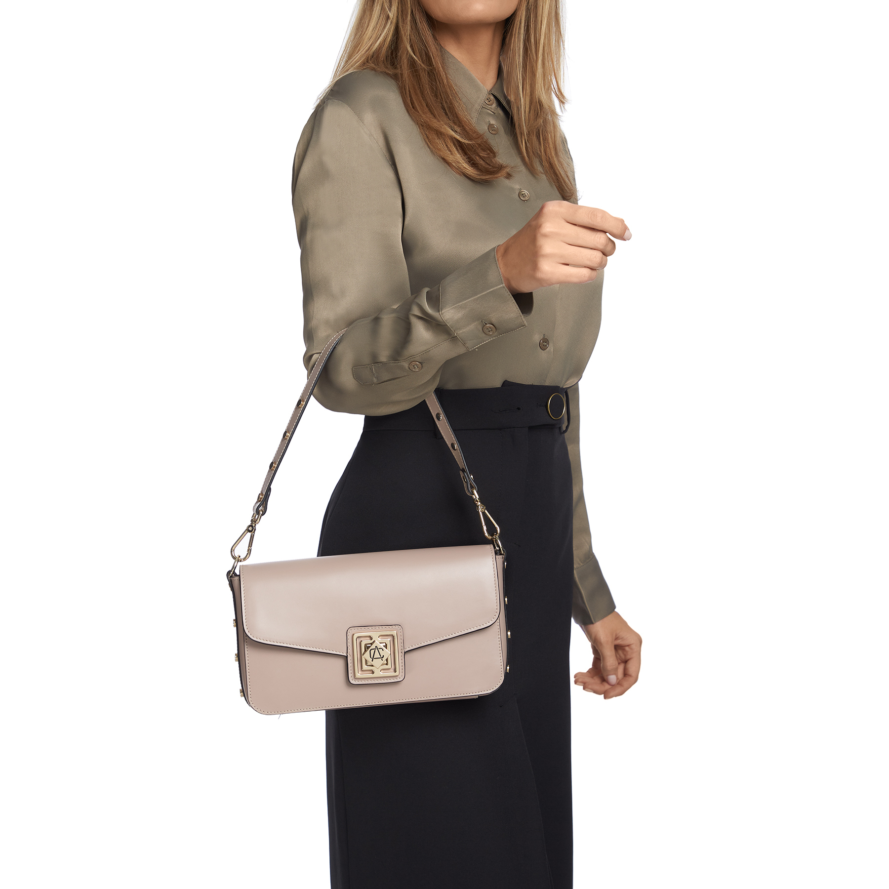 Geanta de umăr #KATE este potrivită oricărei ținute datorită formei și a modelului simplu. Este prevazuta cu noul nostru sistem de închidere personalizat cu monograma Anna Cori, conține o curea de umăr și un mâner detașabil.