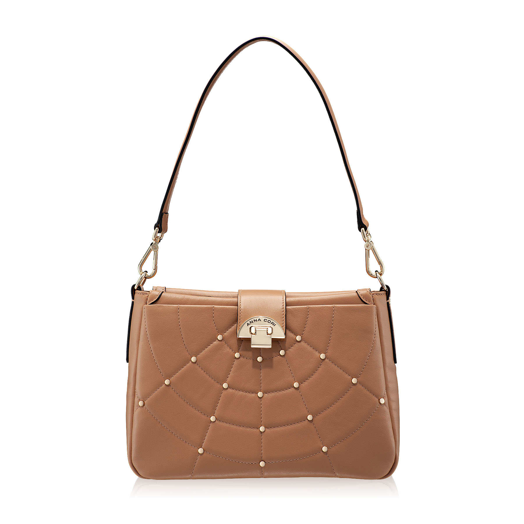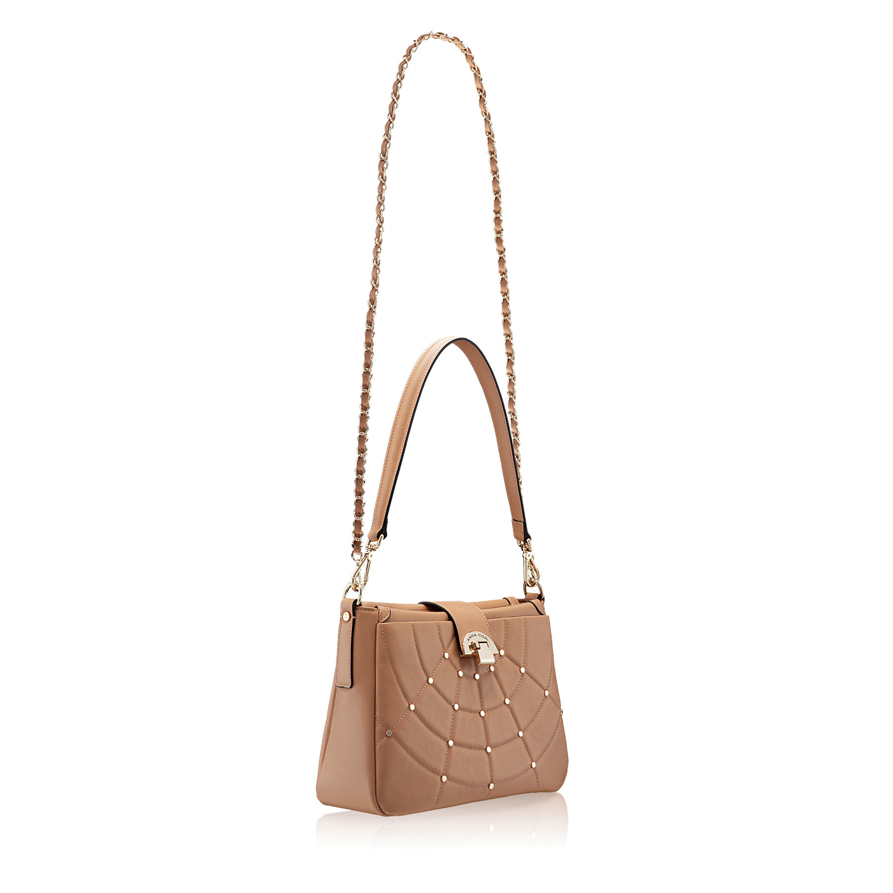 Caracteristica principală a acestei linii este modelul unic relizat din capse aurii și cusături fine. Având un mâner detașabil din piele naturală și o curea detașabilă și ajustabilă, această geantă poate fi purtată atât pe umăr, cât și pe corp. Este o geantă compactă, dar în același timp suficient de mare pentru a-ți purta toate lucrurile esențiale cu tine și are două buzunare exterioare și două interioare.