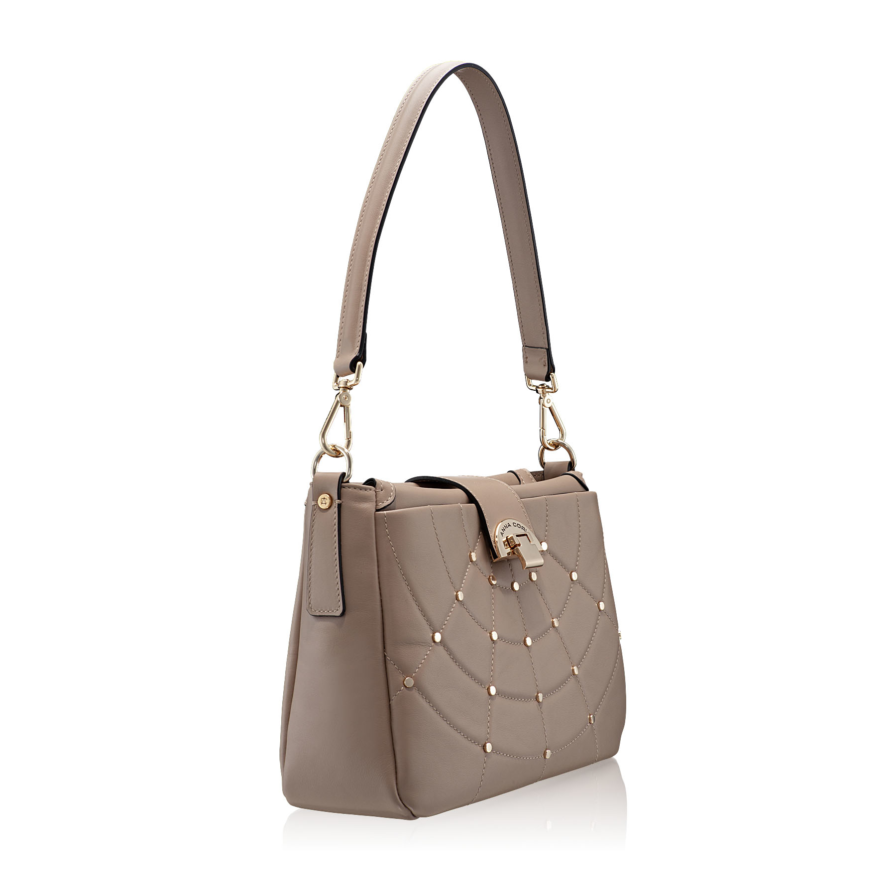 Caracteristica principală a acestei linii este modelul unic relizat din capse aurii și cusături fine. Având un mâner detașabil din piele naturală și o curea detașabilă și ajustabilă, această geantă poate fi purtată atât pe umăr, cât și pe corp. Este o geantă compactă, dar în același timp suficient de mare pentru a-ți purta toate lucrurile esențiale cu tine și are două buzunare exterioare și două interioare.
