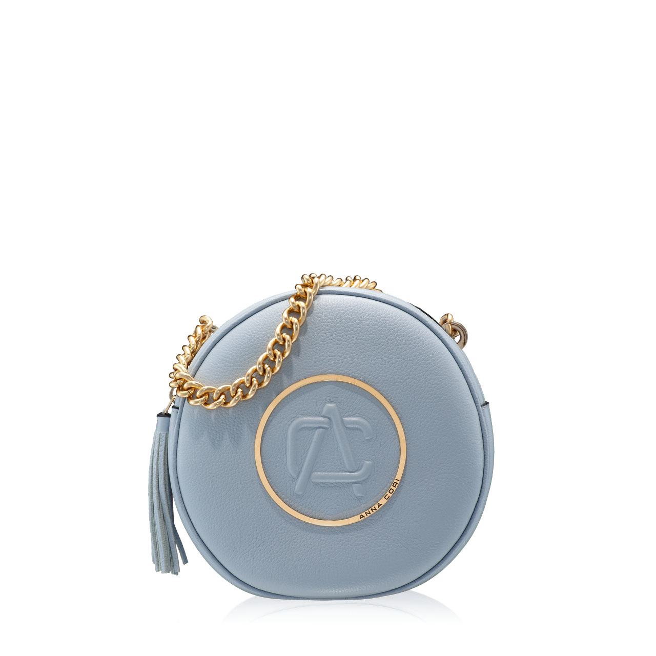 Geanta #TAMARA, într-o formă atemporală, rotundă, este confecționată din piele naturală de vițel și este accesorizată cu elemente deosebite. Cercul metalic auriu din jurul monogramei Anna Cori, scoate în evidență forma geometrică a acestei genți. Geanta este prevăzută cu un lanț metalic auriu de mână, o curea detașabilă și reglabilă și un ciucure din piele naturală la fermoar.