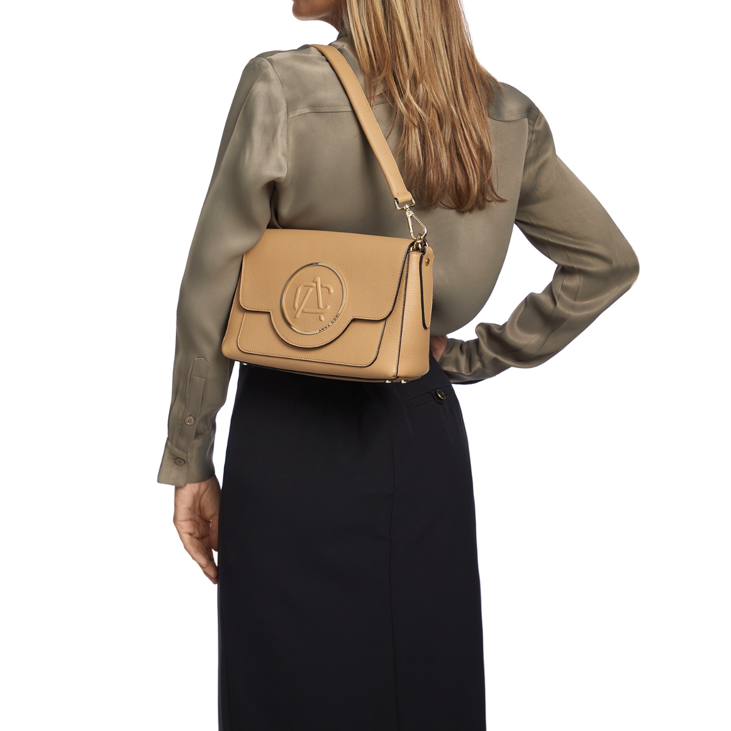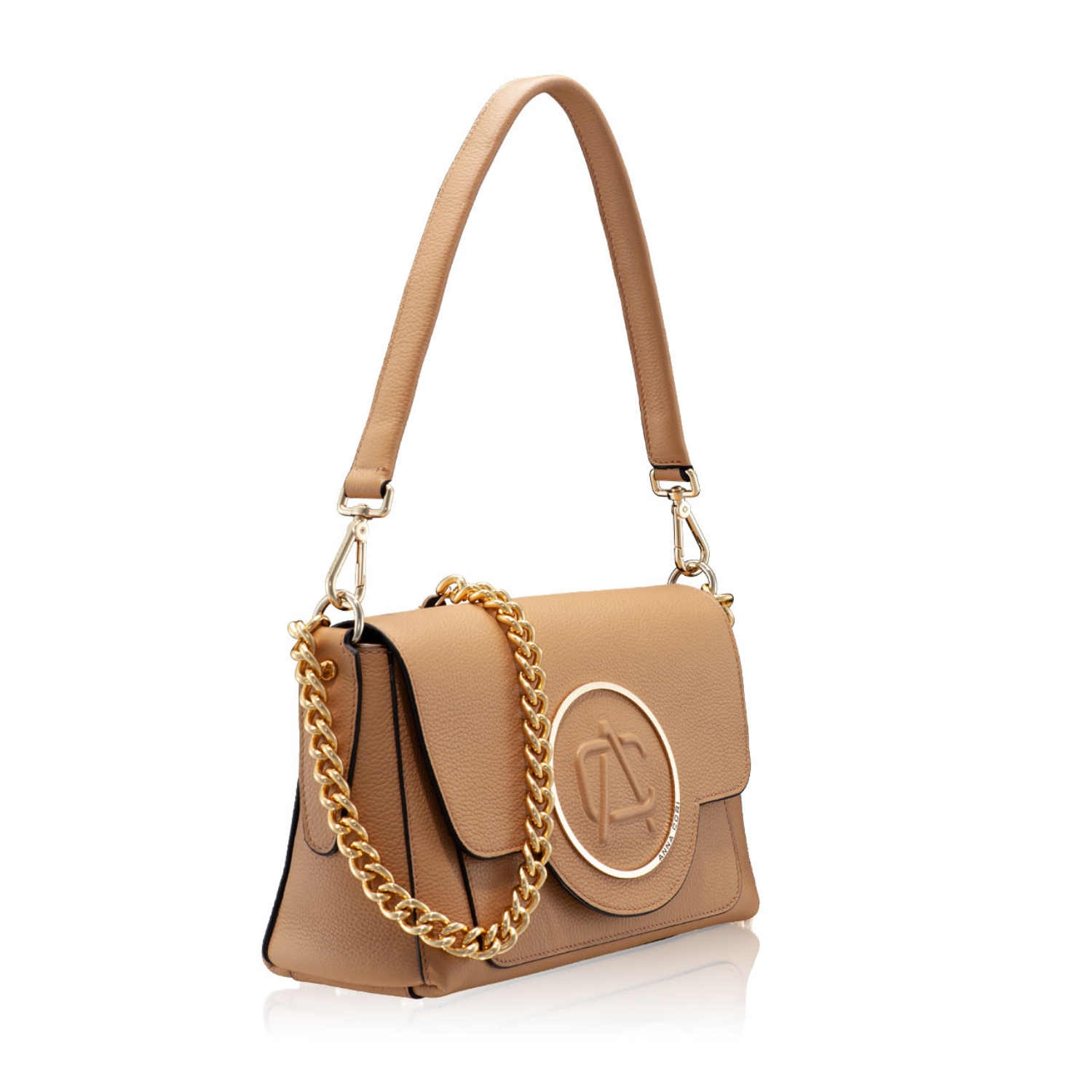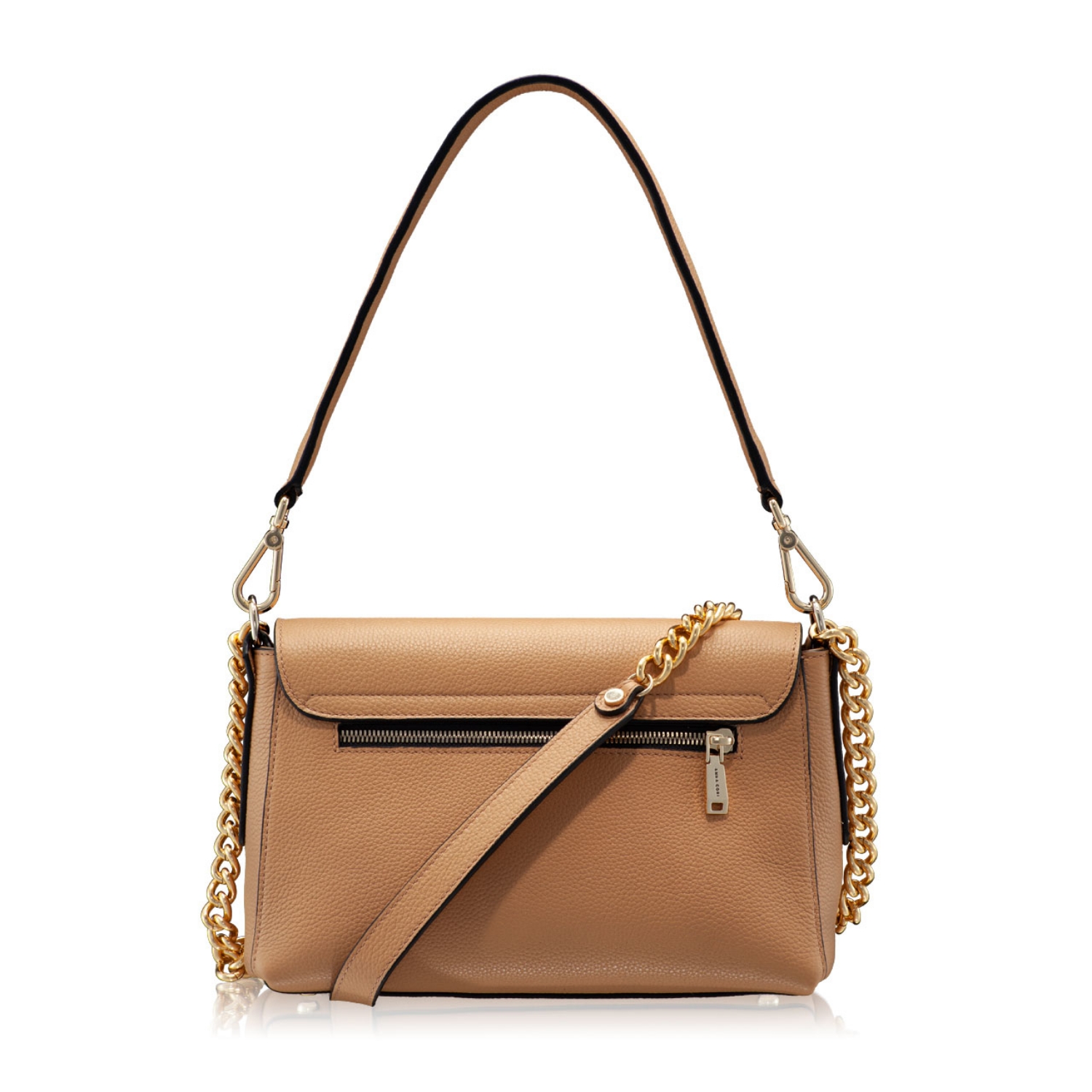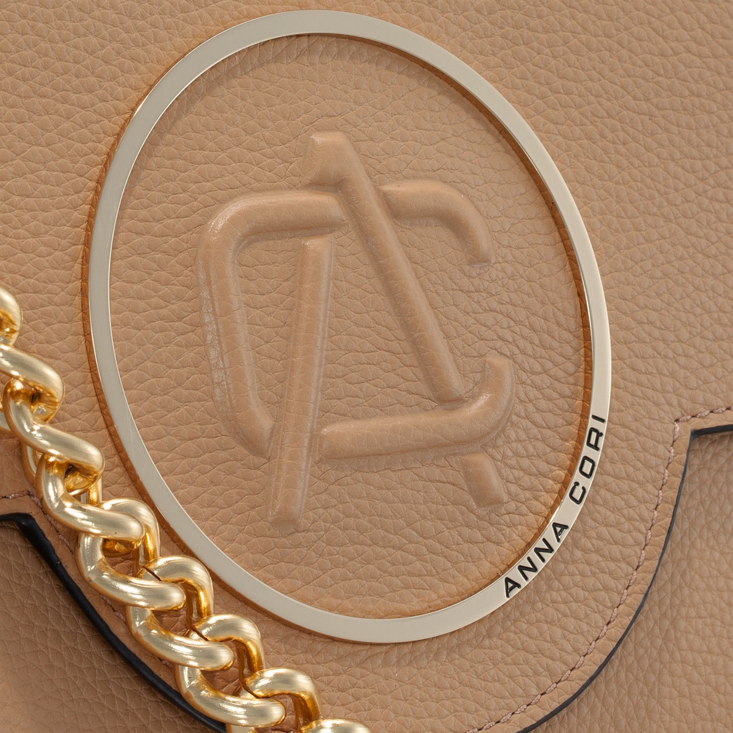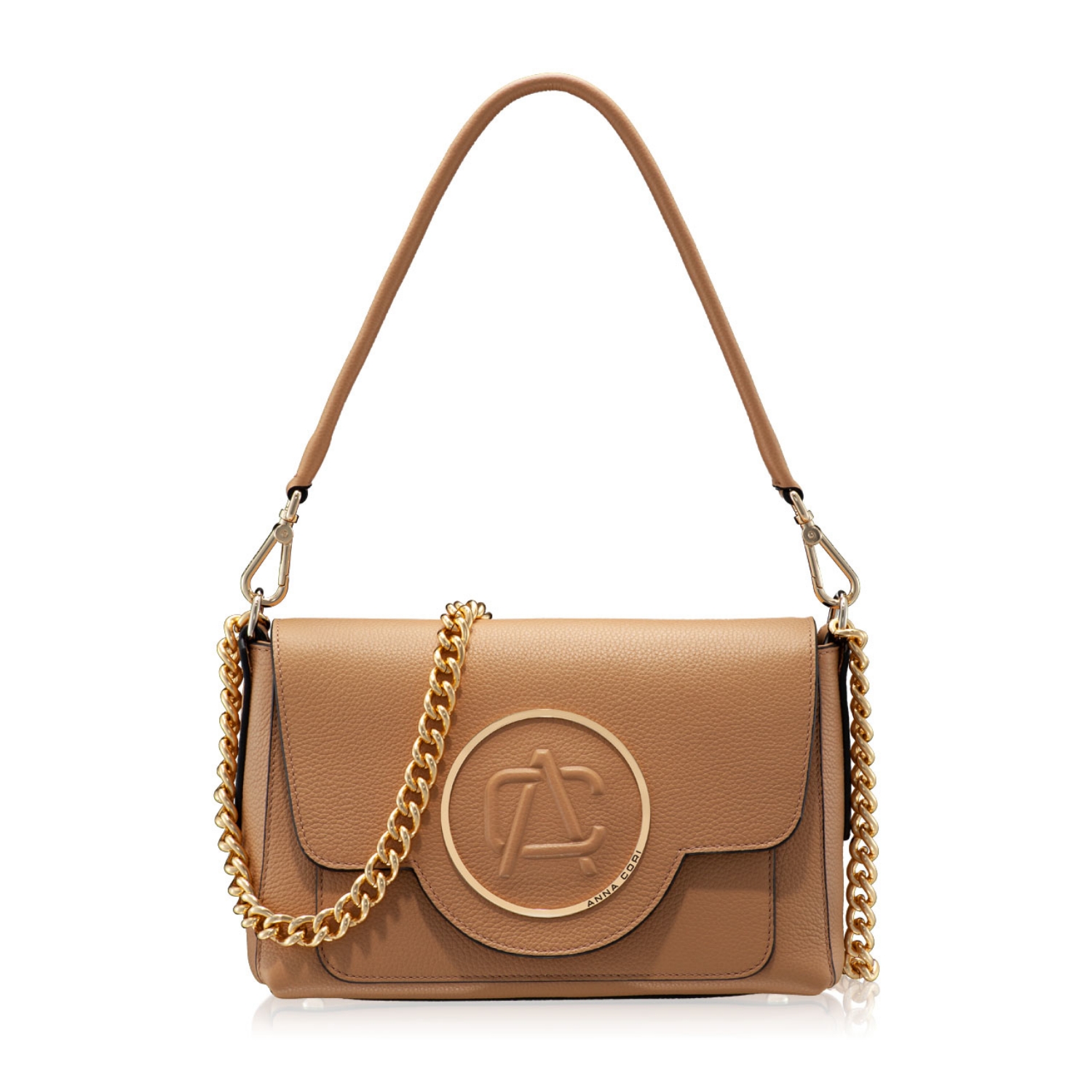 Geanta #TANIA este accesorizată cu emblematica monogramă Anna Cori evidențiată cu un detaliu auriu aduce un plus de strălucire. Această geantă poate fi purtată pe umăr prin mânerul detașabil din piele naturală sau poate fi purtată crossbody datorită lanțului de umăr.