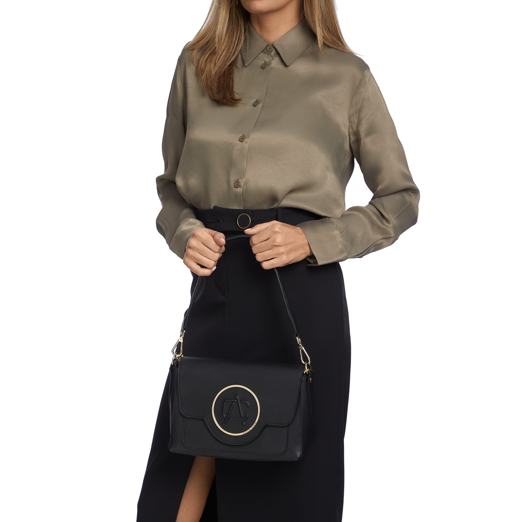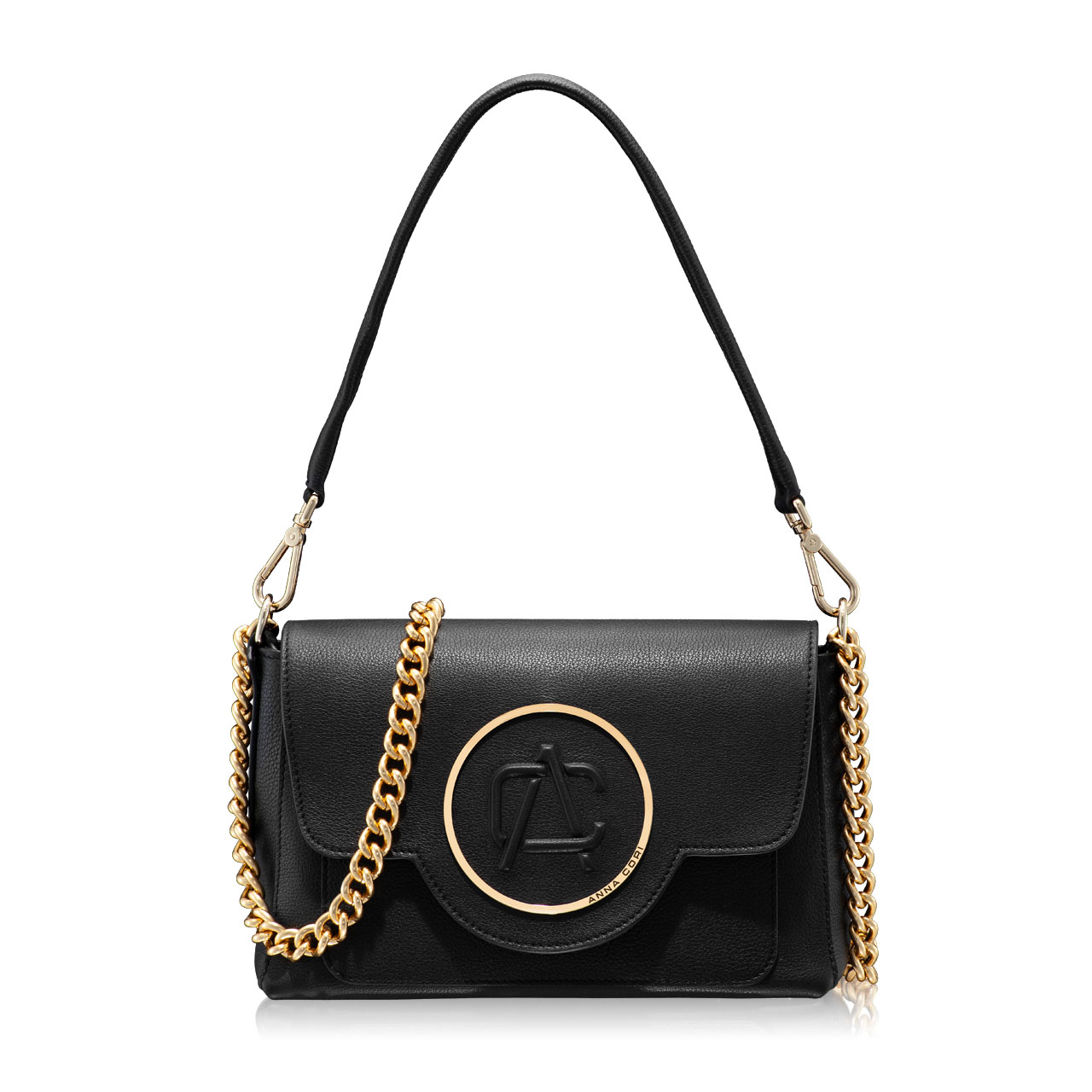 Geanta de umăr ,#TANIA este accesorizată cu emblematica monogramă Anna Cori evidențiată cu un detaliu auriu aduce un plus de strălucire. Această geantă poate fi purtată pe umăr prin mânerul detașabil din piele naturală sau poate fi purtată crossbody datorită lanțului de umăr.