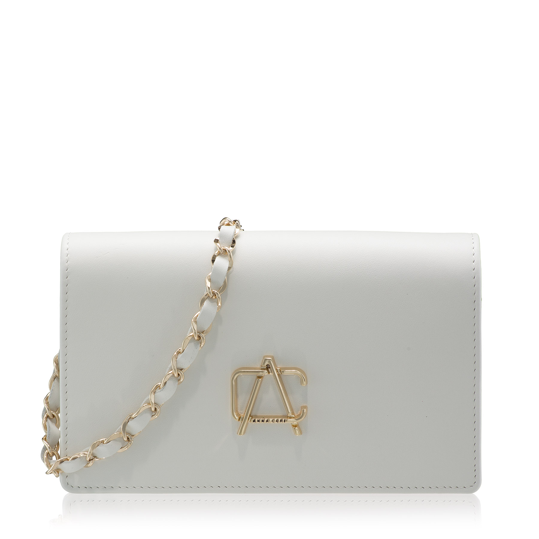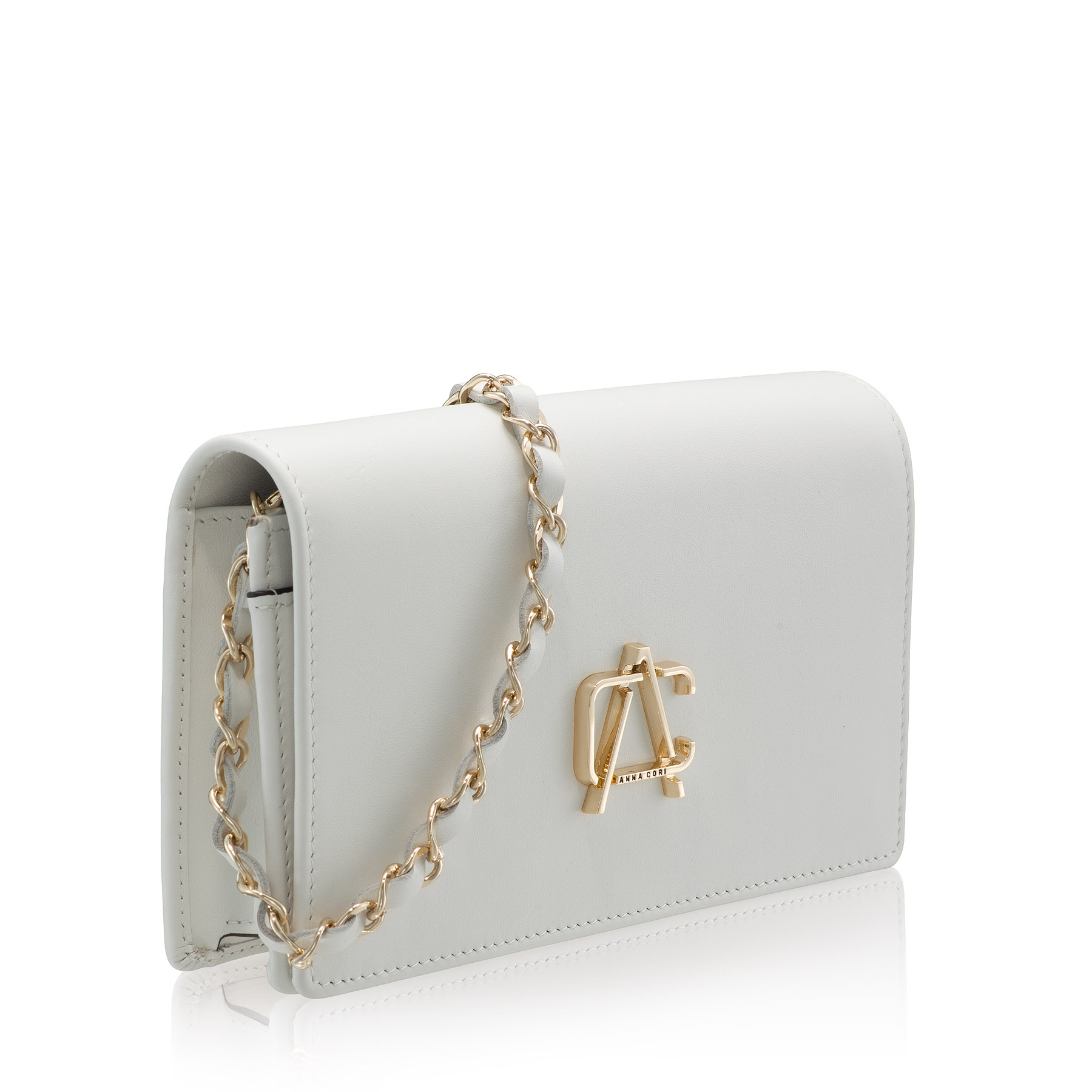 Geanta plic #ARNA este un model Icon Anna Cori datorită eleganței de care dă dovadă și diversității nuanțelor în care se regăsește. Este compartimentată într-un mod complex, având două compartimente, un buzunar central cu fermoar și 6 spații pentru depozitare carduri. Monograma Anna Cori din metal auriu adaugă un plus de eleganță.