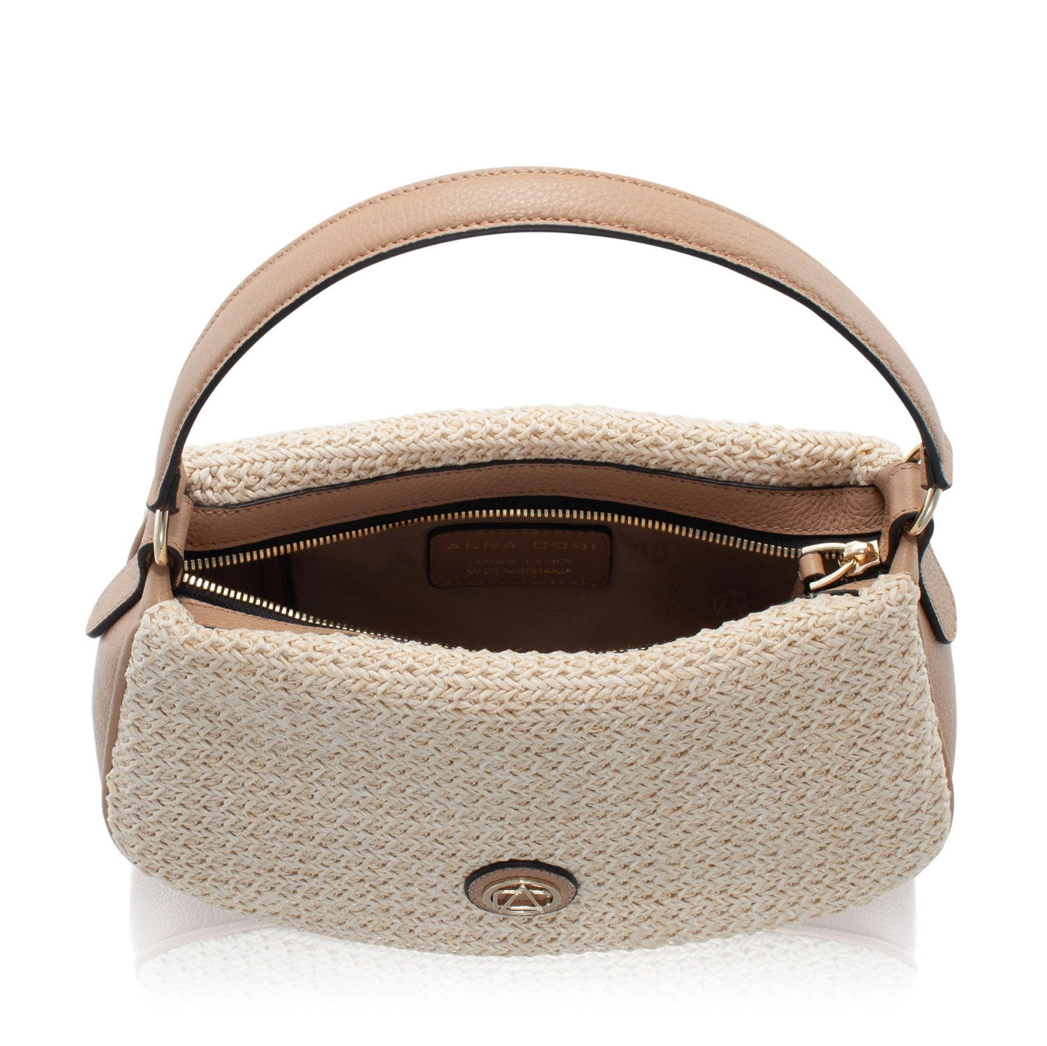 - Accesorizată cu emblemă metalică cu logo Anna Cori