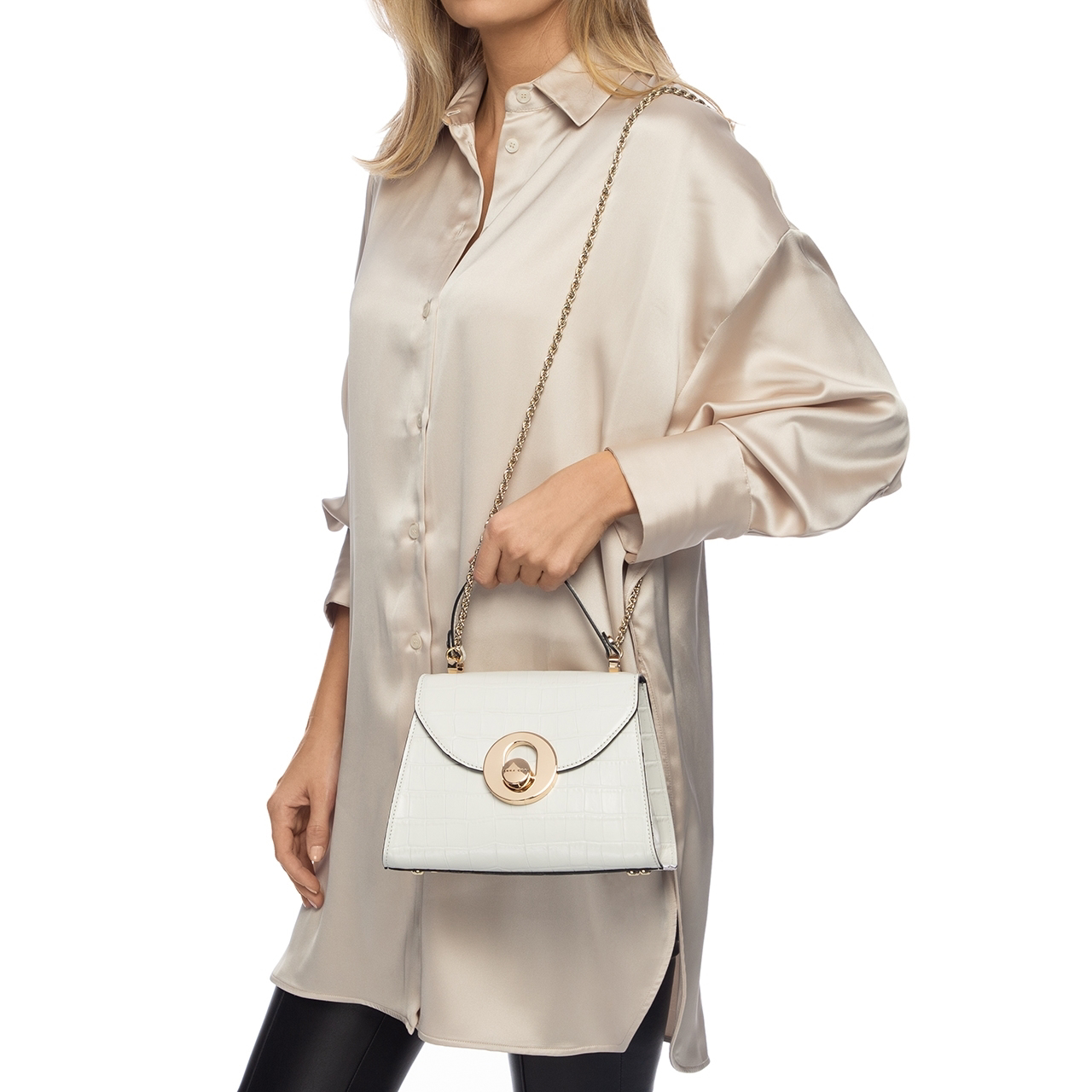 Geanta dama de mana din piele naturala cocco cu accesorii metalice personalizate.Este prevazuta cu un singur compartiment si un buzunar interior.