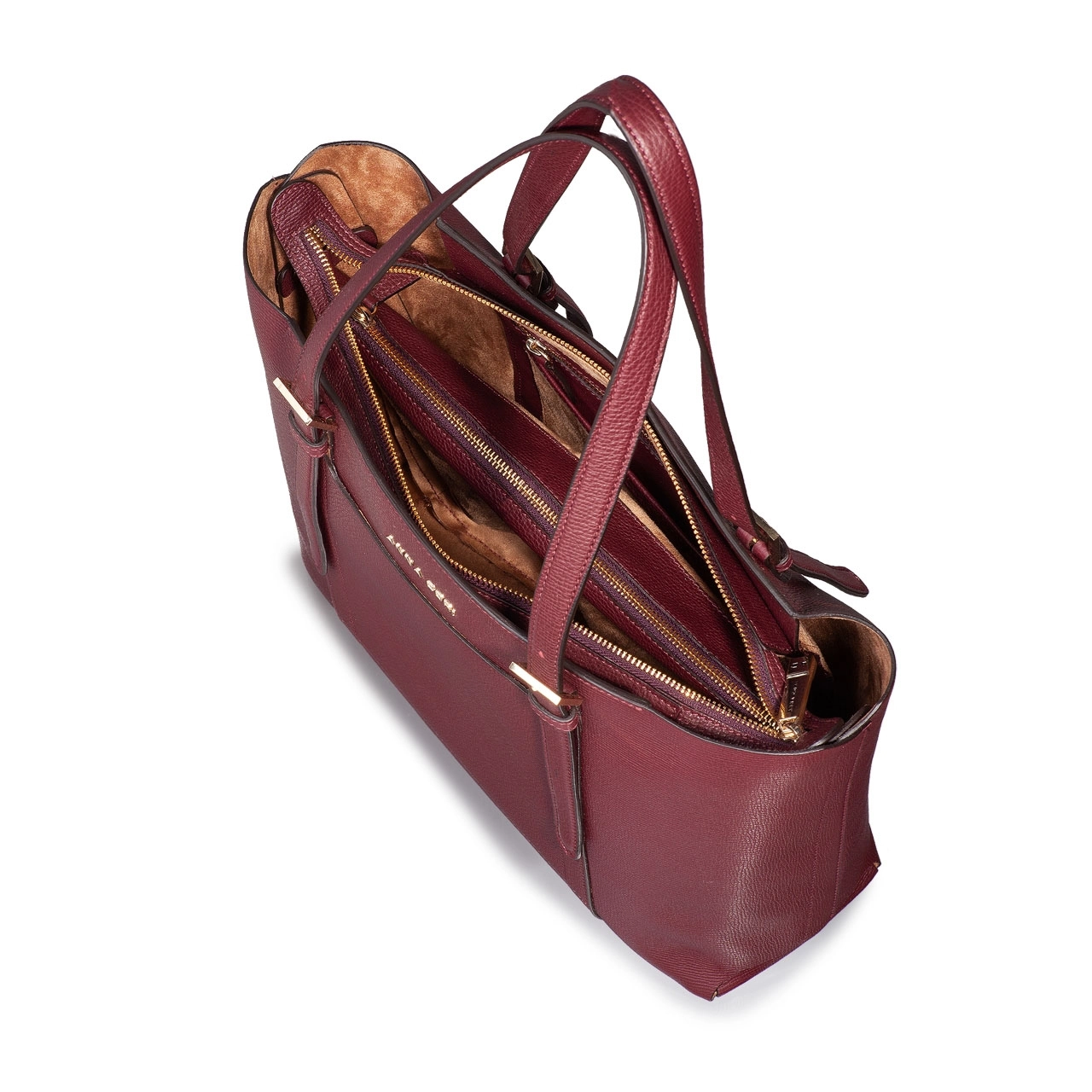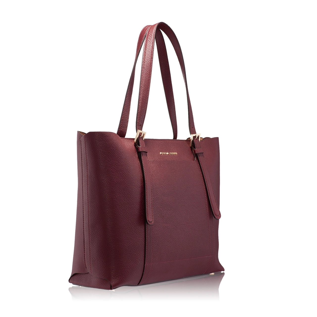 Geanta dama de umar din piele naturala. Este prevazuta cu doua compartimente si doua buzunare interioare cu fermoar. Inchiderea se face cu fermoar, iar baretele de umar sunt usor ajustabile.