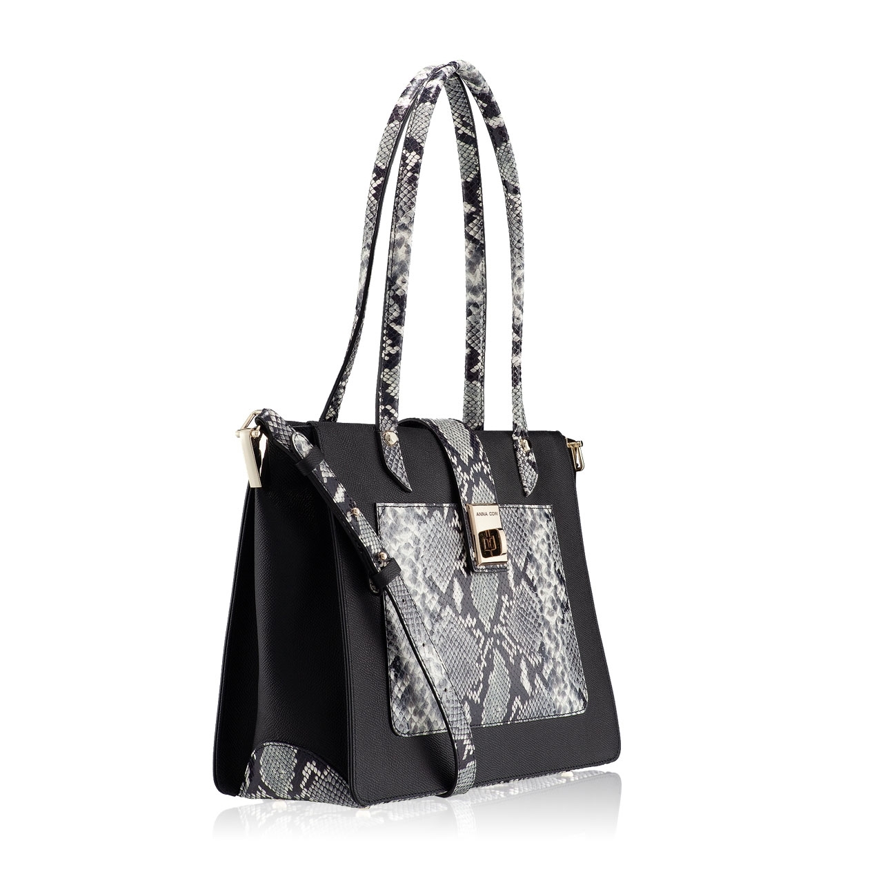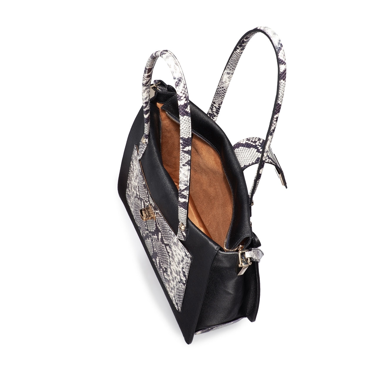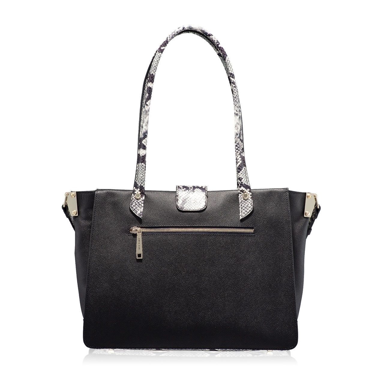 Geanta dama de umar din piele saffiano si piele naturala stampata cu accesorii metalice personalizate. In interior este prevazuta cu un singur compartiment cu un buzunar cu fermoar iar in exterior este prevazuta cu un buzunar aplicat si un buzunar cu fermoar.Inchiderea se face cu fermoar iar bareta de umar este ajustabila.