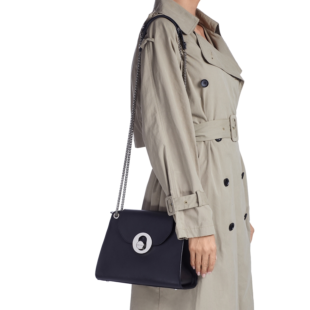 Geanta dama de umar din piele naturala cu accesorii personalizate.La interior, este prevazuta cu un singur compartiment si un buzunar cu fermoar.