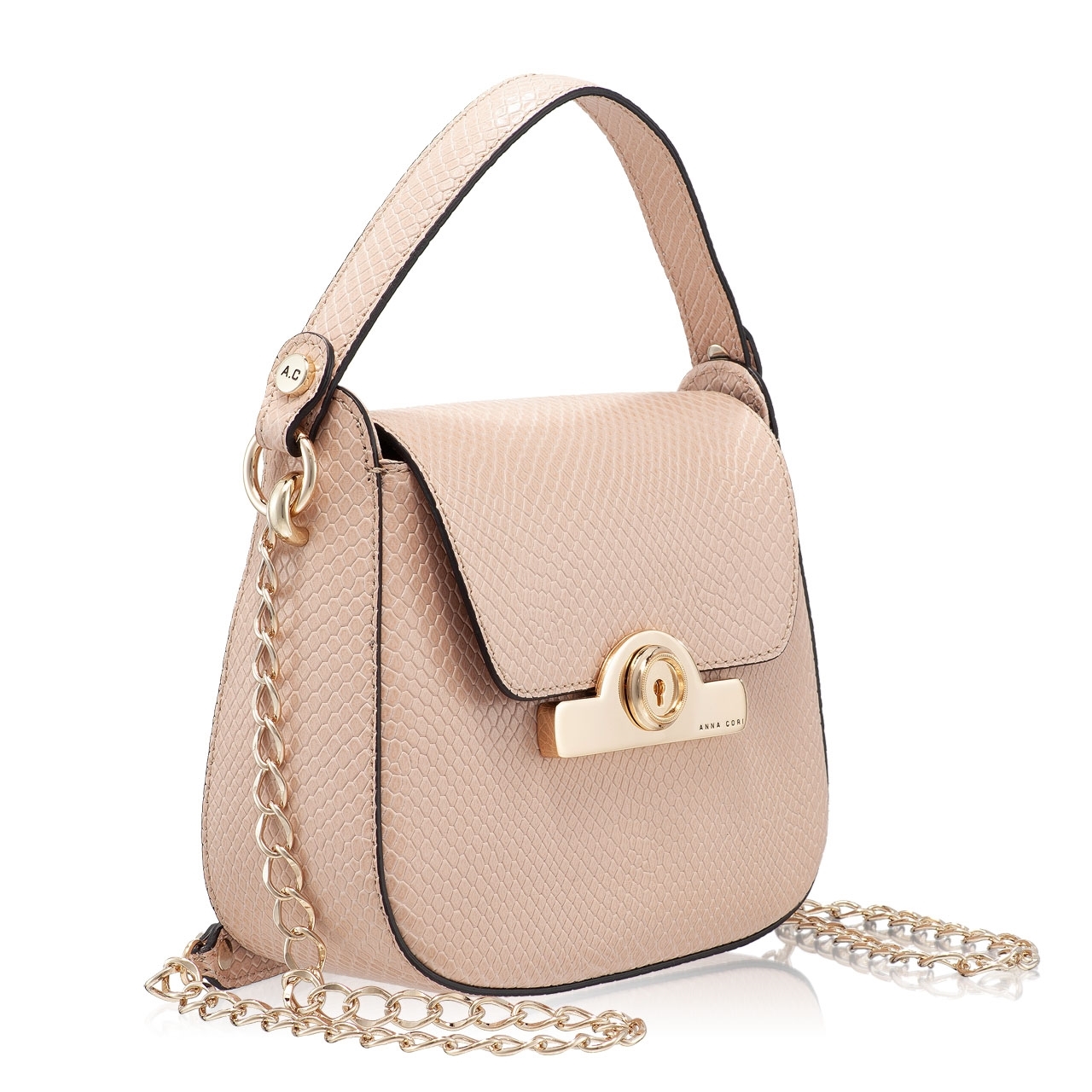 Geanta dama de umar din piele naturala stampata cu accesorii metalice personalizate.?Este prevazuta cu un singur compartiment si un buzunar interior.