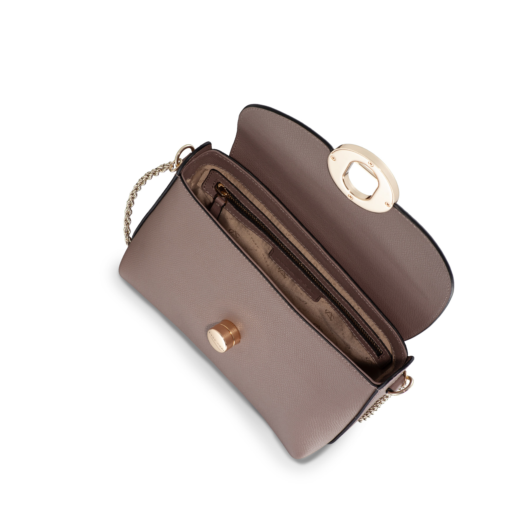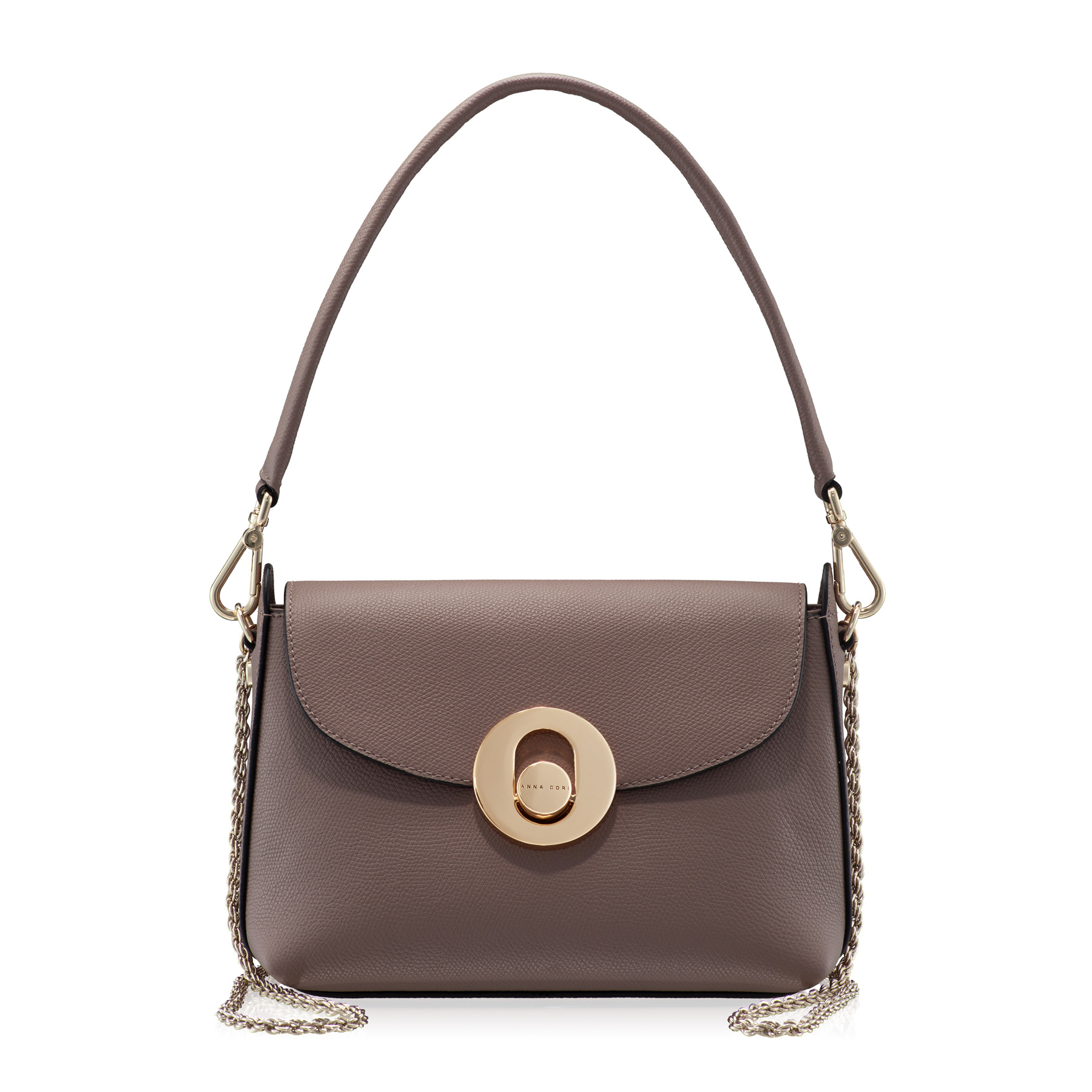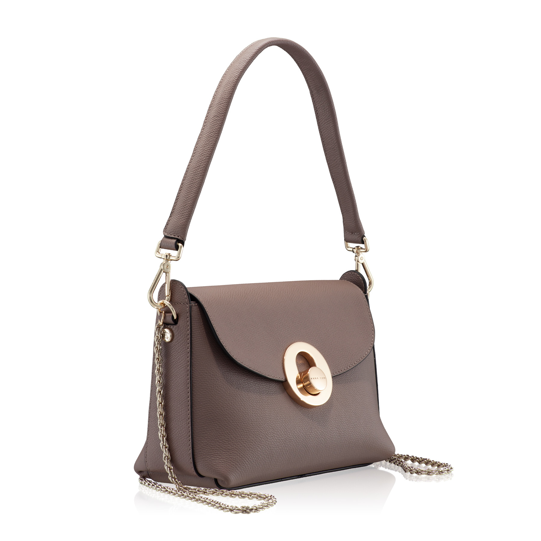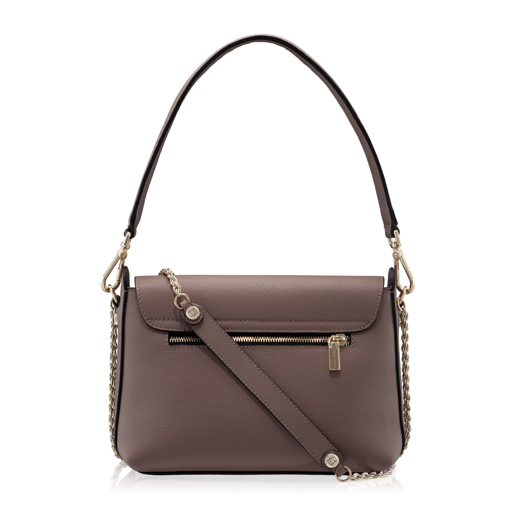 Geanta dama de umar din piele naturala cu accesorii personalizate.La interior, este prevazuta cu un singur compartiment si un buzunar cu fermoar.Bareta de umar este detasabila