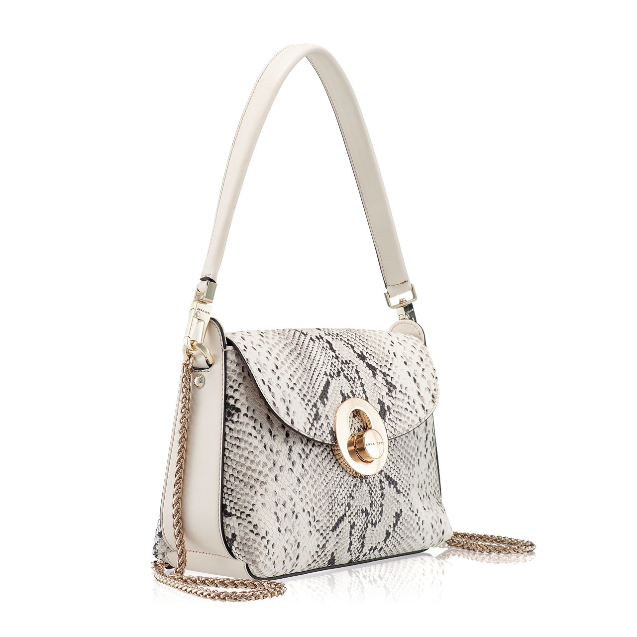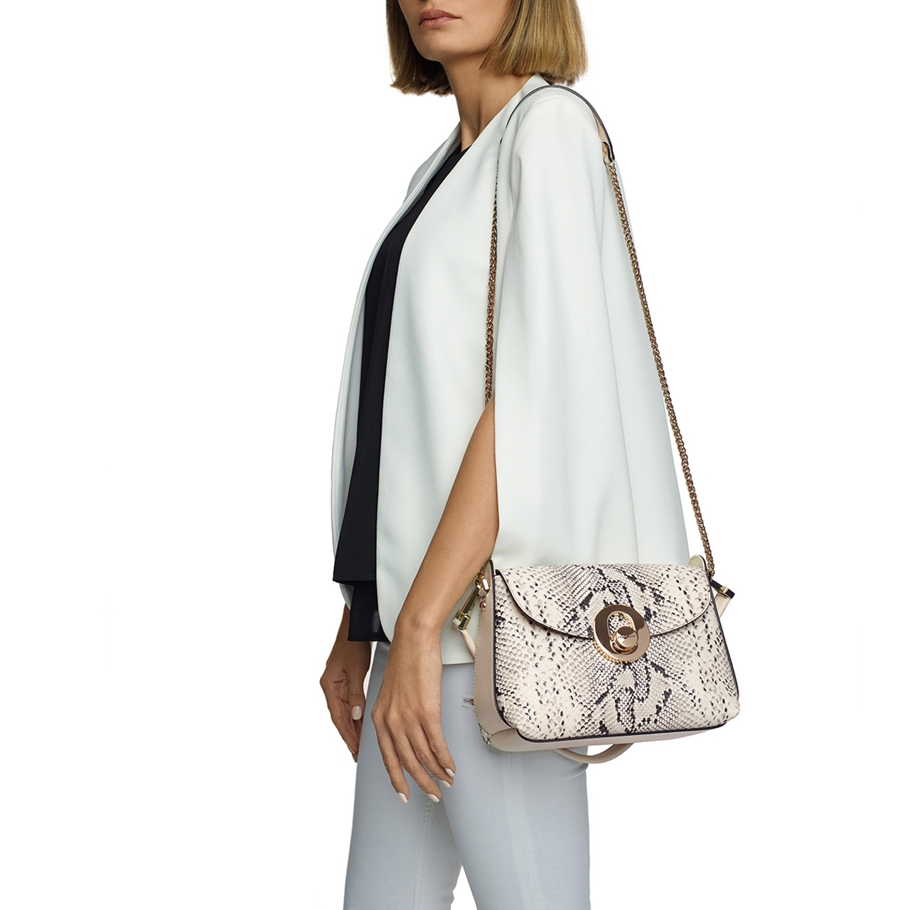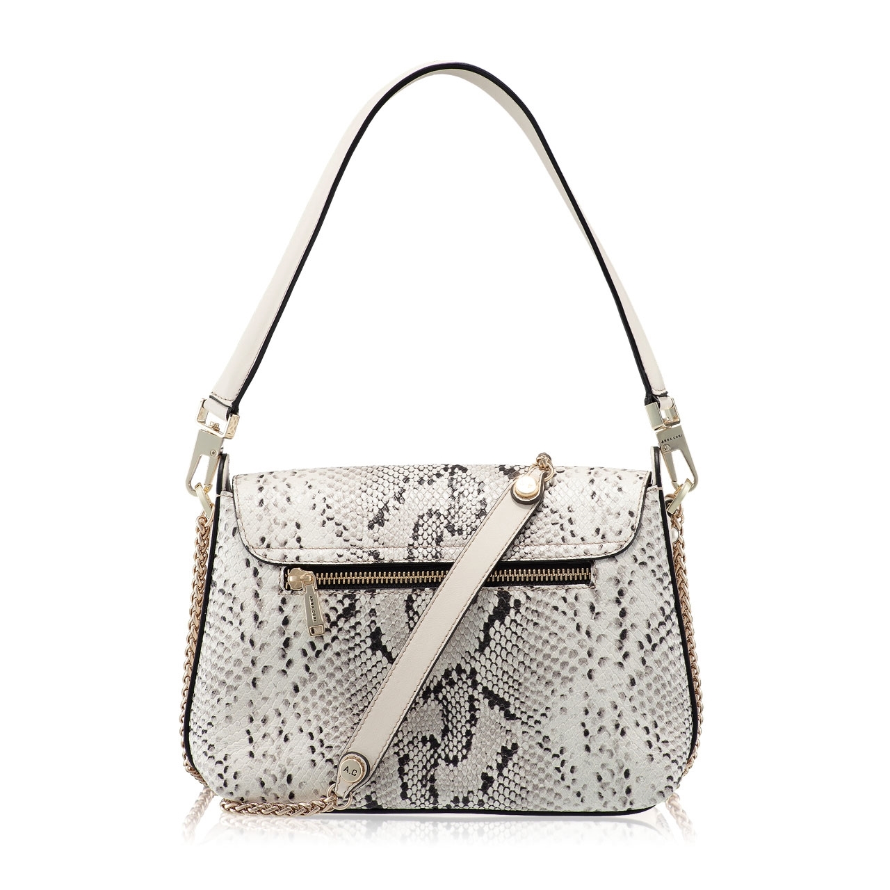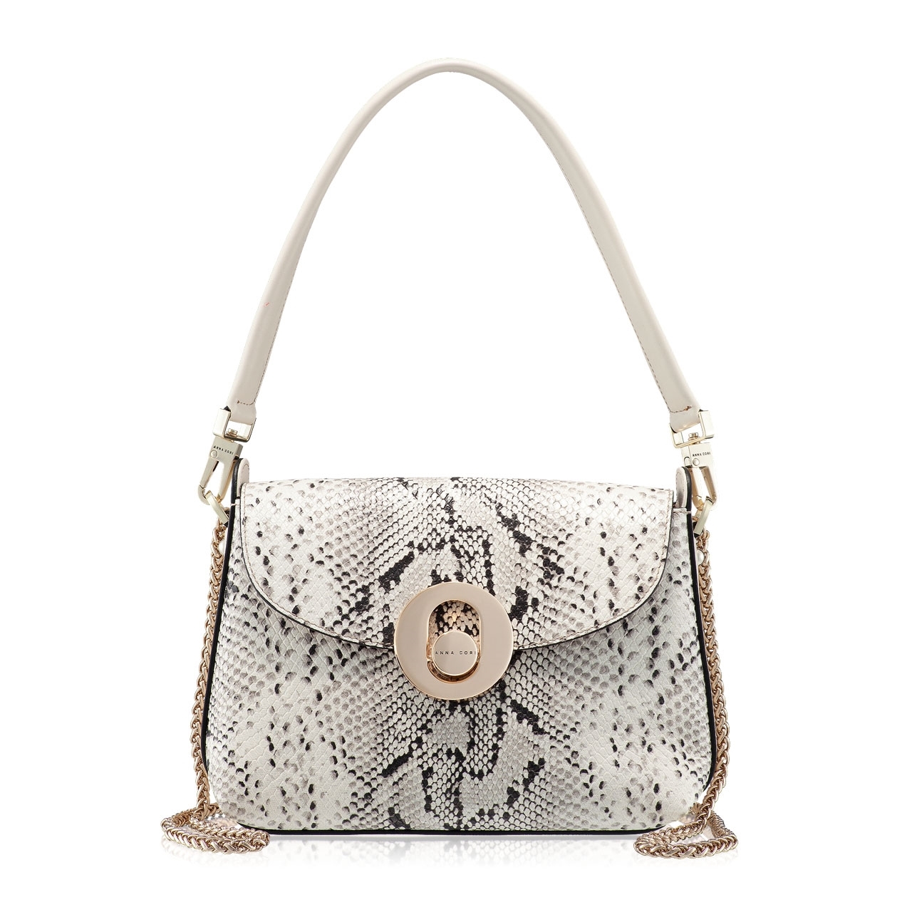 Geanta dama de umar din piele naturala cu accesorii personalizate.La interior, este prevazuta cu un singur compartiment si un buzunar cu fermoar.Bareta de umar este detasabila
