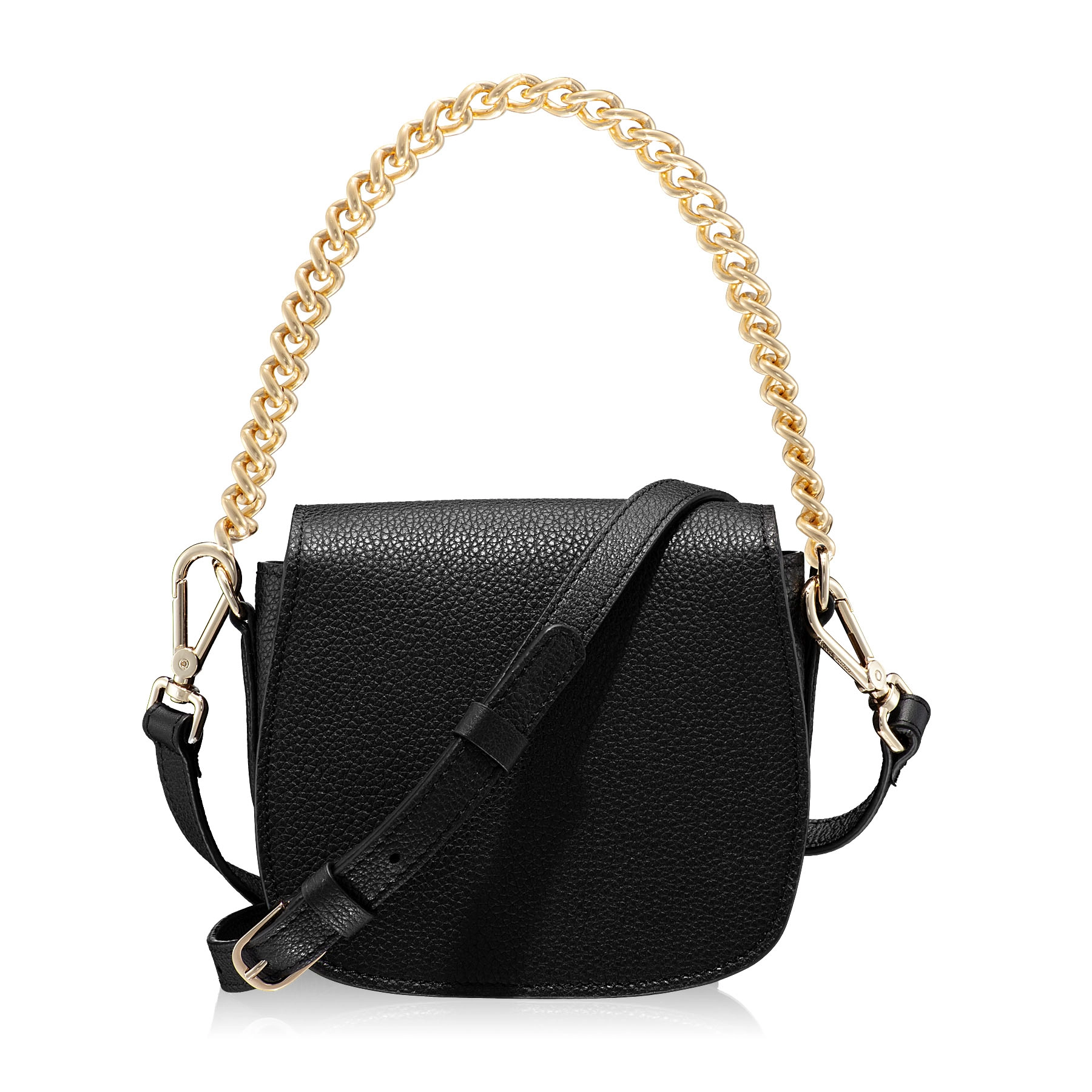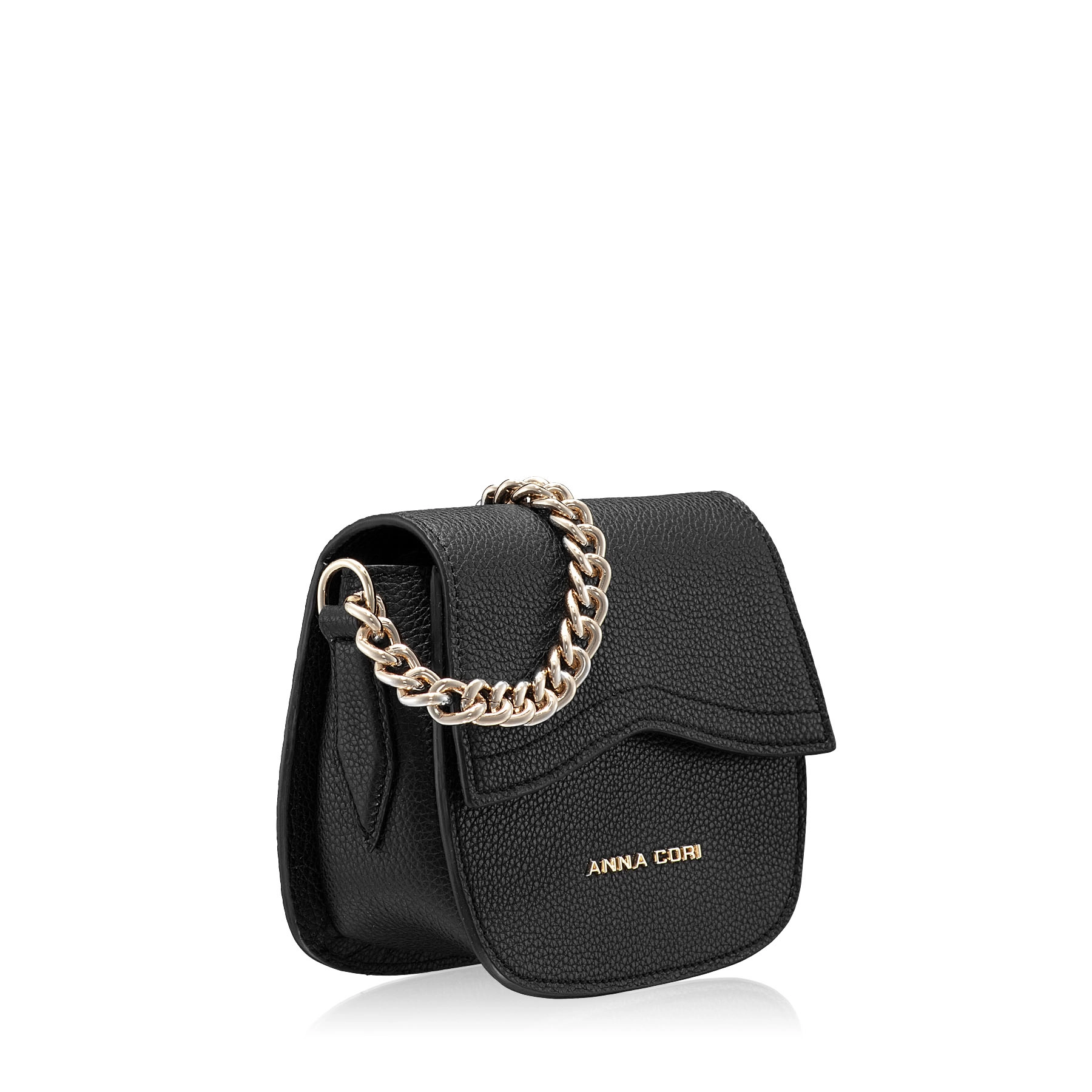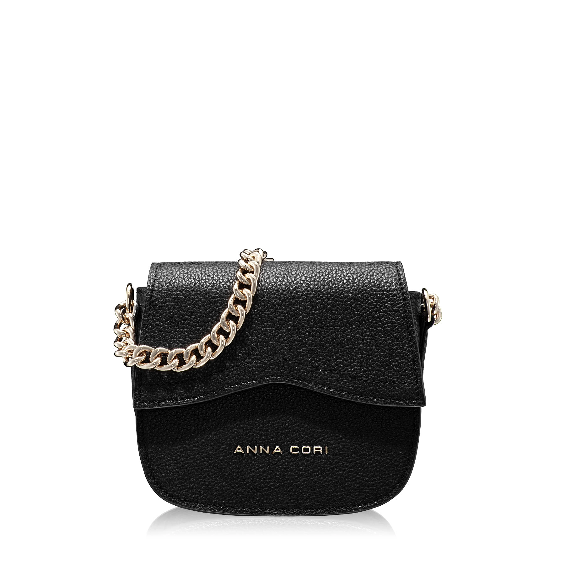 Mini geanta #NEVADA este realizată din piele naturală de vițel, cu o textură fină și accesorizată cu logo-ul Anna Cori. Este prevăzută cu lanț metalic auriu și o curea din piele naturală pentru a fi purtată crossbody.