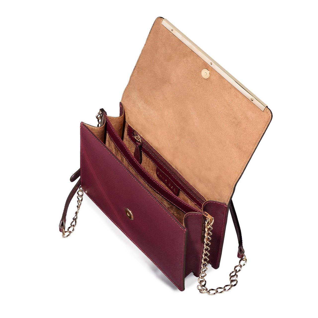 Geanta dama de umar din piele saffiano, cu detaliu metalic pe partea superioara.