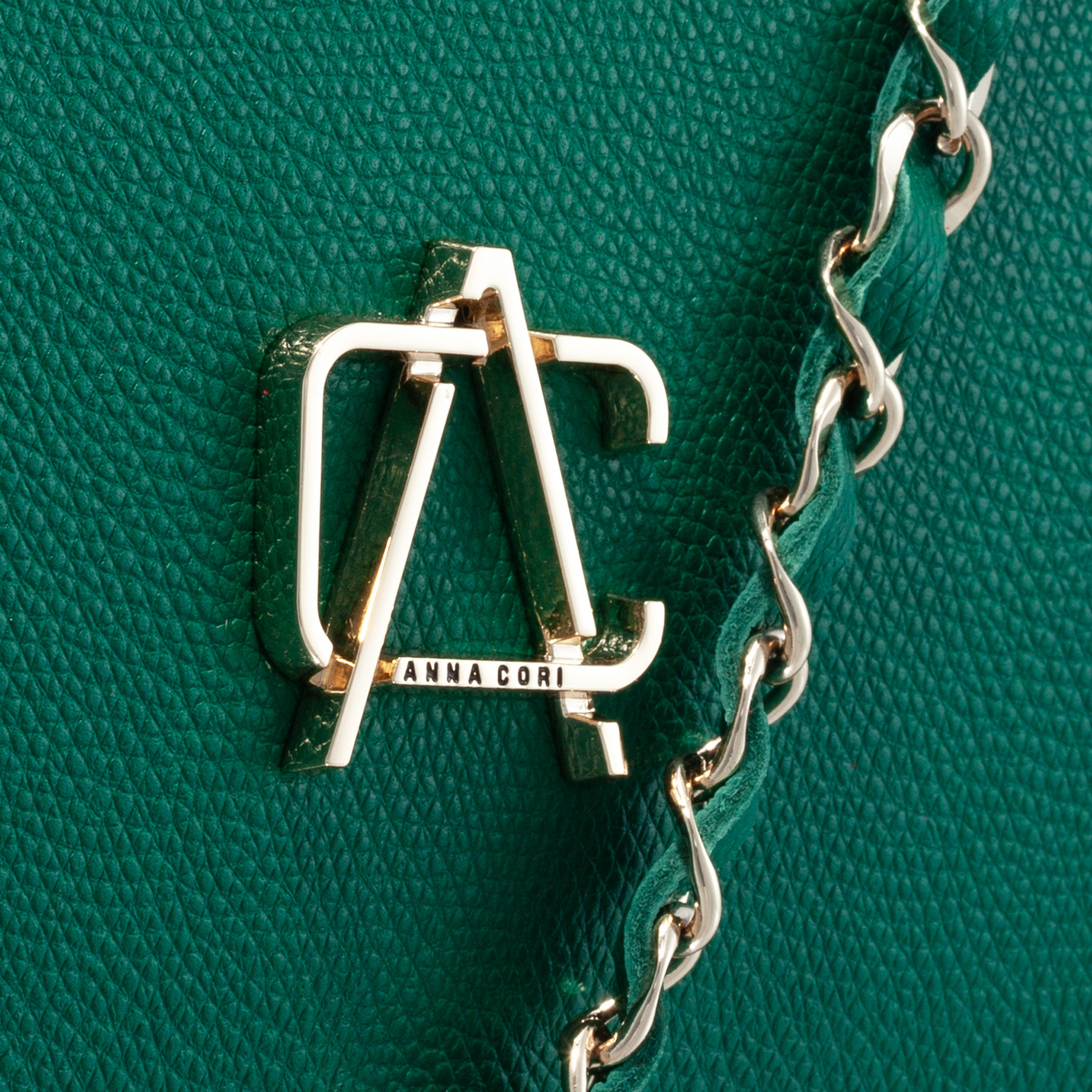 Geanta plic #ARNA este un model Icon Anna Cori datorită eleganței de care dă dovadă și diversității nuanțelor în care se regăsește. Este compartimentată într-un mod complex, având două compartimente, un buzunar central cu fermoar și 6 spații pentru depozitare carduri. Monograma Anna Cori din metal auriu adaugă un plus de eleganță.