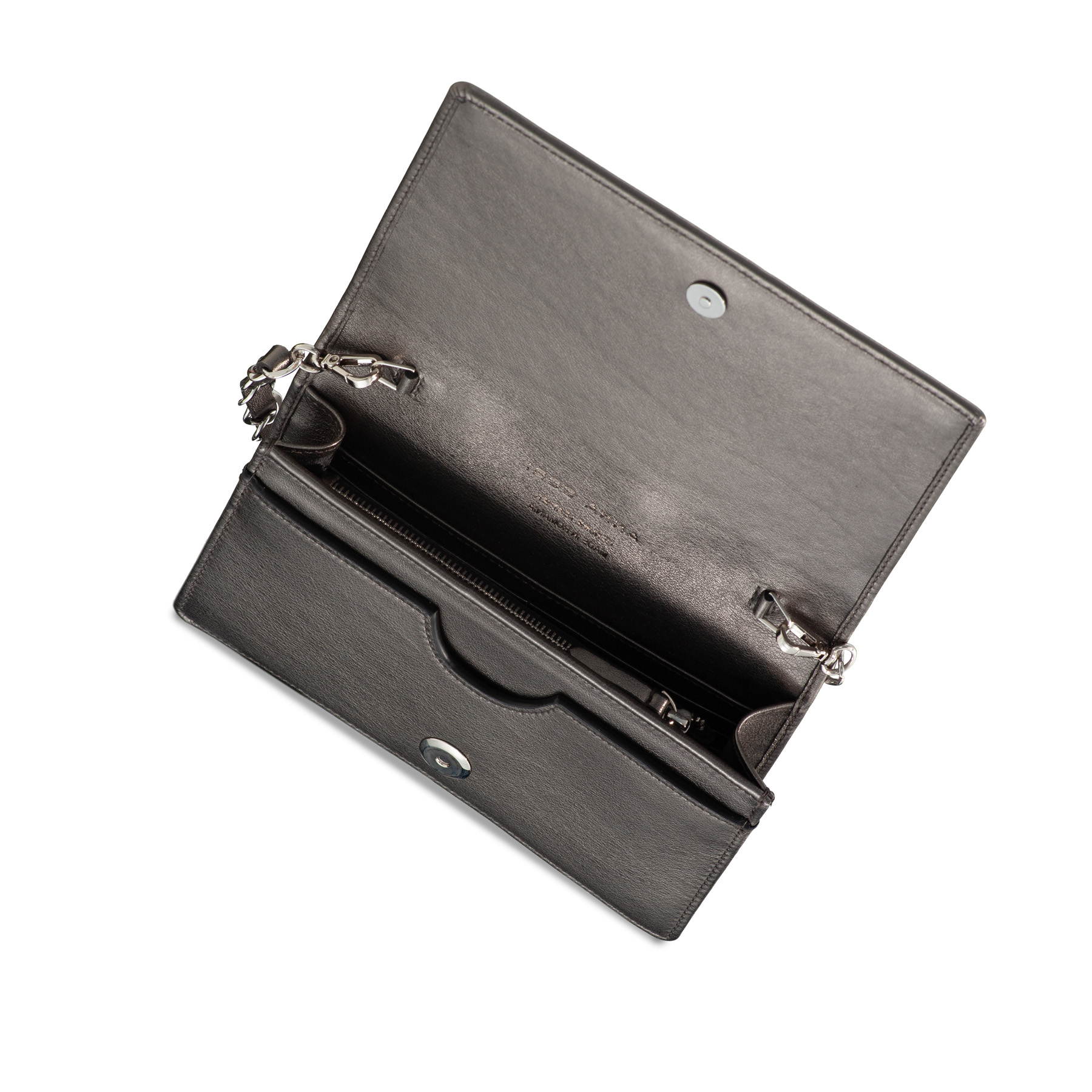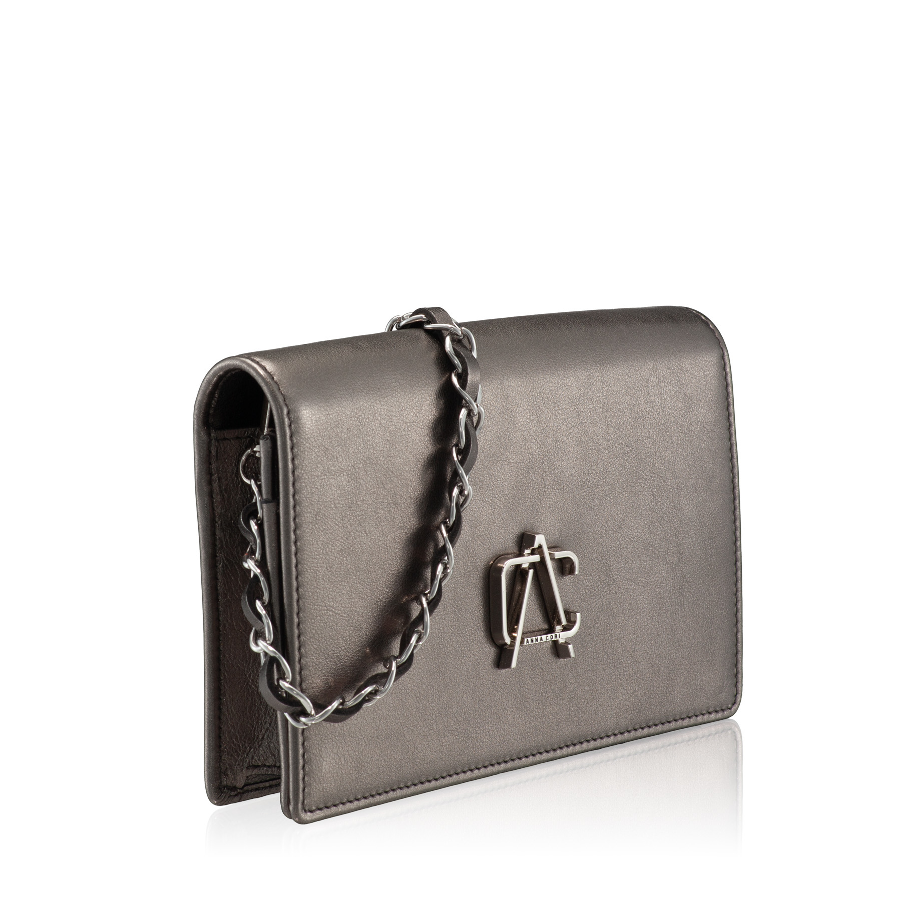Geanta plic #ARNA este un model Icon Anna Cori datorită eleganței de care dă dovadă și diversității nuanțelor în care se regăsește. Este compartimentată într-un mod complex, având două compartimente, un buzunar central cu fermoar și 6 spații pentru depozitare carduri. Monograma Anna Cori din metal auriu adaugă un plus de eleganță.