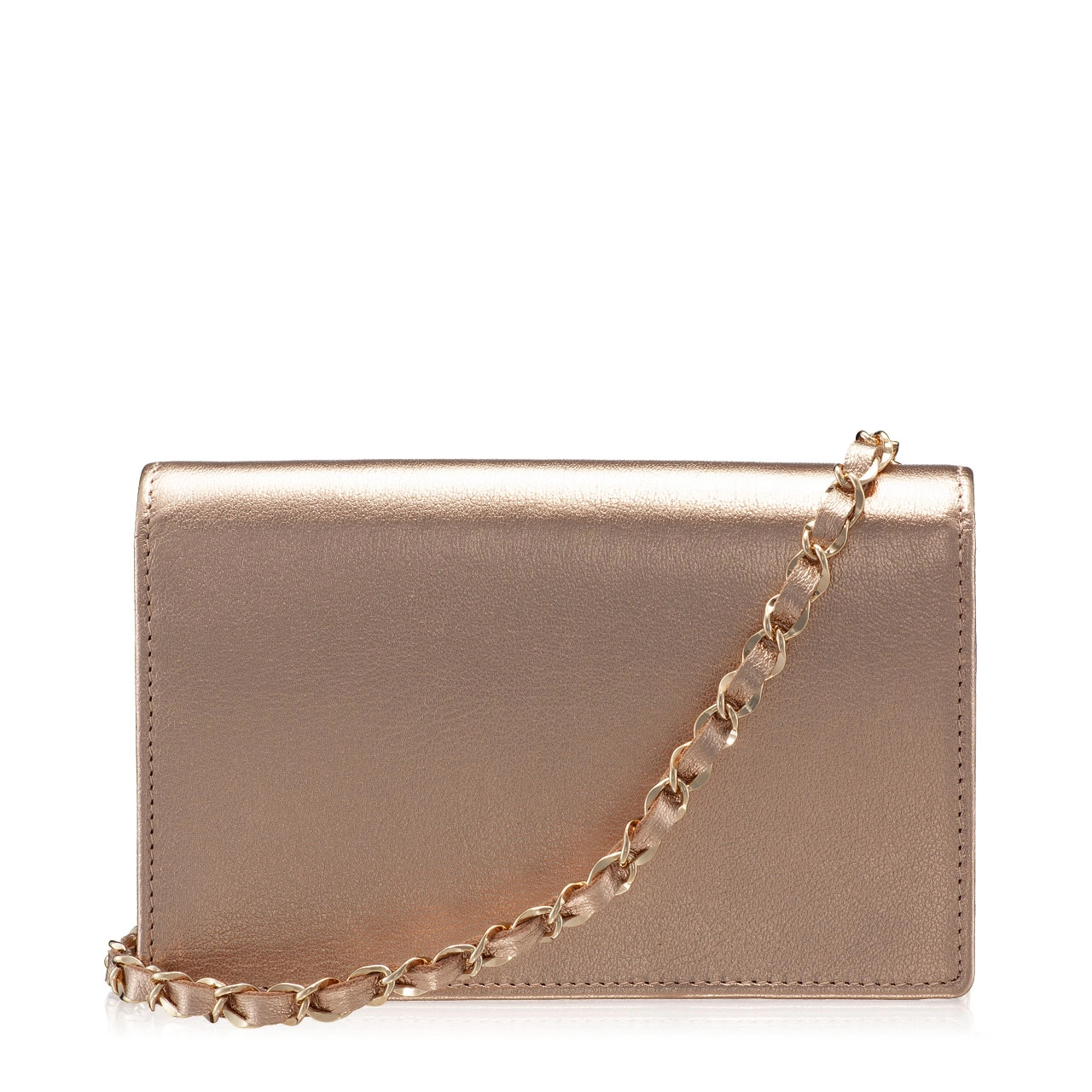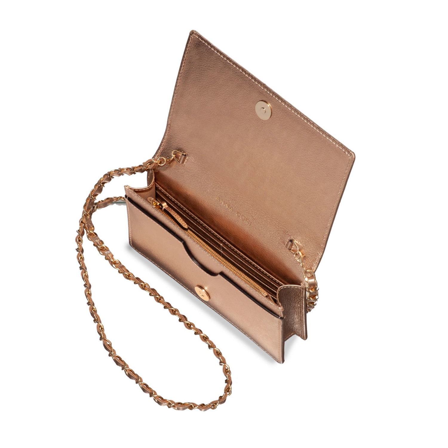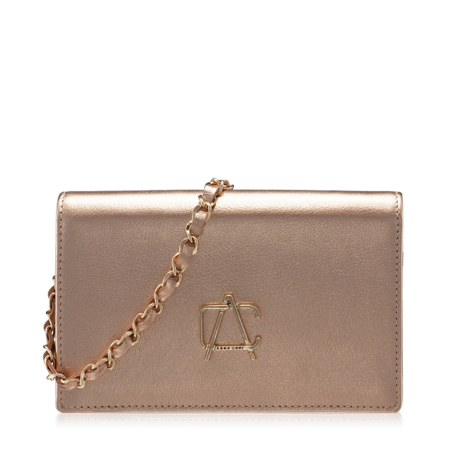 Geanta plic #ARNA este un model Icon Anna Cori datorită eleganței de care dă dovadă și diversității nuanțelor în care se regăsește. Este compartimentată într-un mod complex, având două compartimente, un buzunar central cu fermoar și 6 spații pentru depozitare carduri. Monograma Anna Cori din metal auriu adaugă un plus de eleganță.