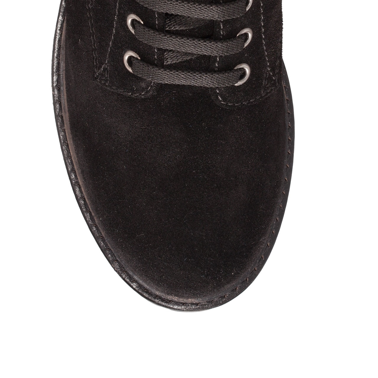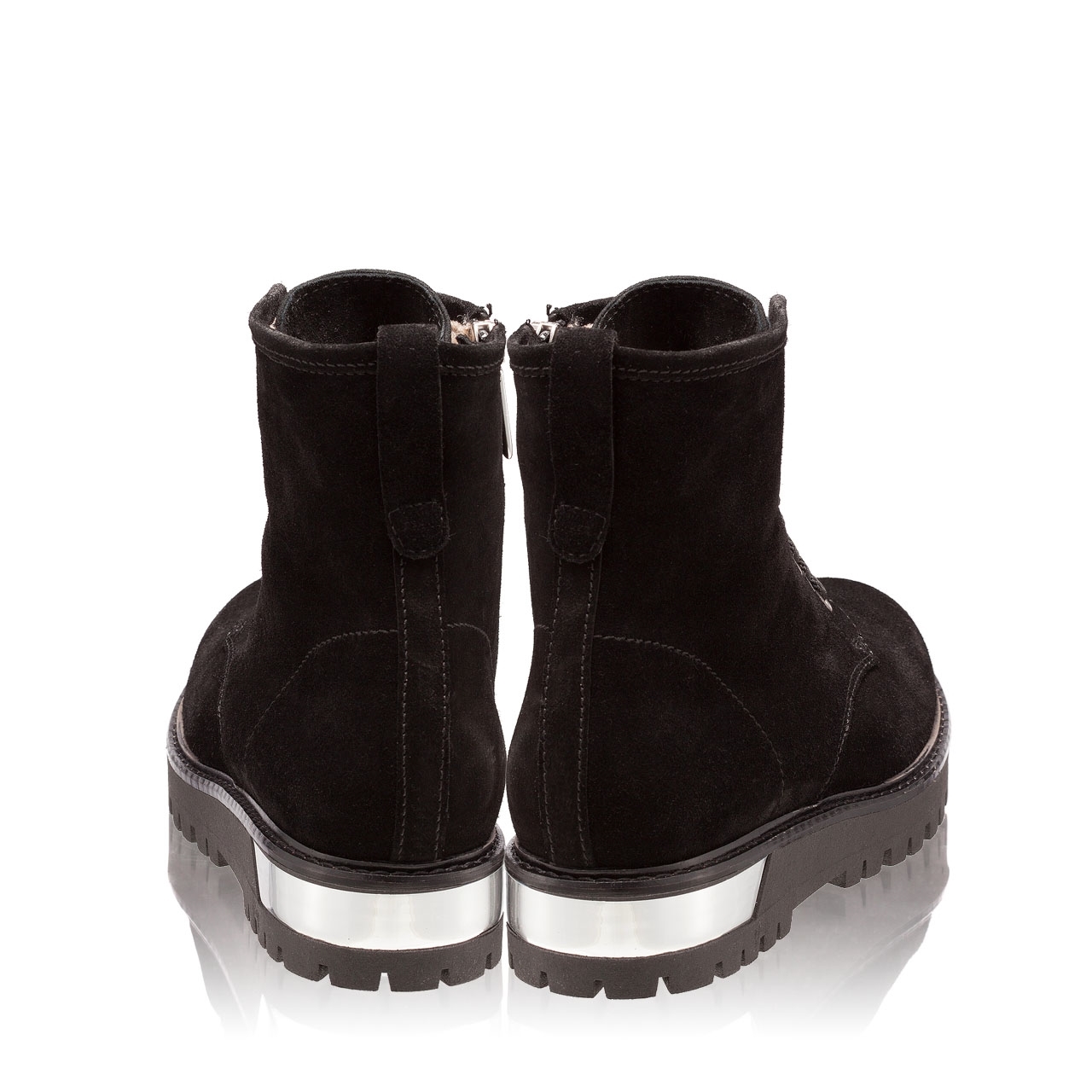 Ghete dama din piele intoarsa, cu detaliu pe talpa.Sunt prevazute cu siret si fermoar lateral.