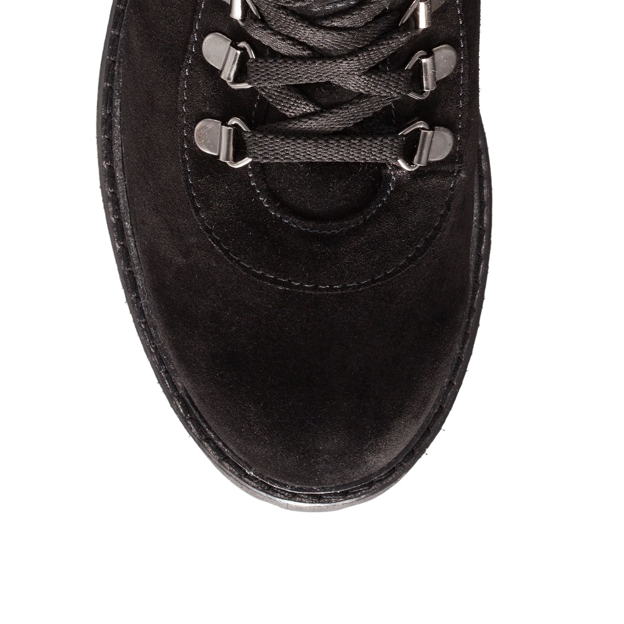 Ghete dama tip bocanc din piele intoarsa, cu detaliu pe talpa.Inchiderea se face cu siret.