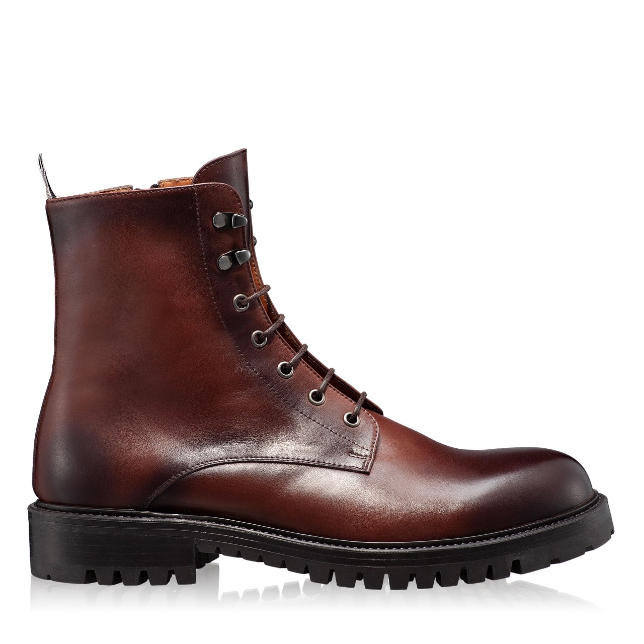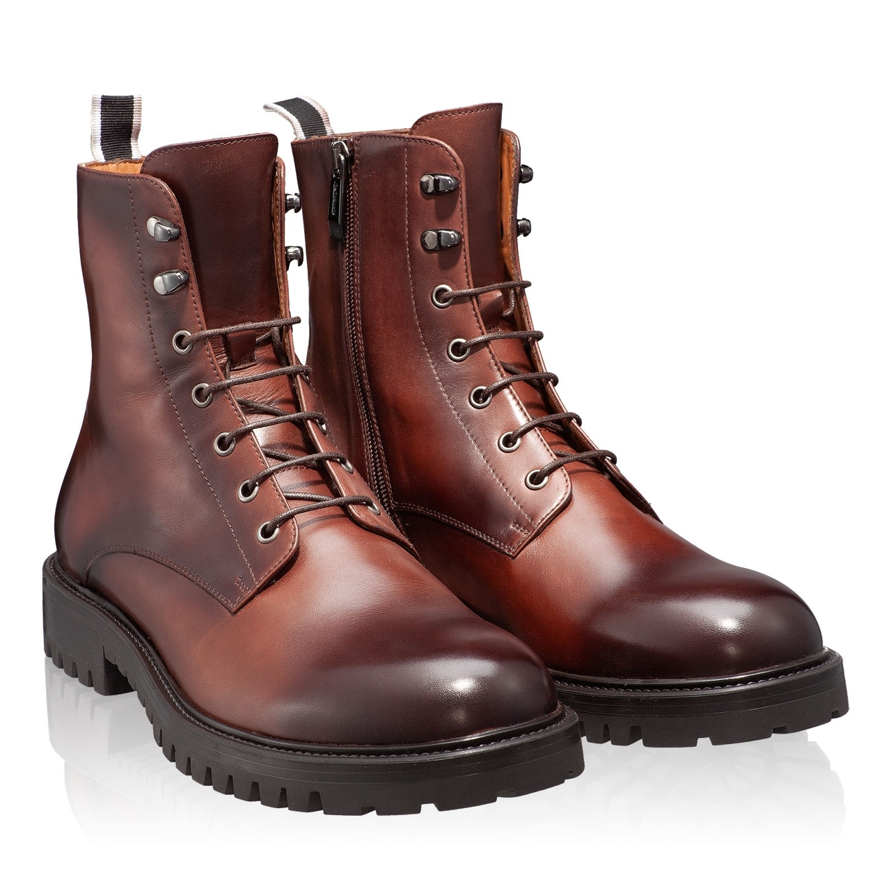 Ghete barbati din piele naturala. Inchiderea se face cu siret si fermoar lateral.