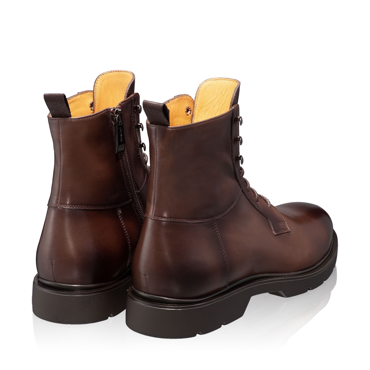 Ghete barbati din piele naturala. Inchiderea se face cu siret si fermoar lateral.