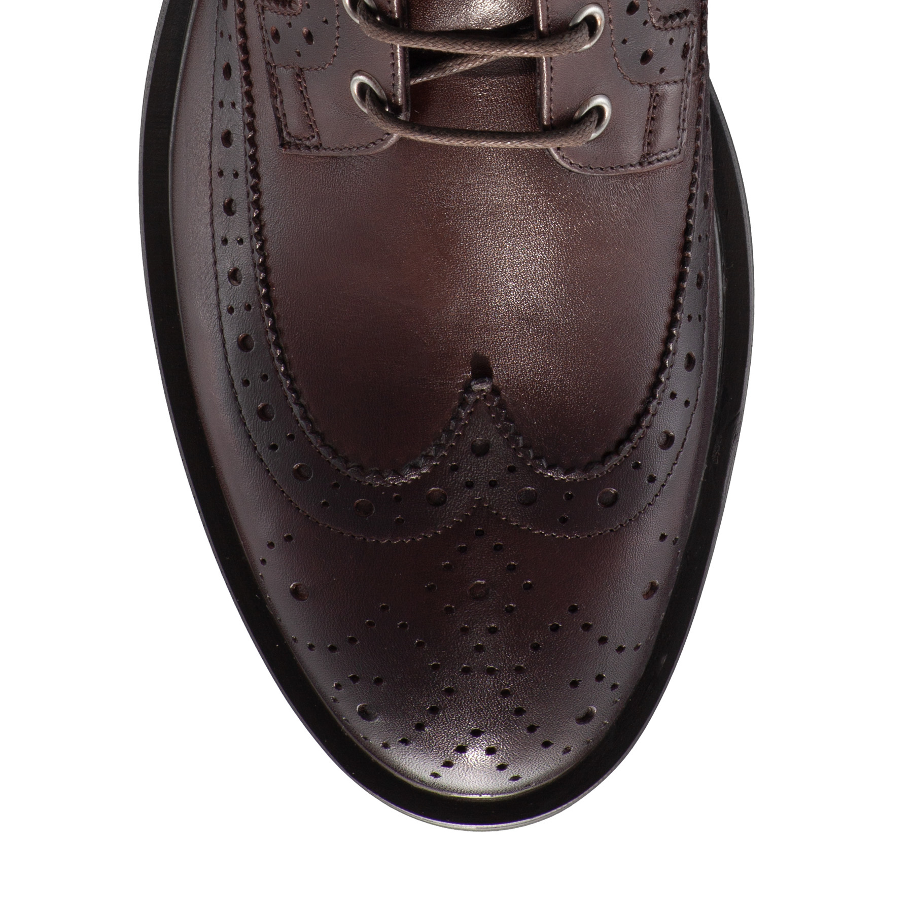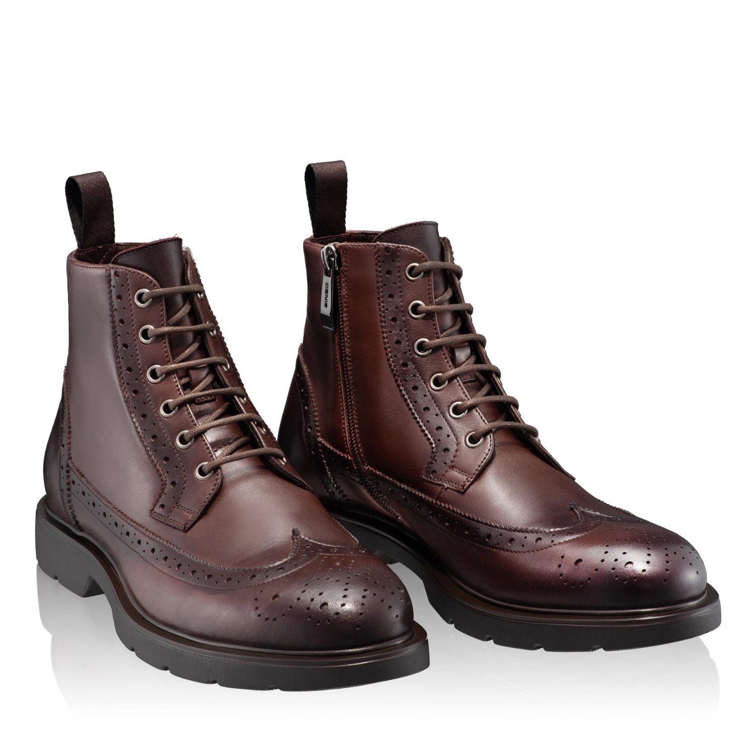 Ghete barbati din piele naturala, captusite cu piele naturala.Sunt prevazute cu siret si perforatii decorative.Inchiderea se face fermoar lateral.