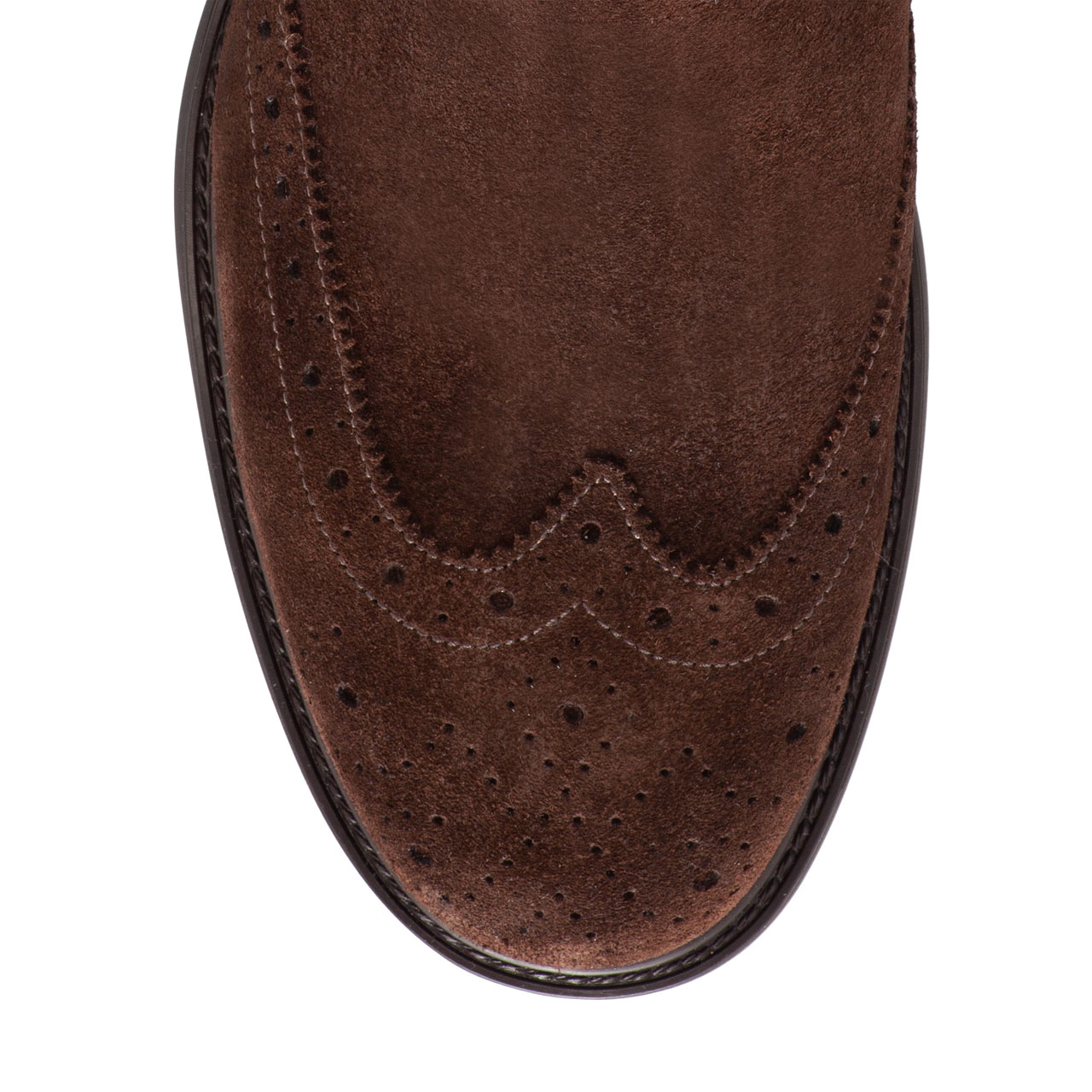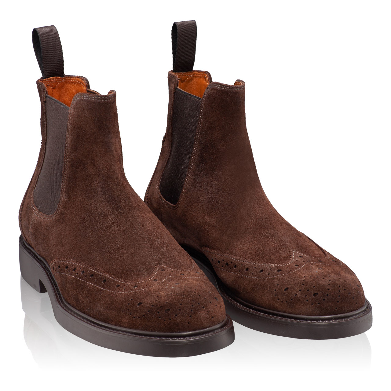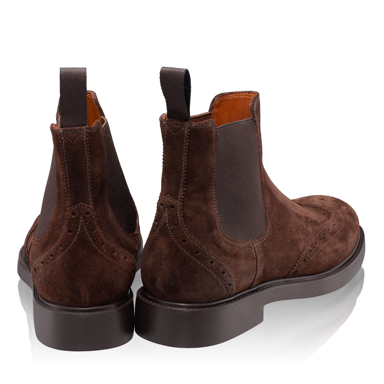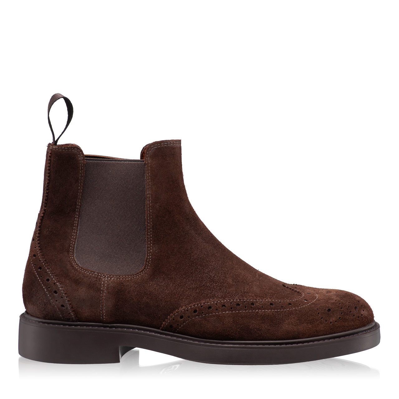 Ghete barbati din piele intoarsa, cu finisaj manual. Prevazute cu perforatii decorative si elastic pe laterale, iar in interior sunt captusite cu piele naturala.
