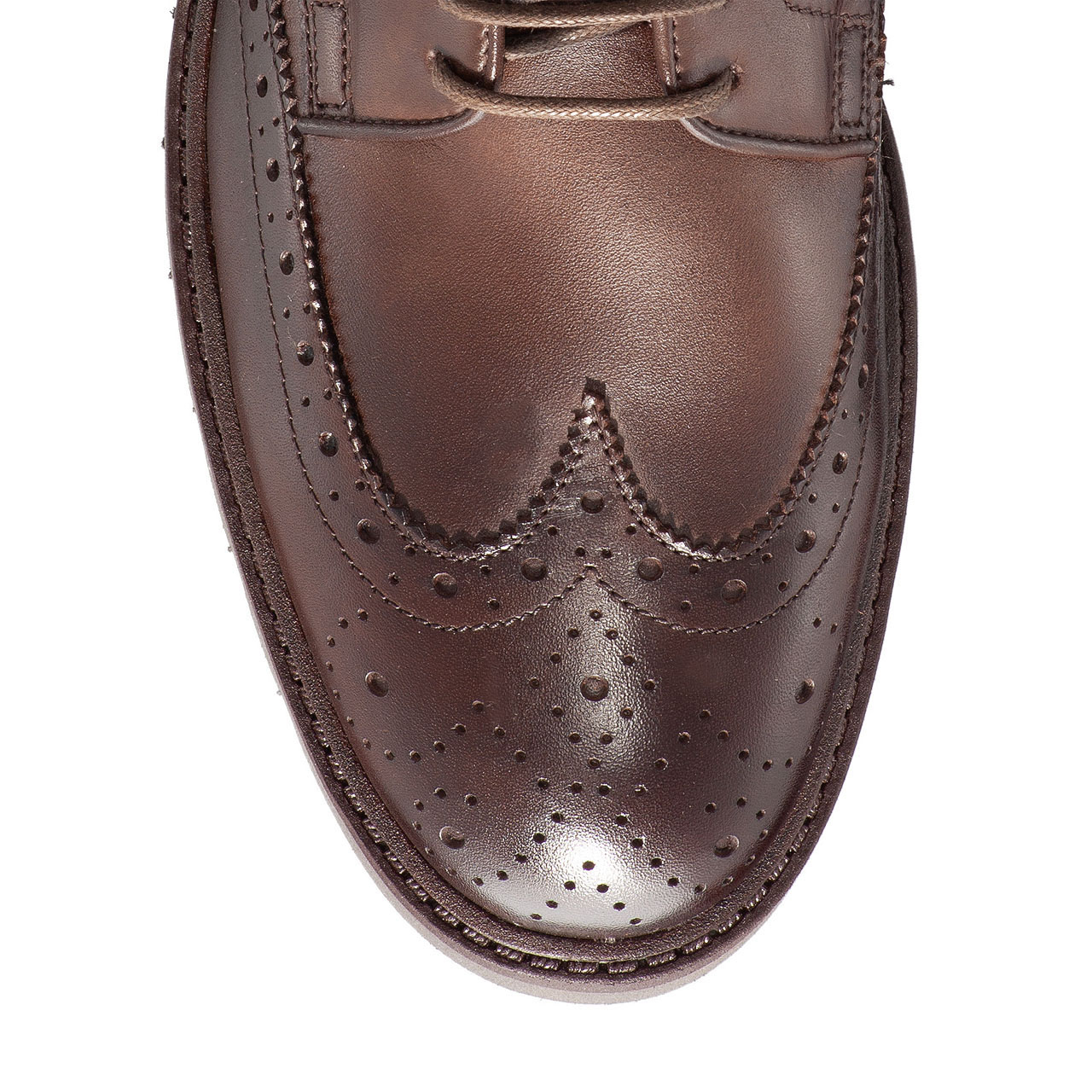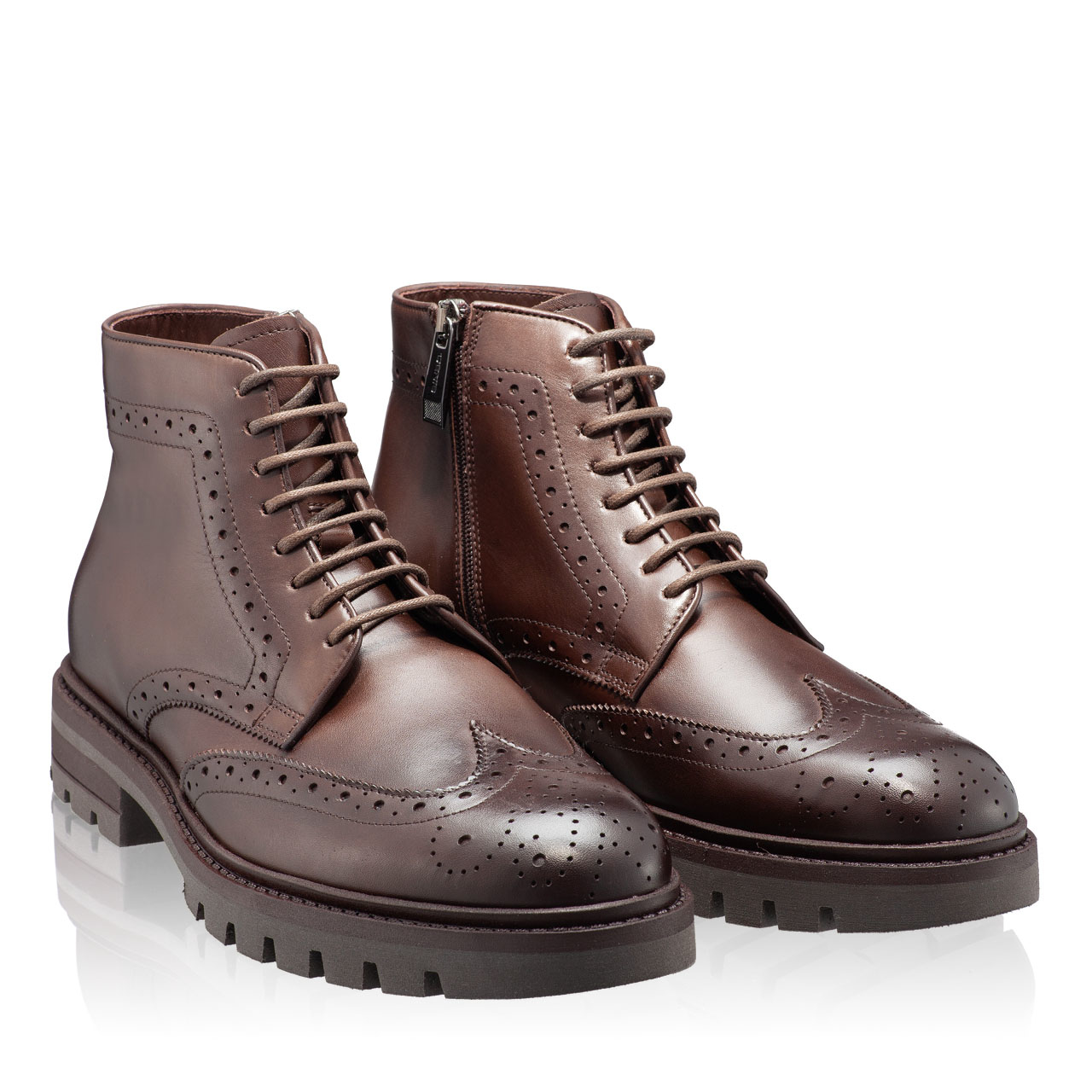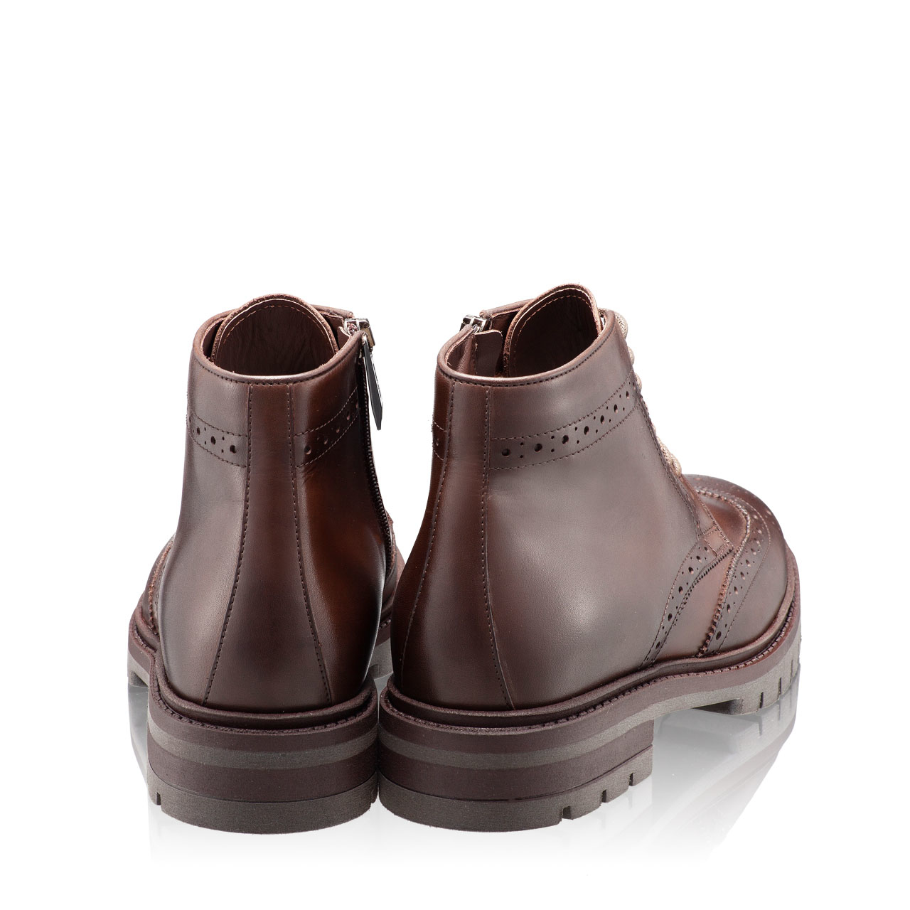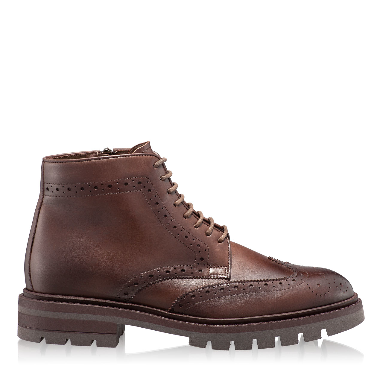 Ghete barbati din piele naturala, cu finisaj manual si perforatii decorative. Inchiderea se face cu fermoar, iar in interior sunt captusite cu blana.