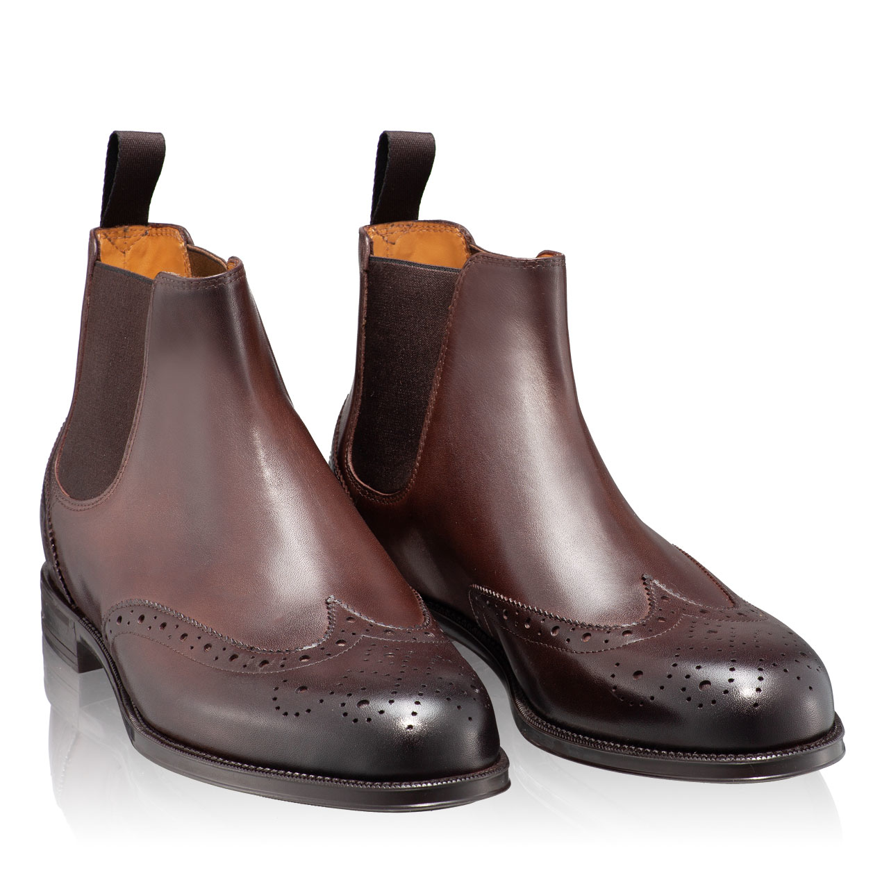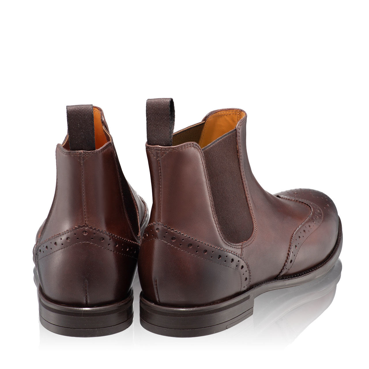 Ghete barbati din piele naturala, cu finisaj manual.Prevazute cu perforatii decorative si cu elastic lateral.In interior sunt captusite cu piele naturala.