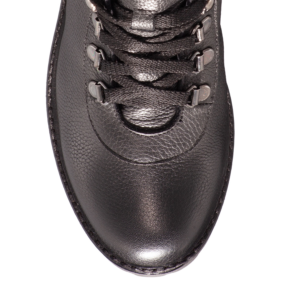 Ghete dama din piele naturala cu detaliu metalic pe talpa. Inchiderea se face cu siret.
