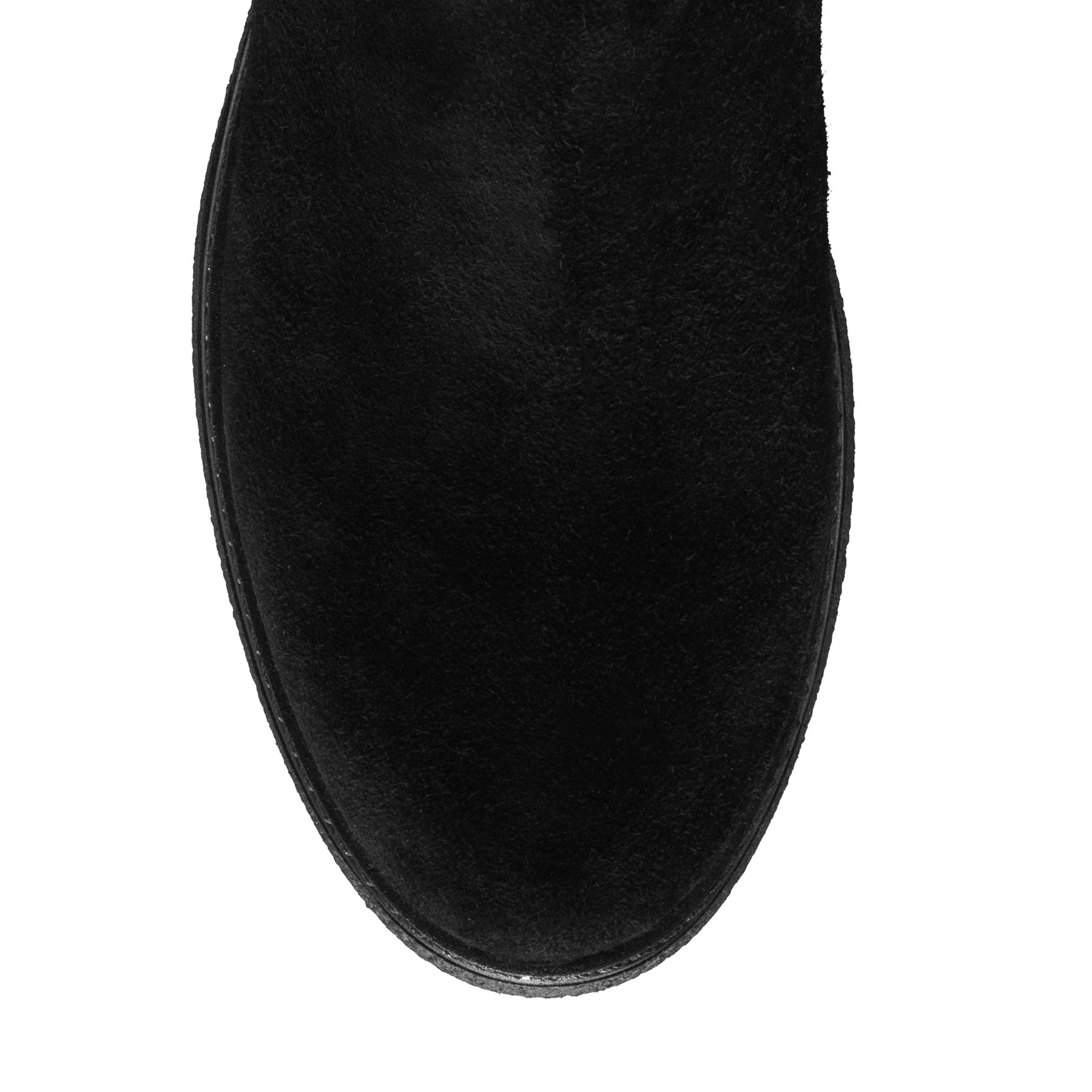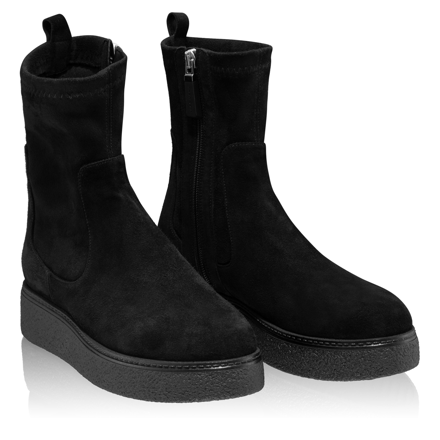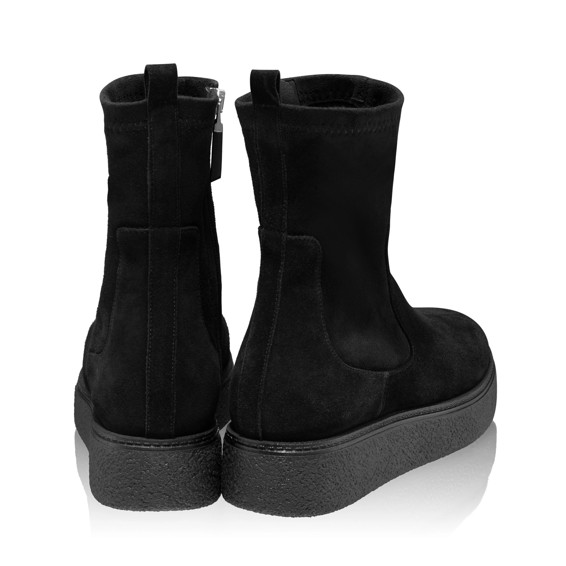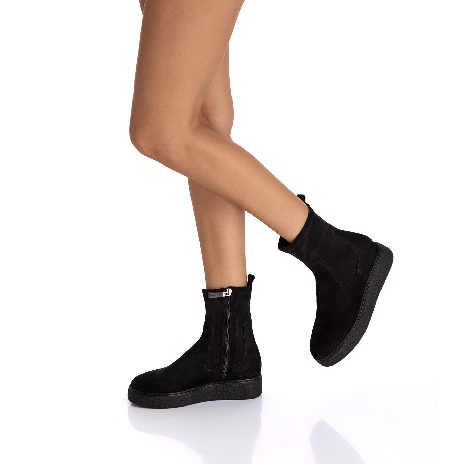 Ghete dama din piele intoarsa si material stretch.Inchiderea se face cu fermoar lateral.