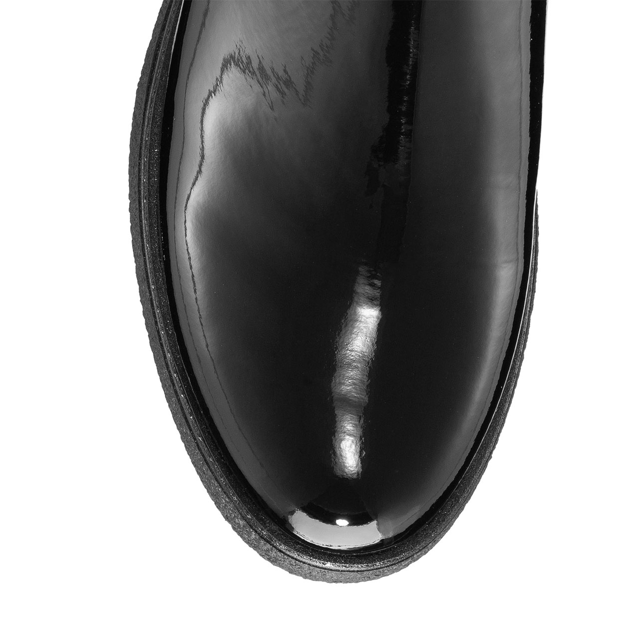 Ghete dama din piele lacuita si material stretch, accesorizate cu catarama laterala.Inchiderea se face cu fermoar lateral.