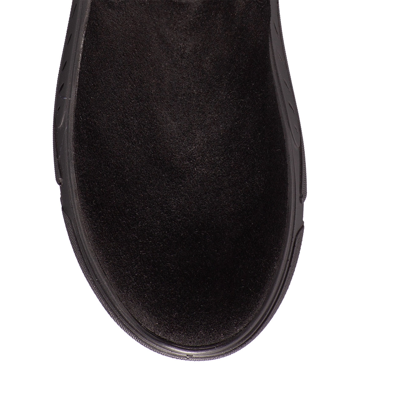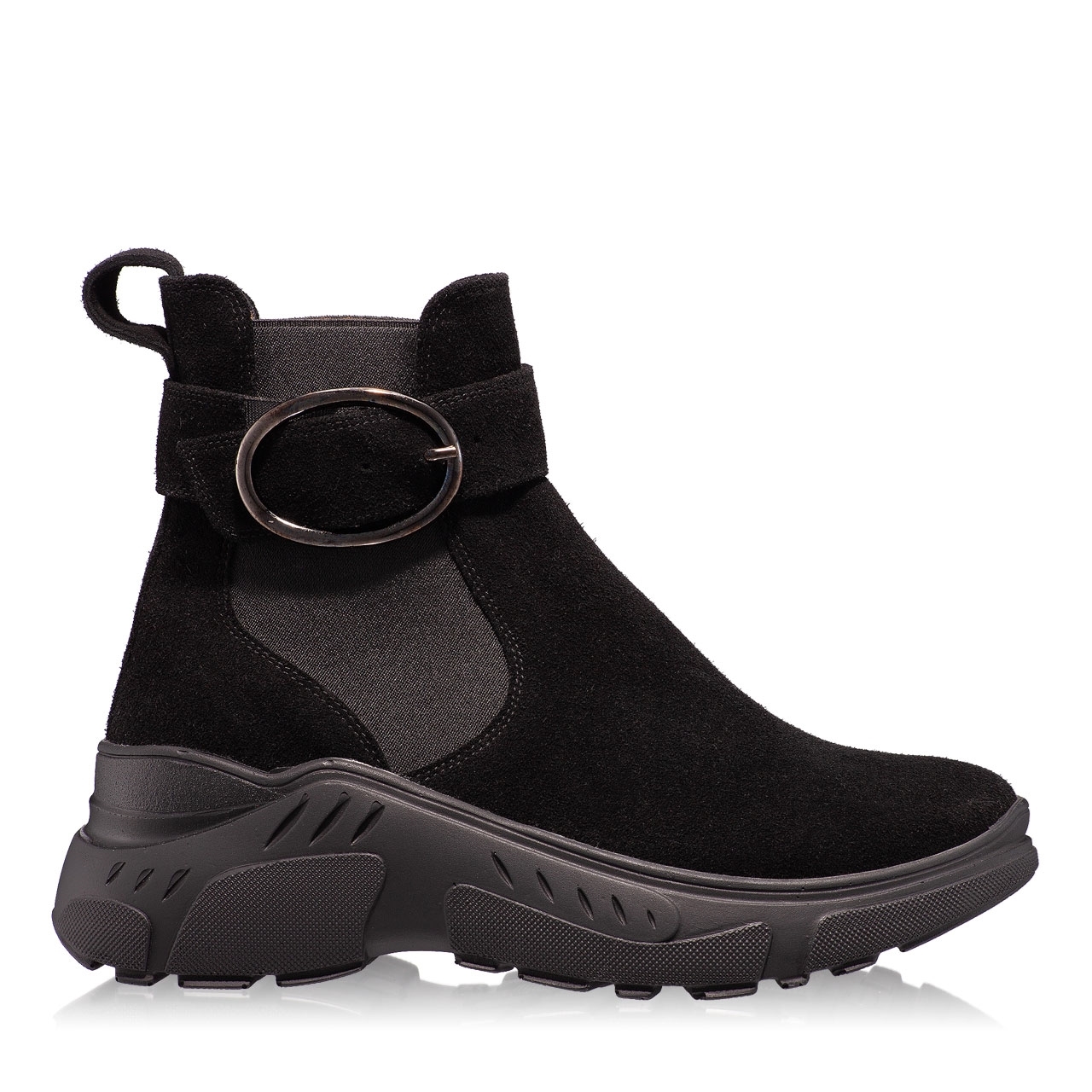 Ghete dama din piele intoarsa, cu elastic lateral. Sunt prevazute cu catarama laterala.