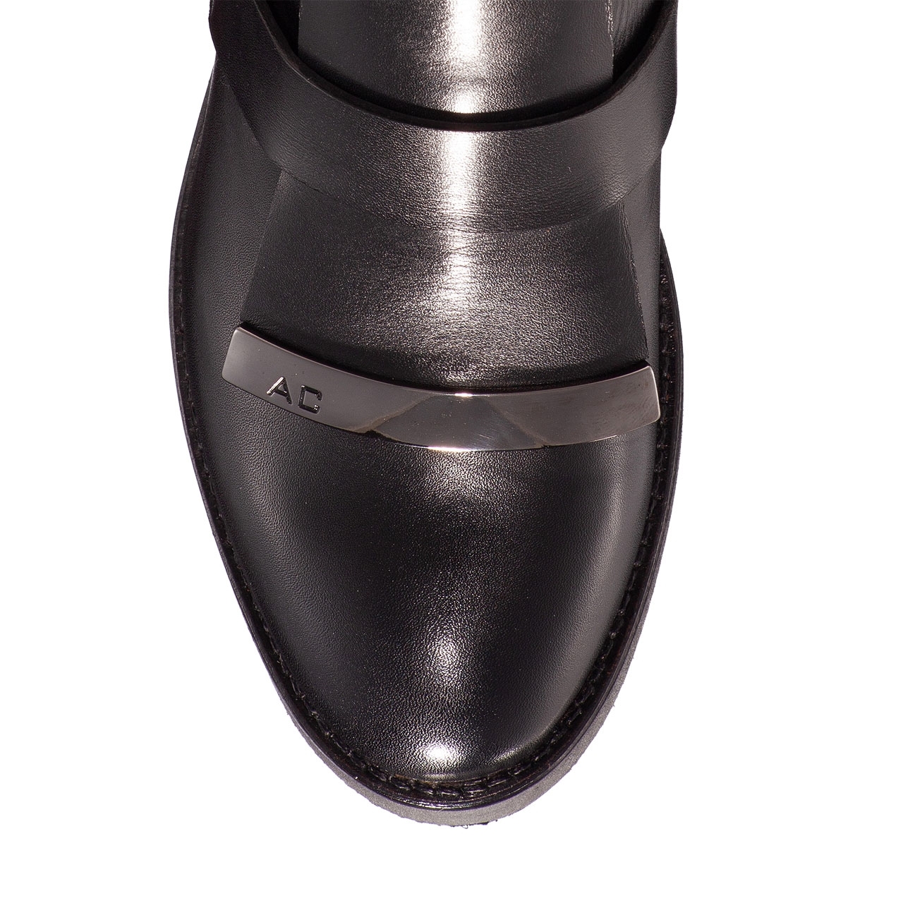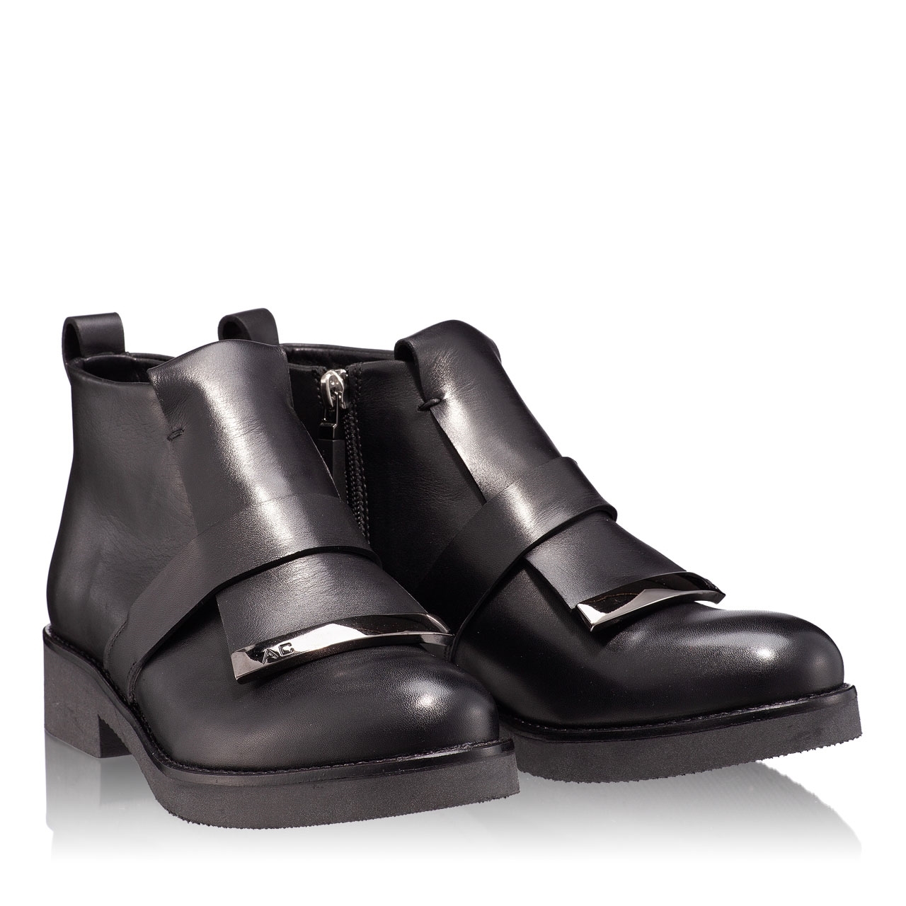 Ghete dama din piele naturala, cu accesoriu personalizat.Inchiderea se face cu fermoar lateral.
