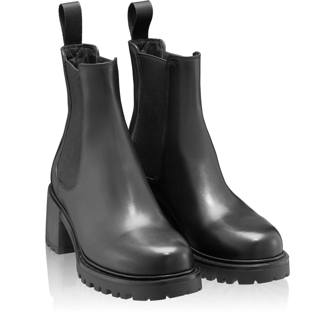 Ghete dama din piele naturala, cu elastic pe laterale. Inaltimea tocului este de 50mm, iar in interior sunt captusite cu piele naturala.