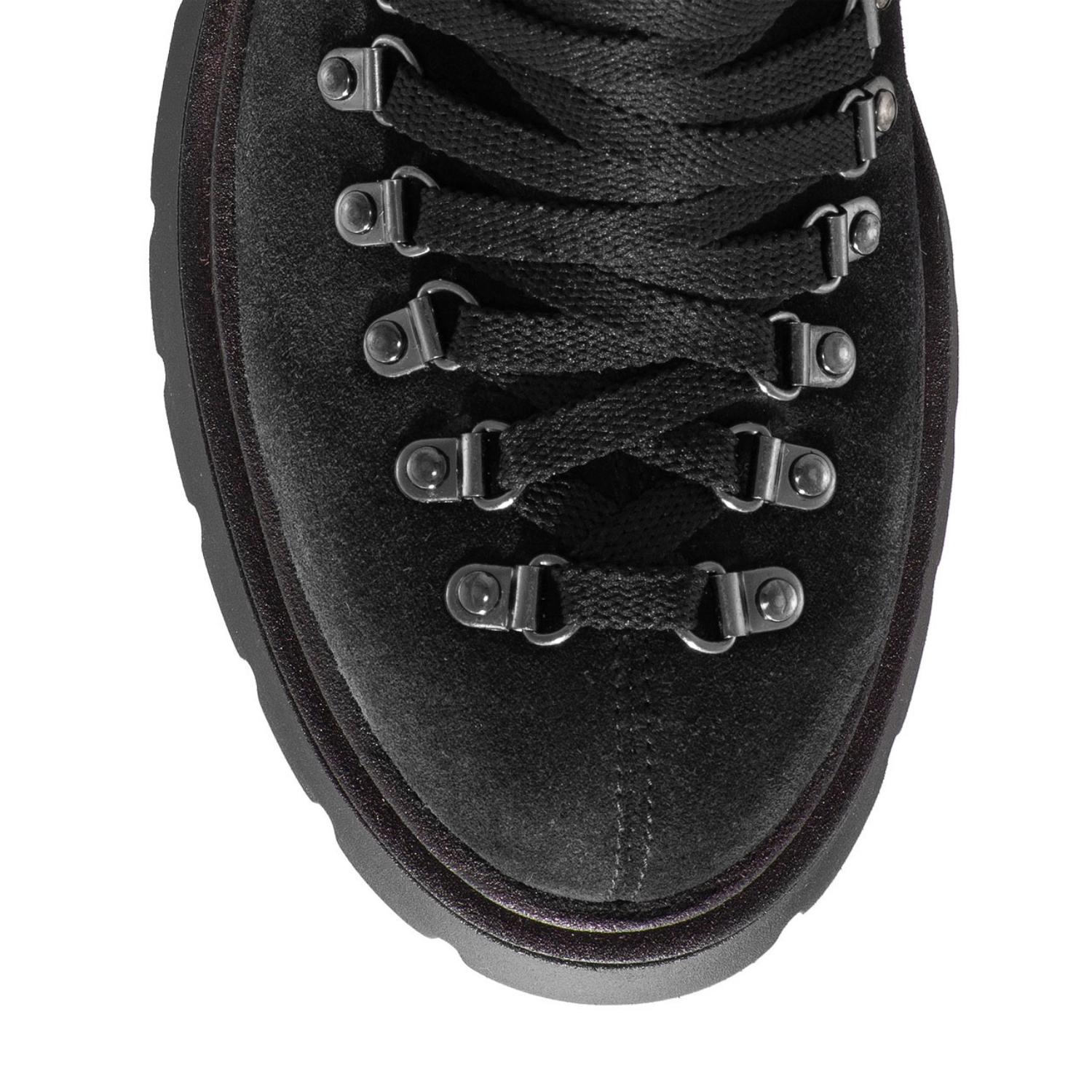 Ghete dama din piele intoarsa, accesorizate cu monograma Anna Cori. Inchiderea se face cu fermoar si siret, iar inaltimea talpii este de 20mm. In interior sunt captusite cu piele naturala.