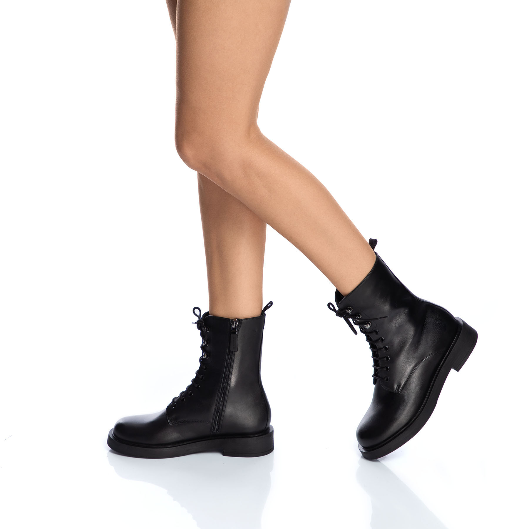 Ghete dama din piele naturală de vițel, căptușite cu blană.Înălțimea tălpii este de 25 mm și sunt prevăzute cu fermoar lateral.