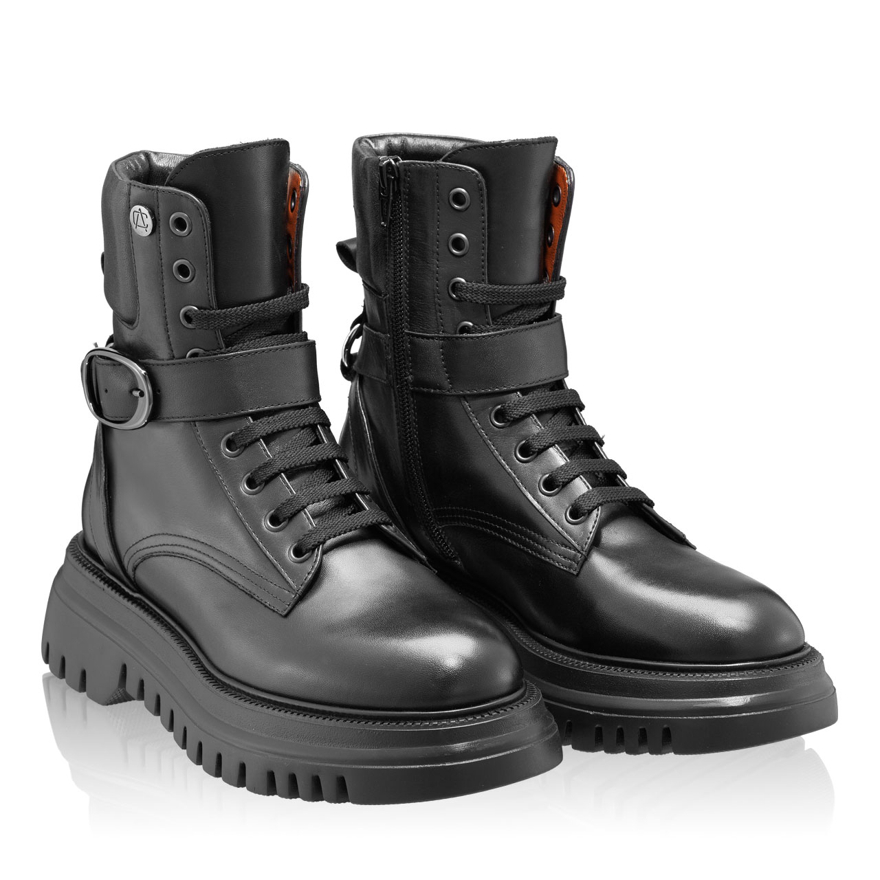 Ghete dama din piele naturala, accesorizate cu monograma Anna Cori si catarama laterala personalizata.In interior sunt captusite cu piele naturala.Inchiderea se face cu fermoar lateral, iar inaltimea talpii este de 15mm.Extrem de confortabile si usoare datorita talpii WearLight.