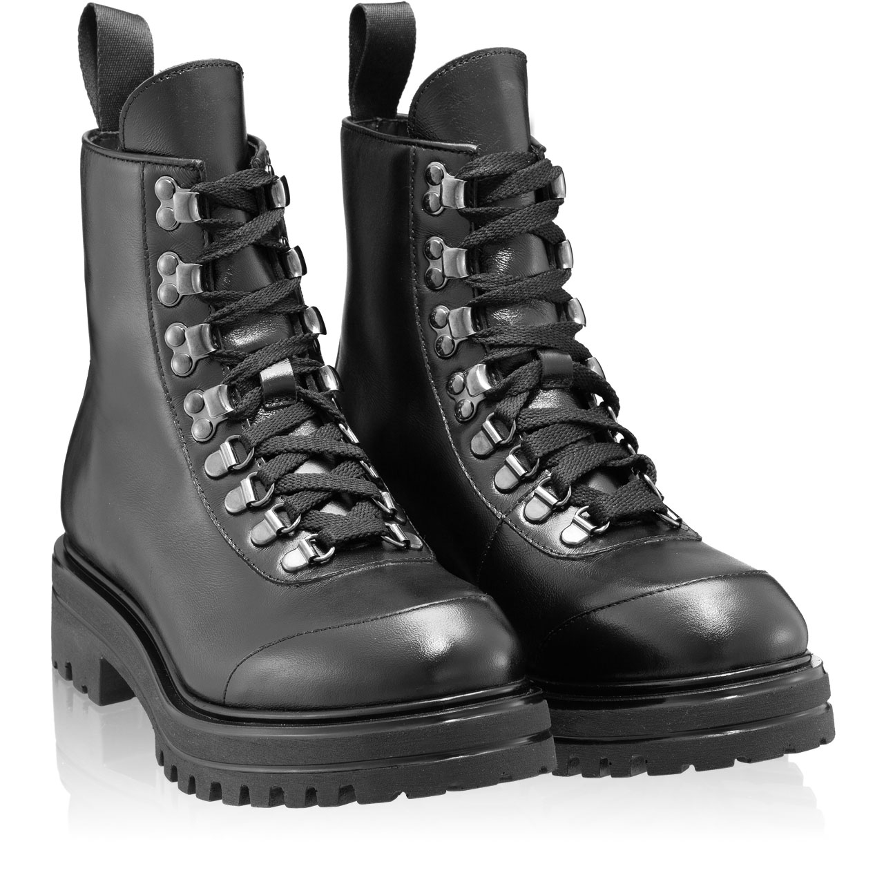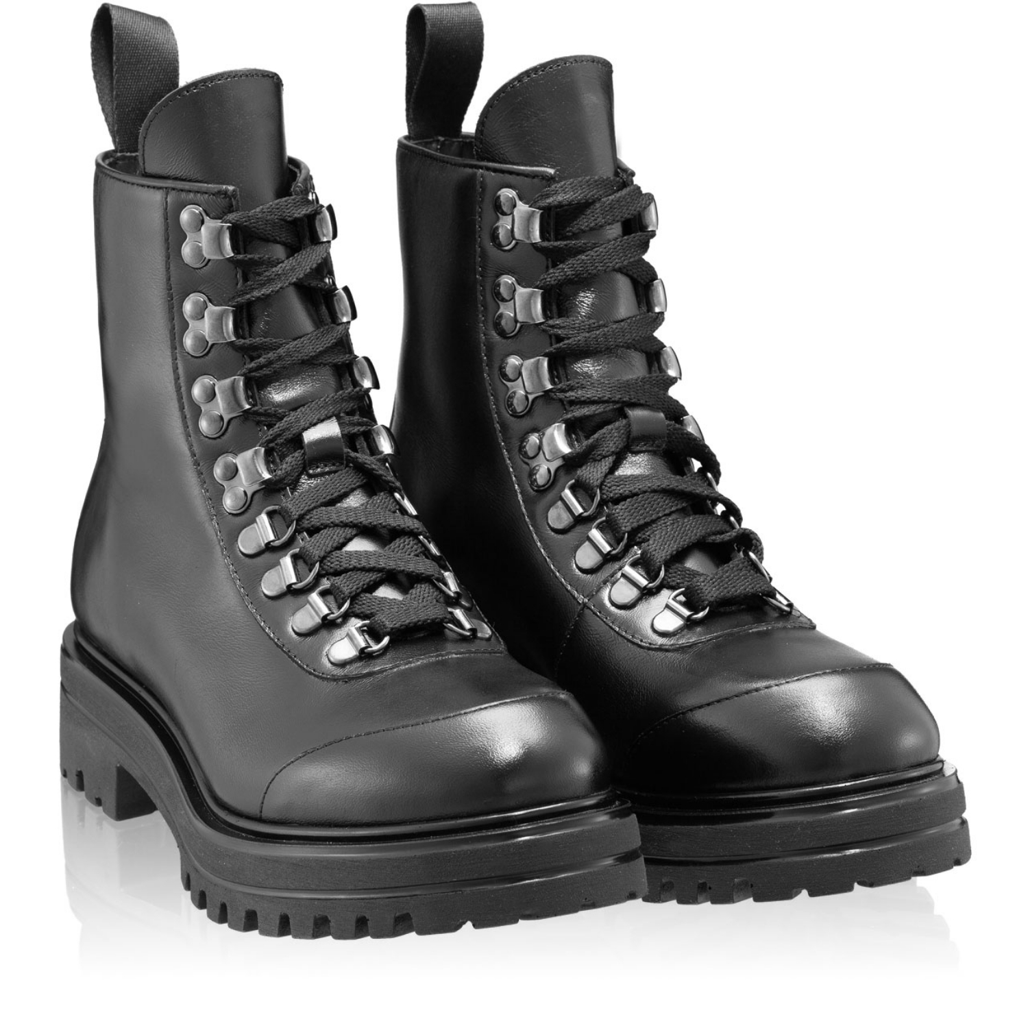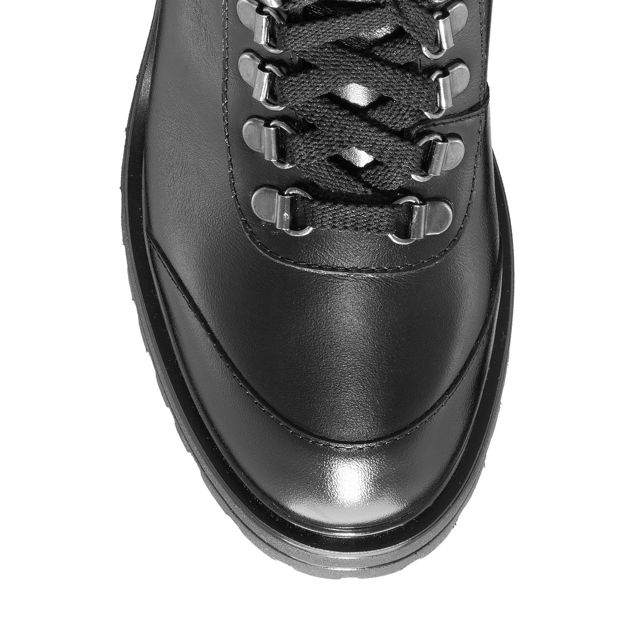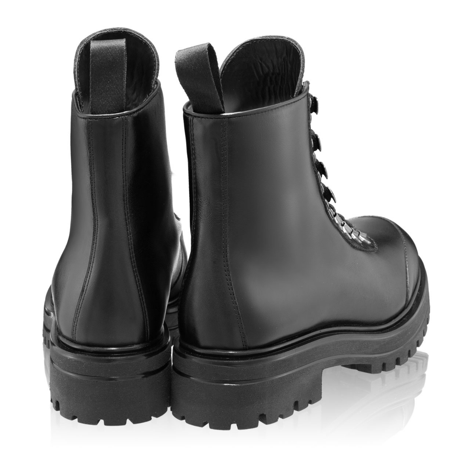 Ghete dama din piele naturala. Inchiderea se face cu siret, iar inaltimea talpii este de 20mm. In interior sunt captusite cu blana.