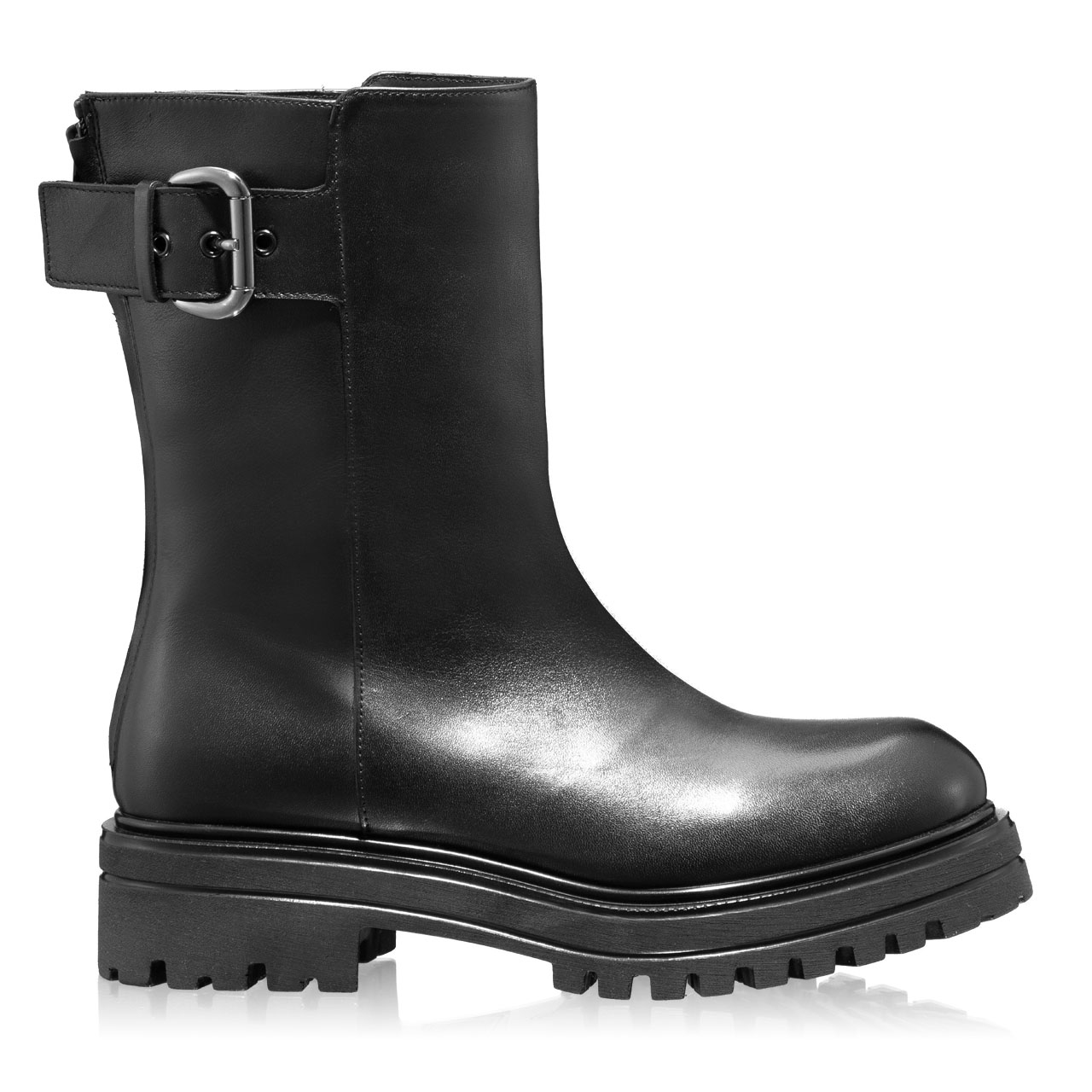 Ghete dama din piele naturala, accesorizate cu catarama laterala. Inchiderea se face cu fermoar, iar inaltimea talpii este de 20mm. In interior sunt captusite cu blana.